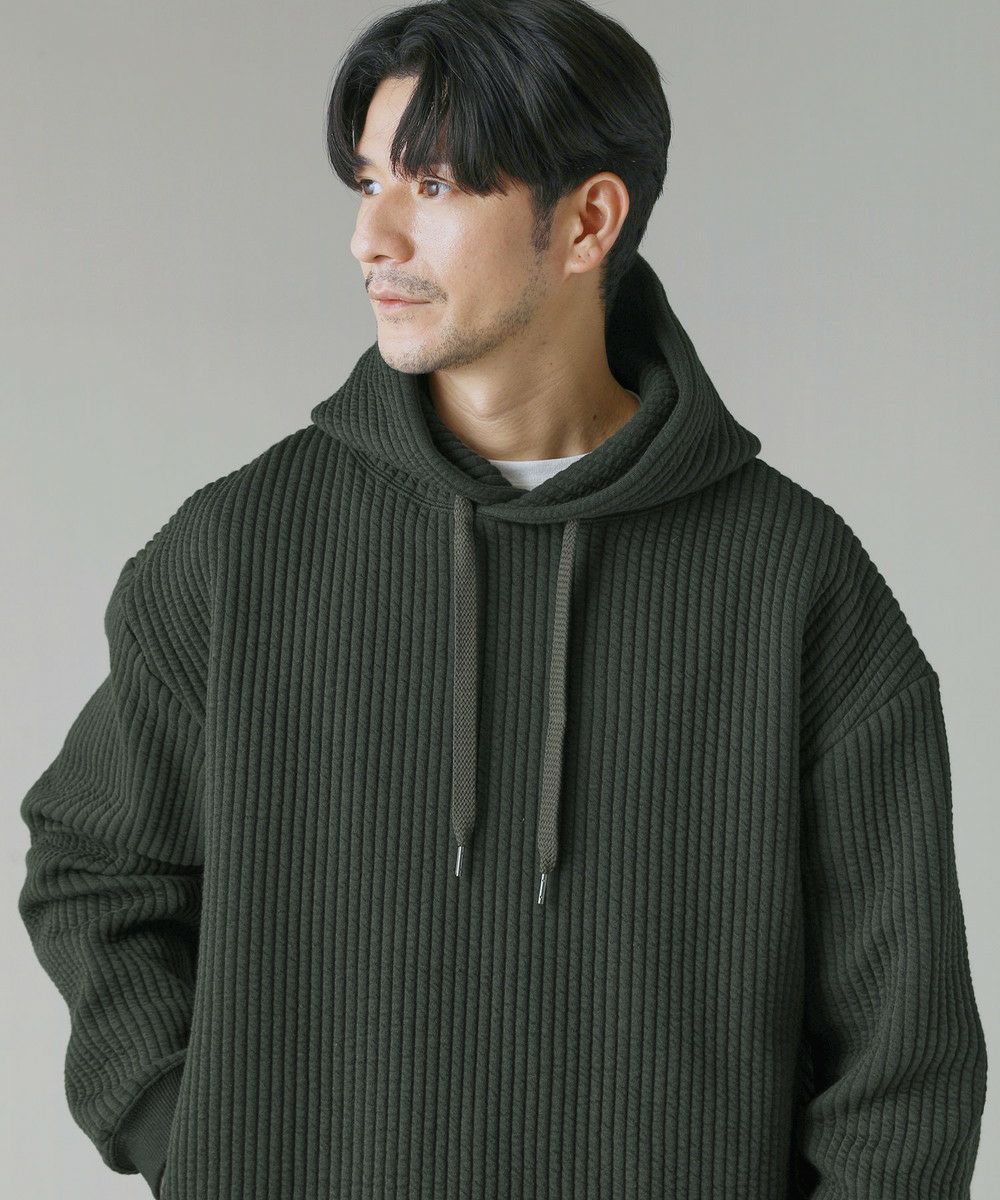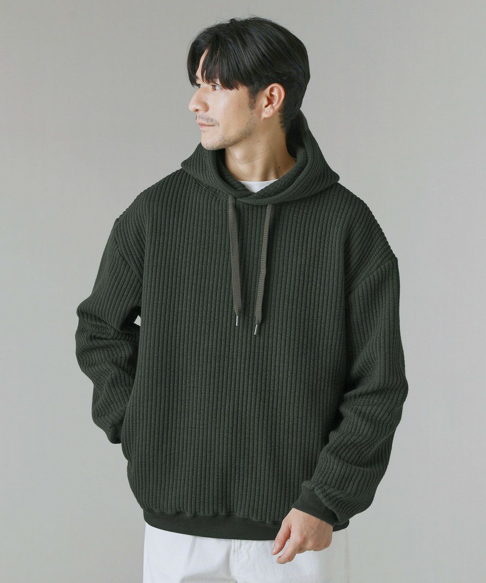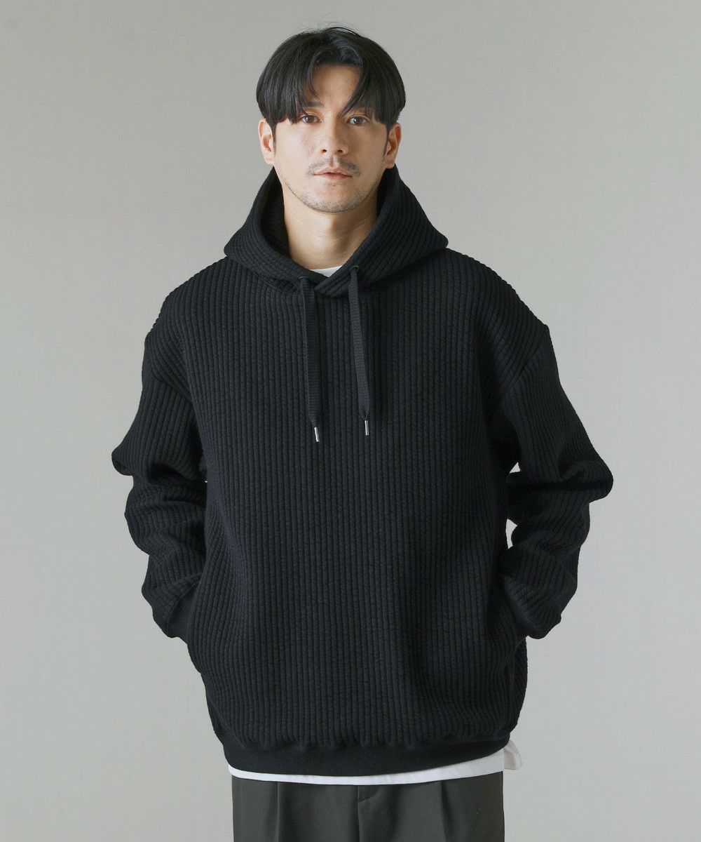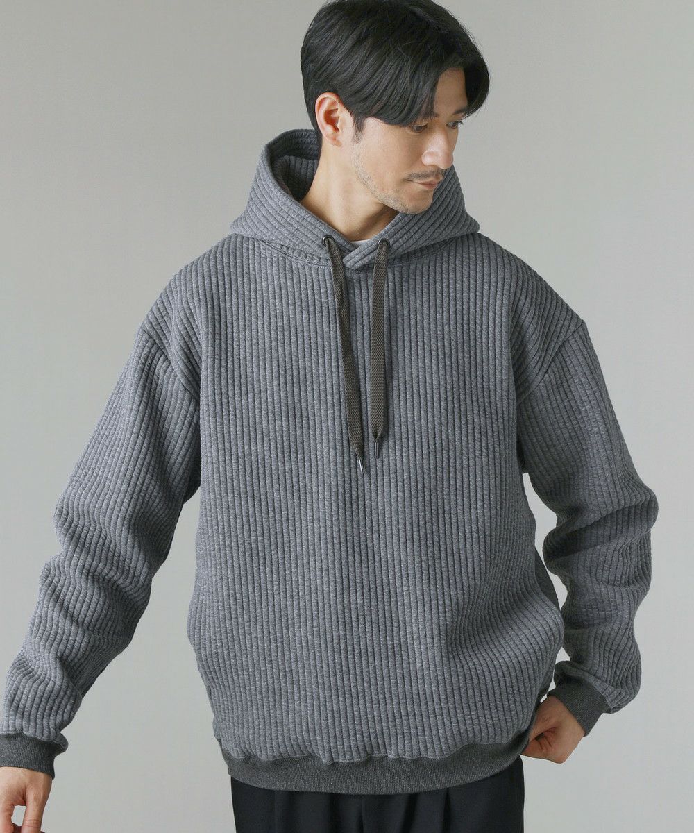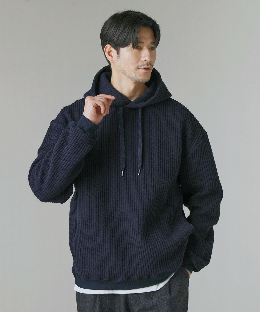 世界的にも有名な生地産地である愛知県、「尾州産」のキルト生地を使用したプルオーバーパーカー。