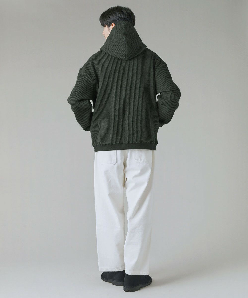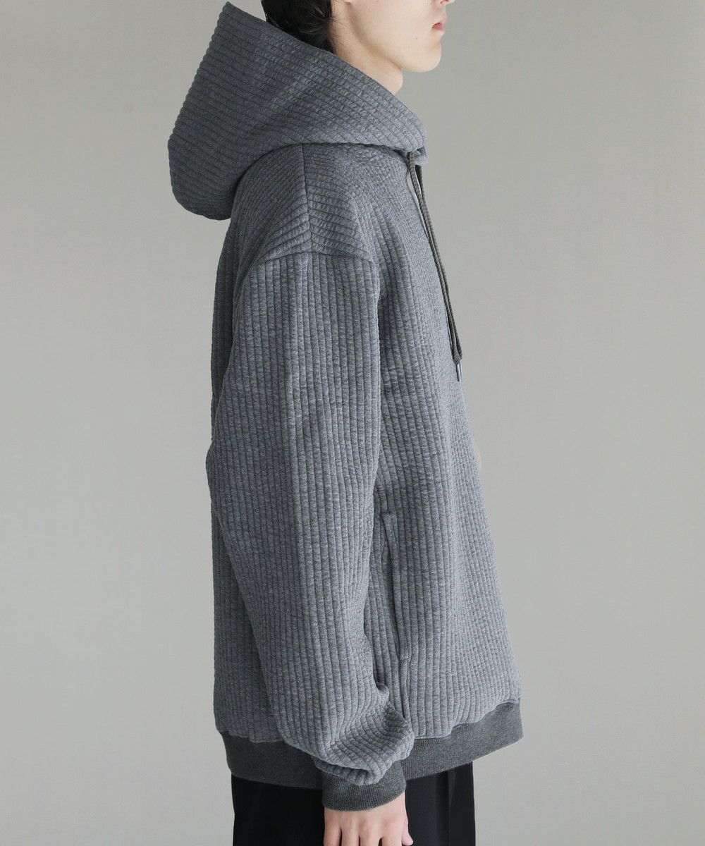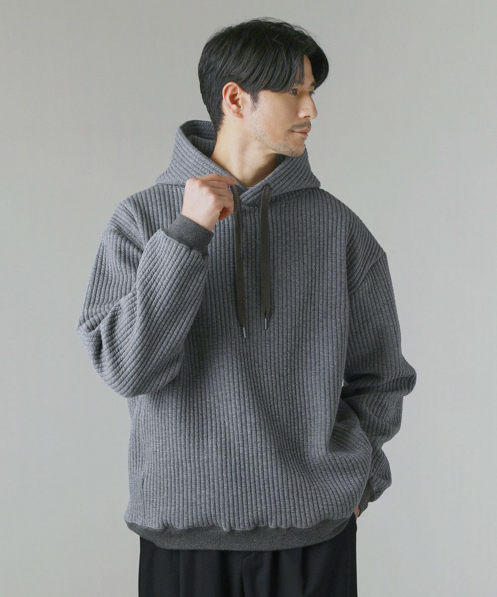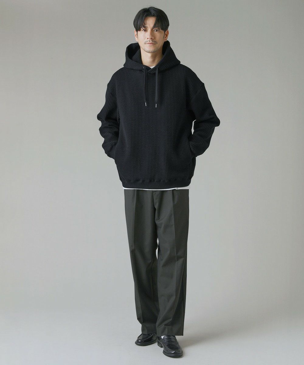ボックスシルエットとドロップショルダーがリラックス感とこなれた雰囲気を生み出しつつ、程よい着丈なのでだらしなく見えないデザインとなっております。カジュアルなデイリーアイテムとしてはもちろん、キレイめなロングコートやスラックスを合わせた都会的なシーンでも馴染む、スタイリッシュなアイテムです。裾と袖口にはリブを配しており、フィット感と切り替えデザインがさりげないポイントに。 フード部分は生地を二重にして厚みを出すことで、立ち上がりをキープしてくれます。