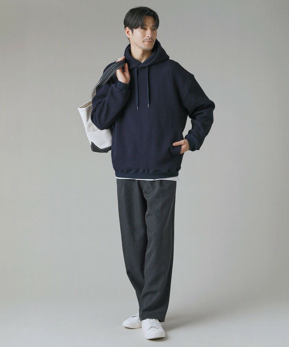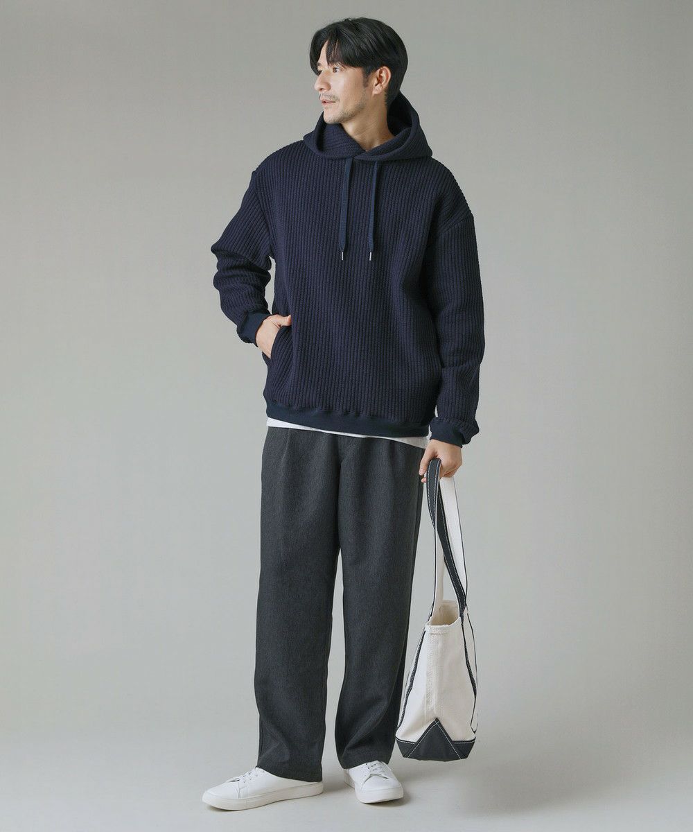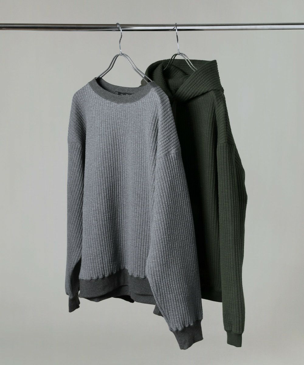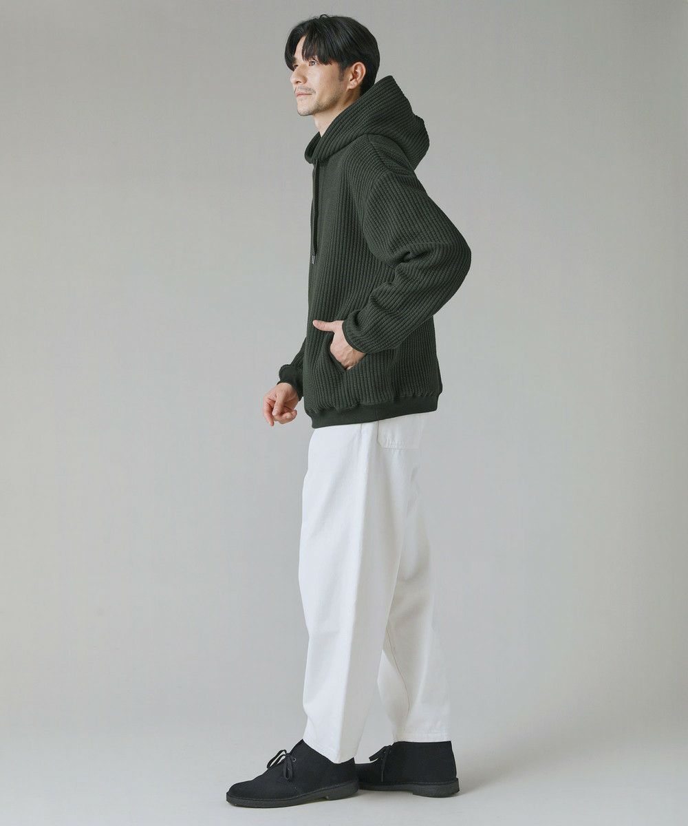 ボックスシルエットとドロップショルダーがリラックス感とこなれた雰囲気を生み出しつつ、程よい着丈なのでだらしなく見えないデザインとなっております。カジュアルなデイリーアイテムとしてはもちろん、キレイめなロングコートやスラックスを合わせた都会的なシーンでも馴染む、スタイリッシュなアイテムです。裾と袖口にはリブを配しており、フィット感と切り替えデザインがさりげないポイントに。 フード部分は生地を二重にして厚みを出すことで、立ち上がりをキープしてくれます。
