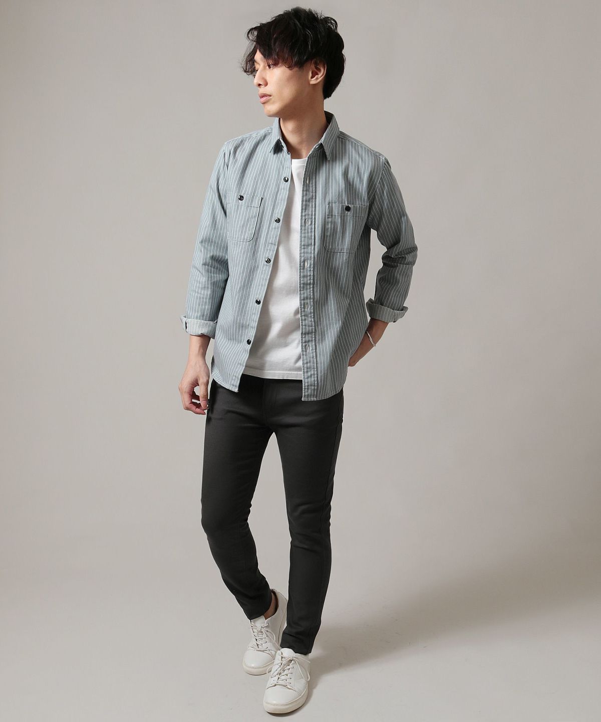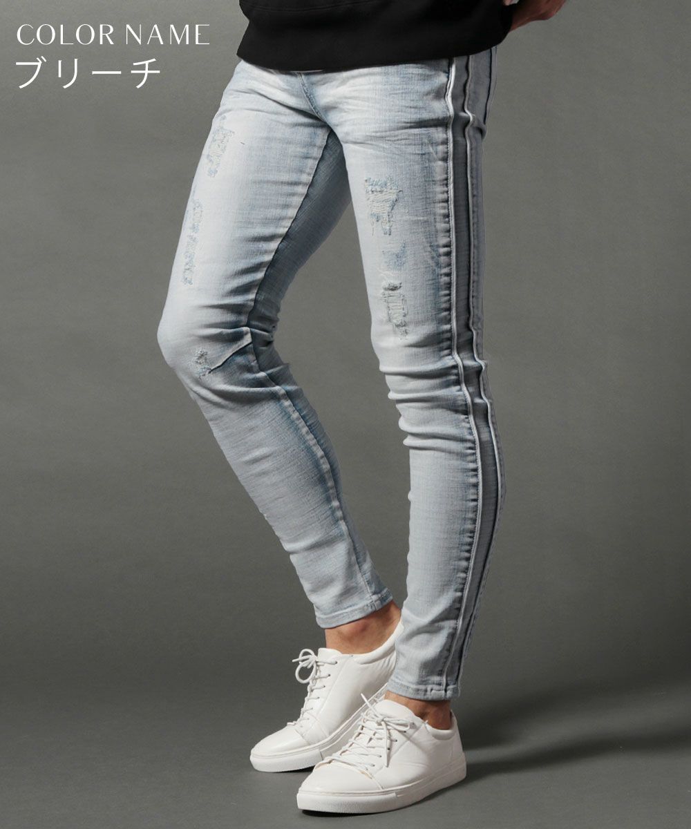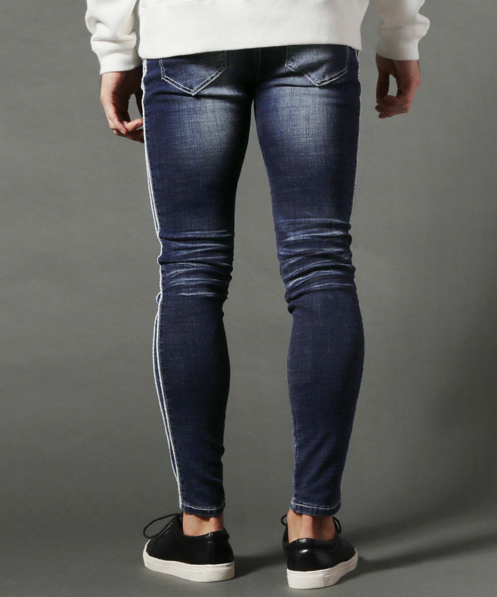 サイドラインパイピングストレッチスキニー デニムパンツ