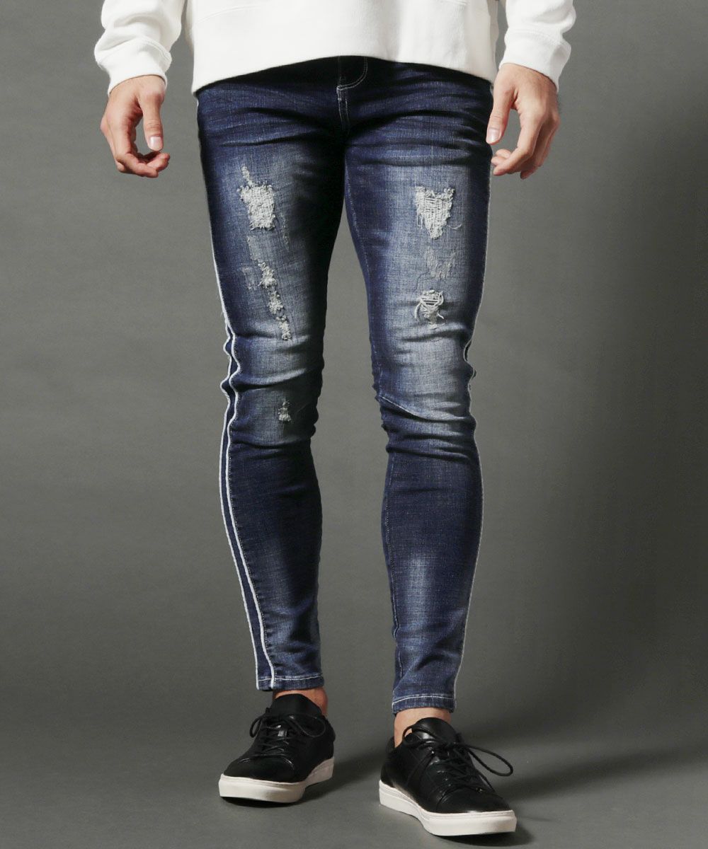 スラブストレッチダメージ加工スキニーデニムパンツ