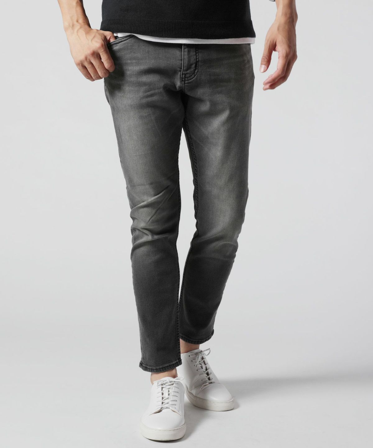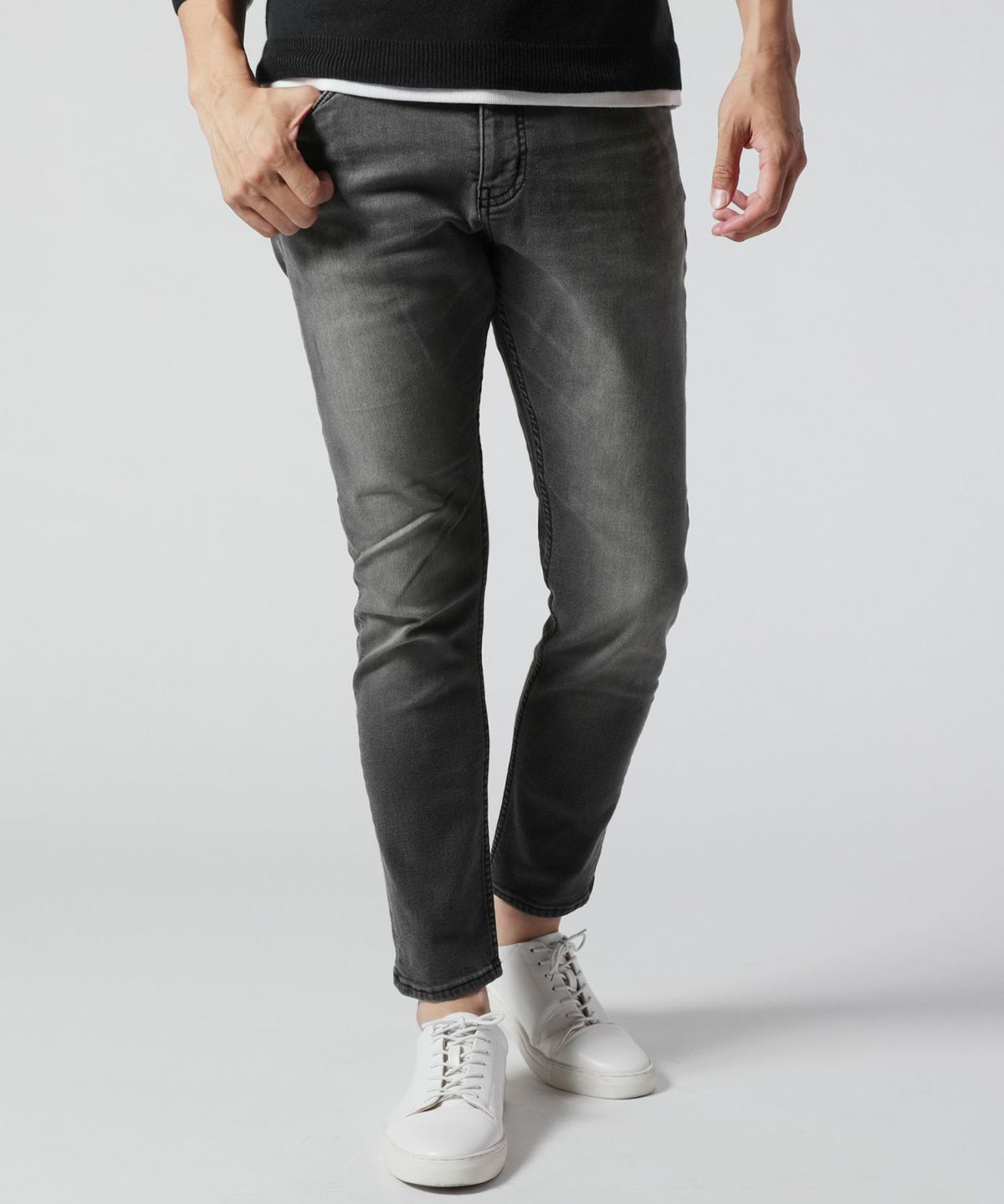 日本製黒×黒ストレッチデニムアンクルパンツ