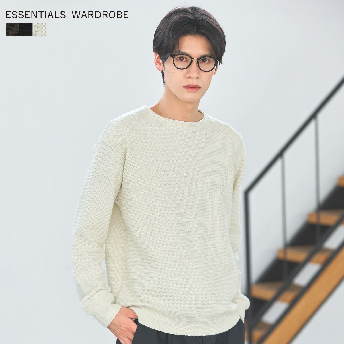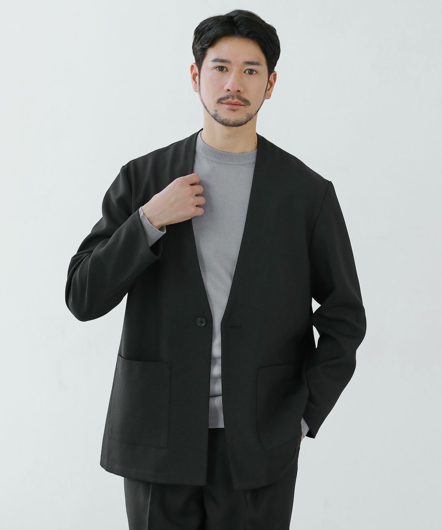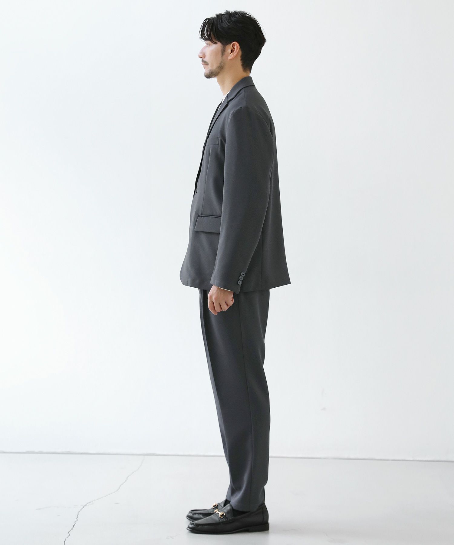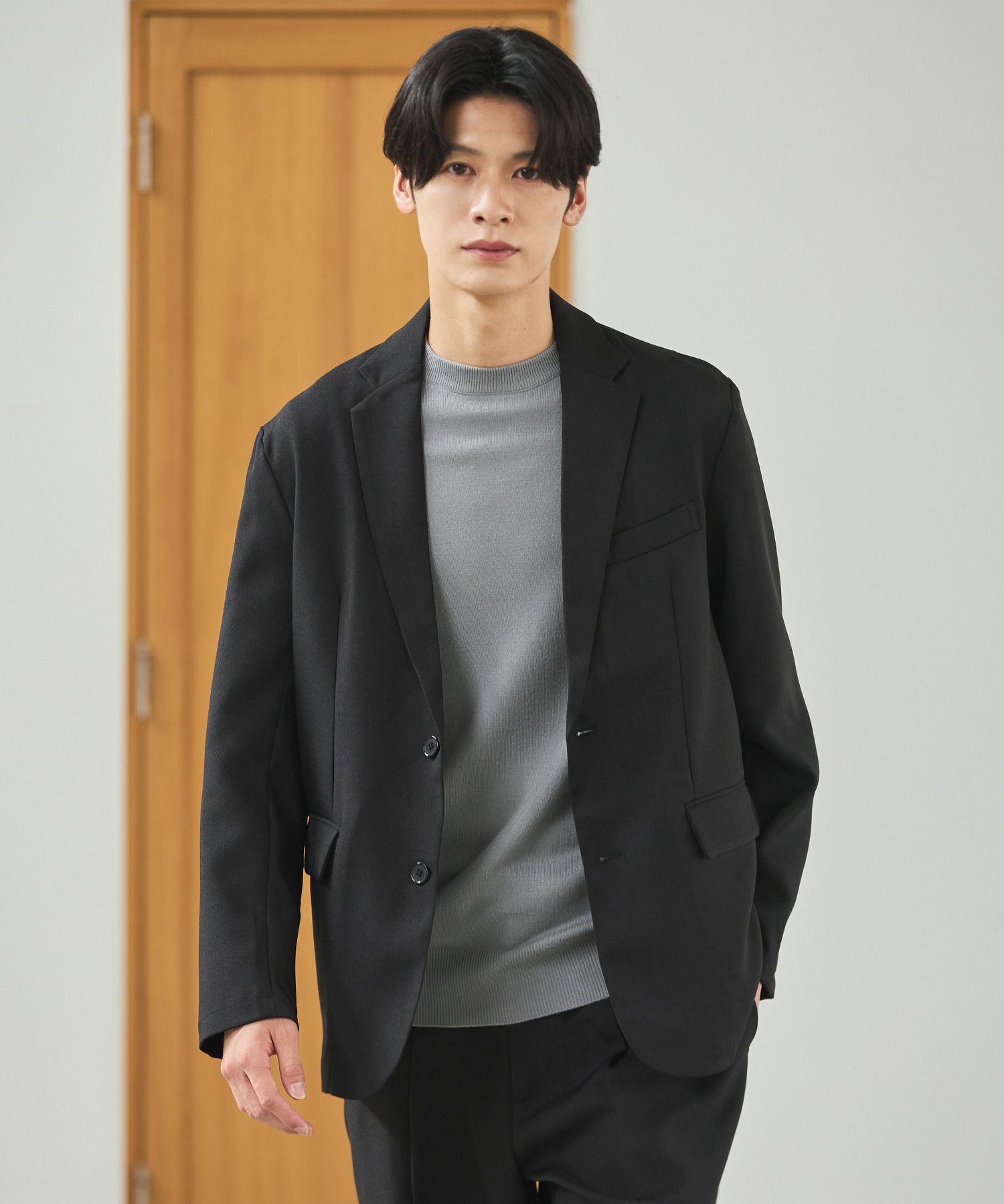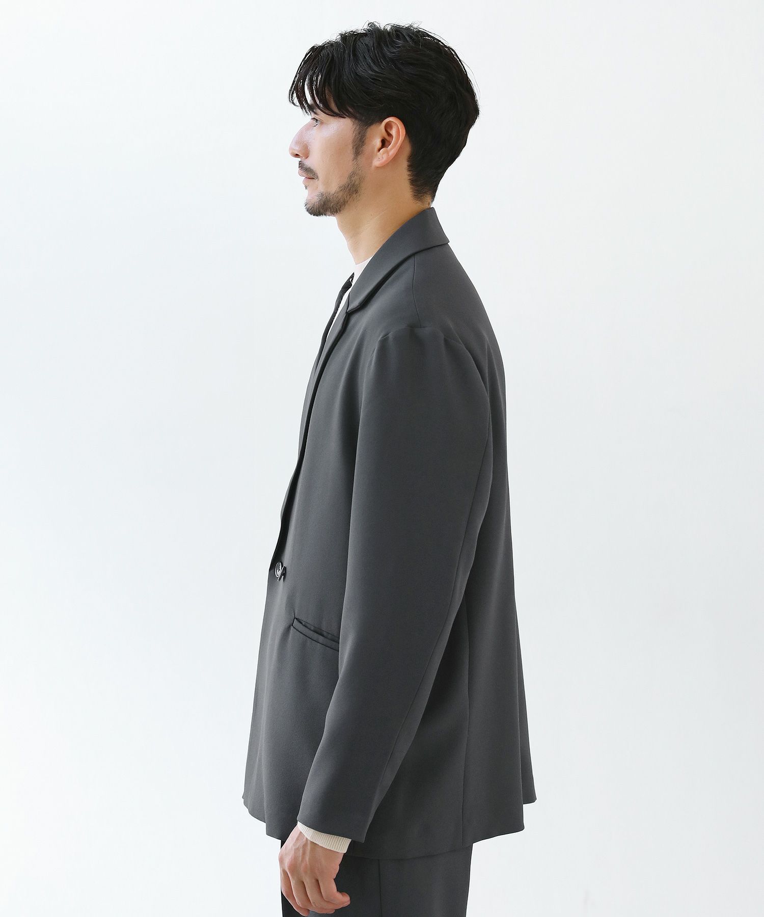 ESSENTIALS WARDROBEのセットアップは「3点セットアップ」。その名の通り、上下に加えてインナーになるニットアイテムもセットにしたまさに「届いてすぐにサマになるセットアップ」です。3点すべてが一緒に着用すること考えられたサイジングなので、理想のキレイめな着こなしが体感できる自信作。手軽に、それでいて大人が目指すキレイめカジュアルをお届けします。