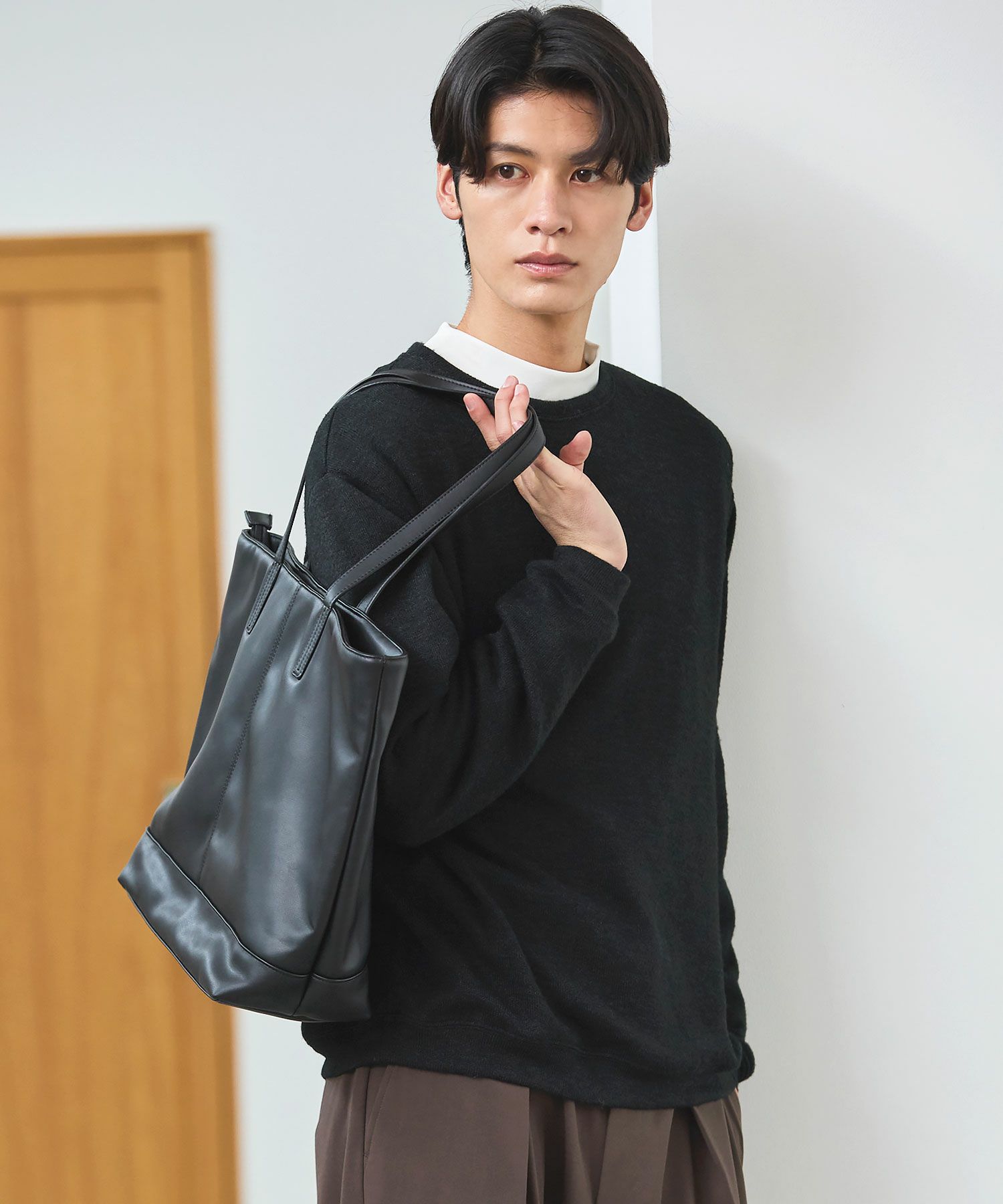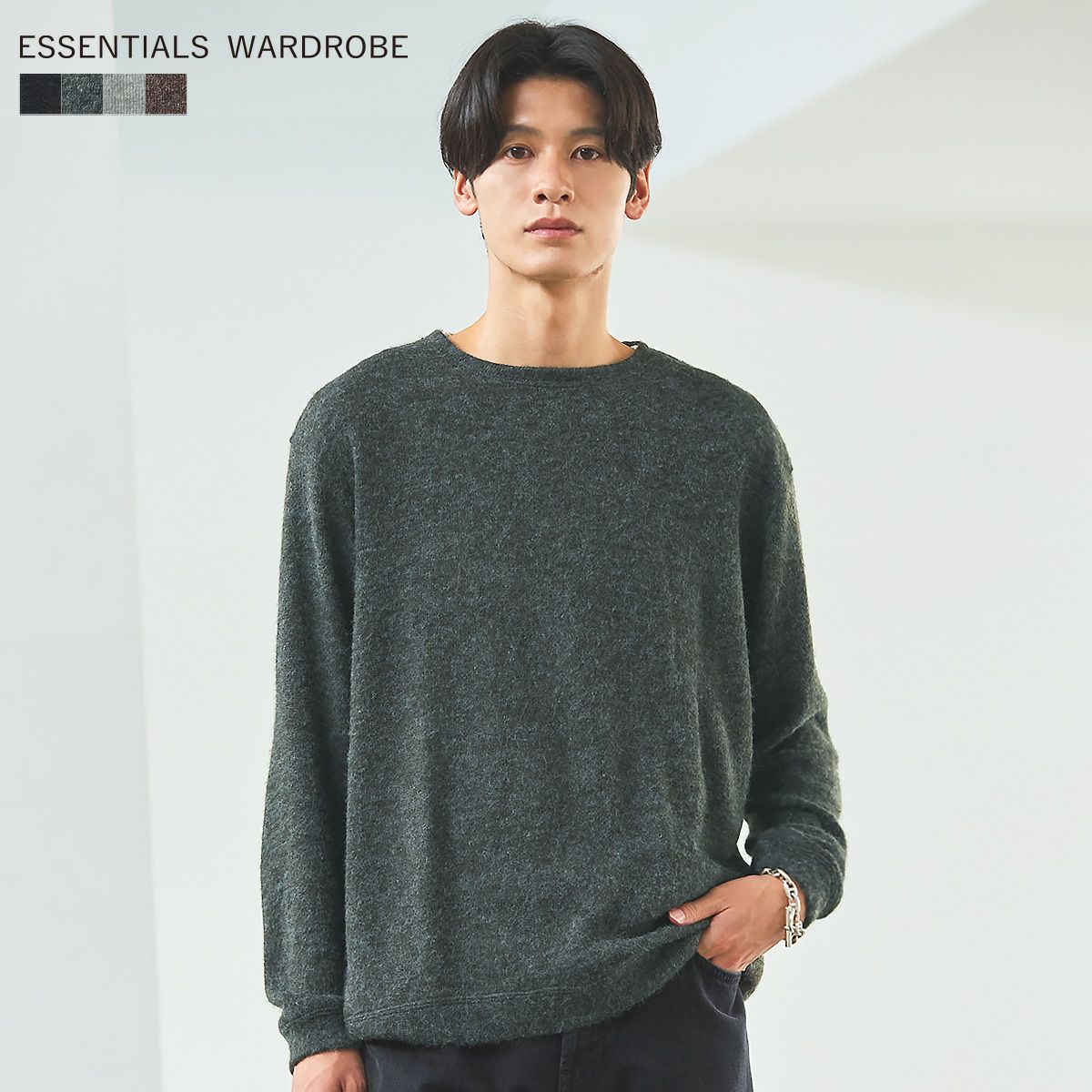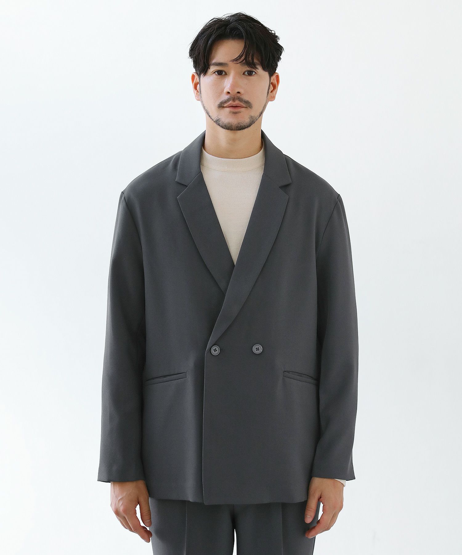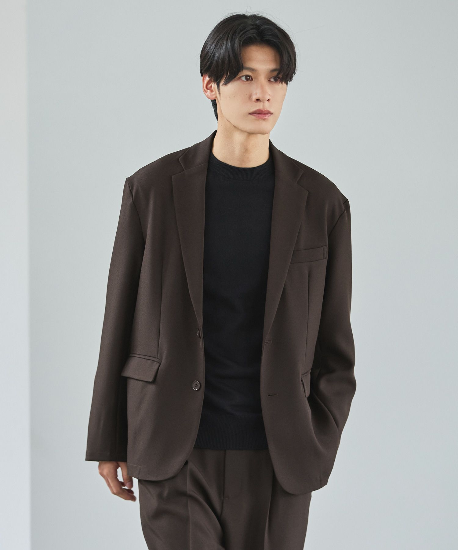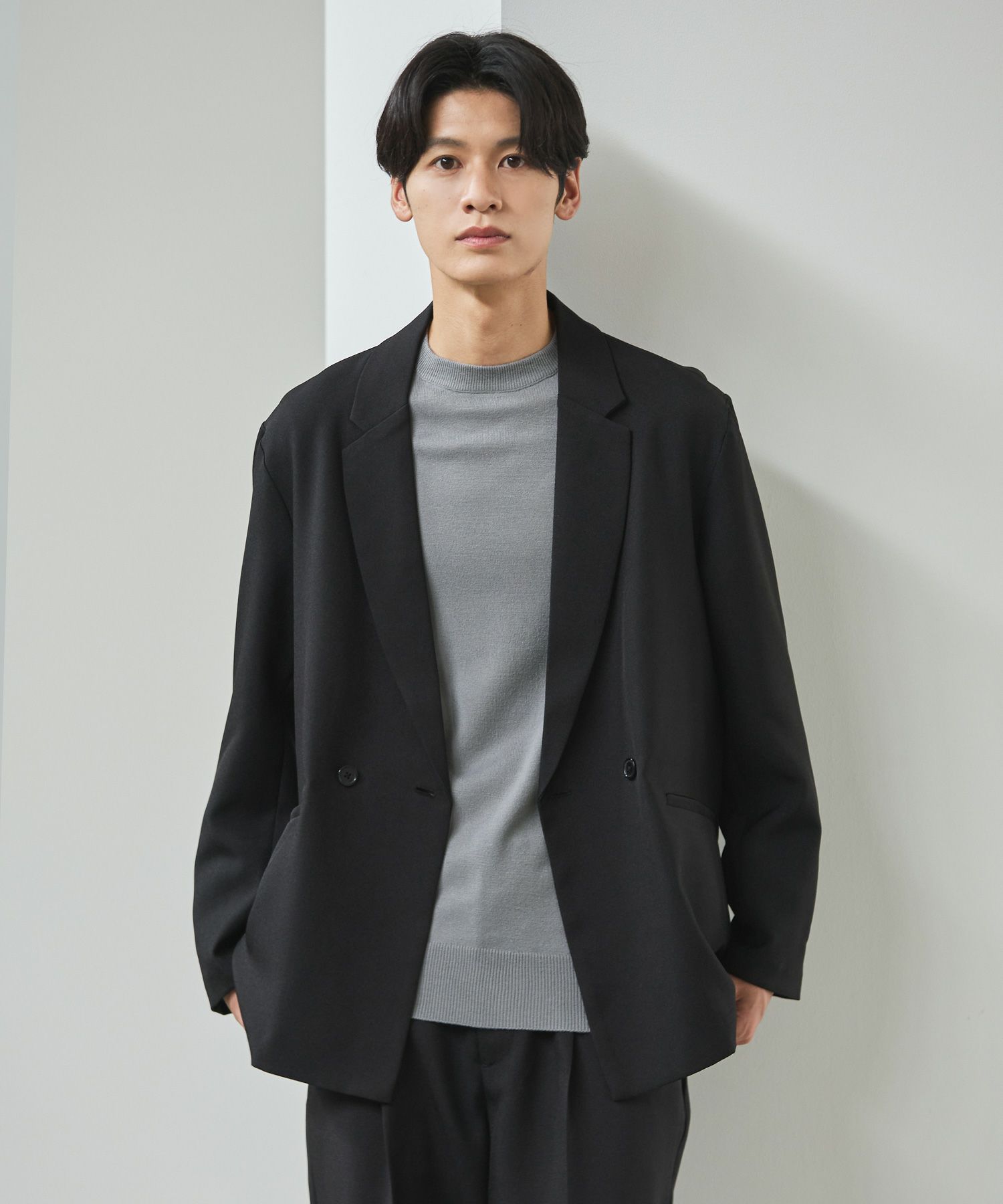 ESSENTIALS WARDROBEのセットアップは「3点セットアップ」。その名の通り、上下に加えてインナーになるニットアイテムもセットにしたまさに「届いてすぐにサマになるセットアップ」です。3点すべてが一緒に着用すること考えられたサイジングなので、理想のキレイめな着こなしが体感できる自信作。手軽に、それでいて大人が目指すキレイめカジュアルをお届けします。