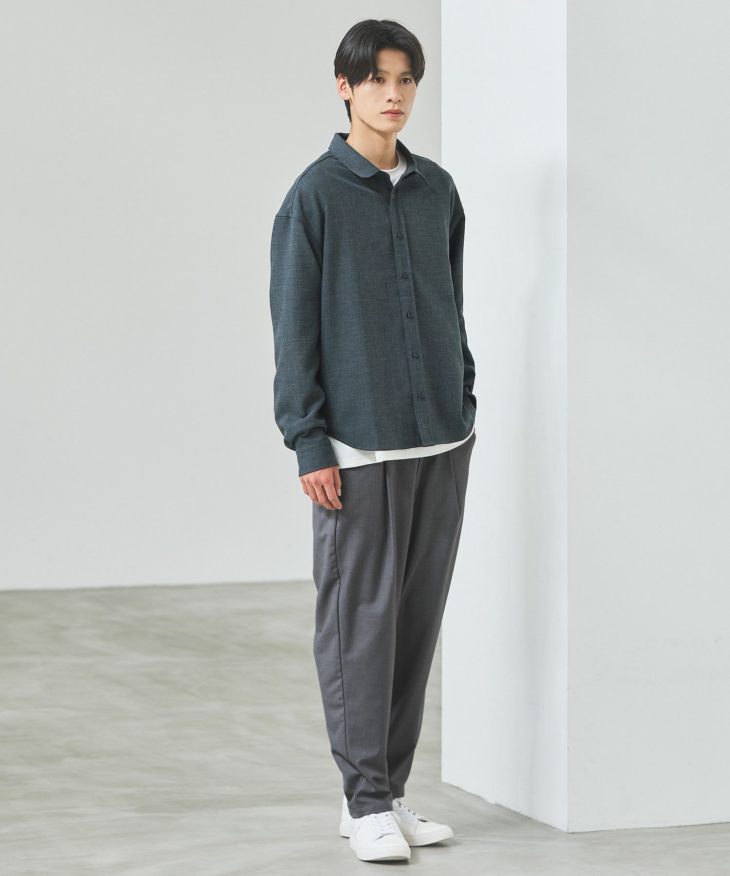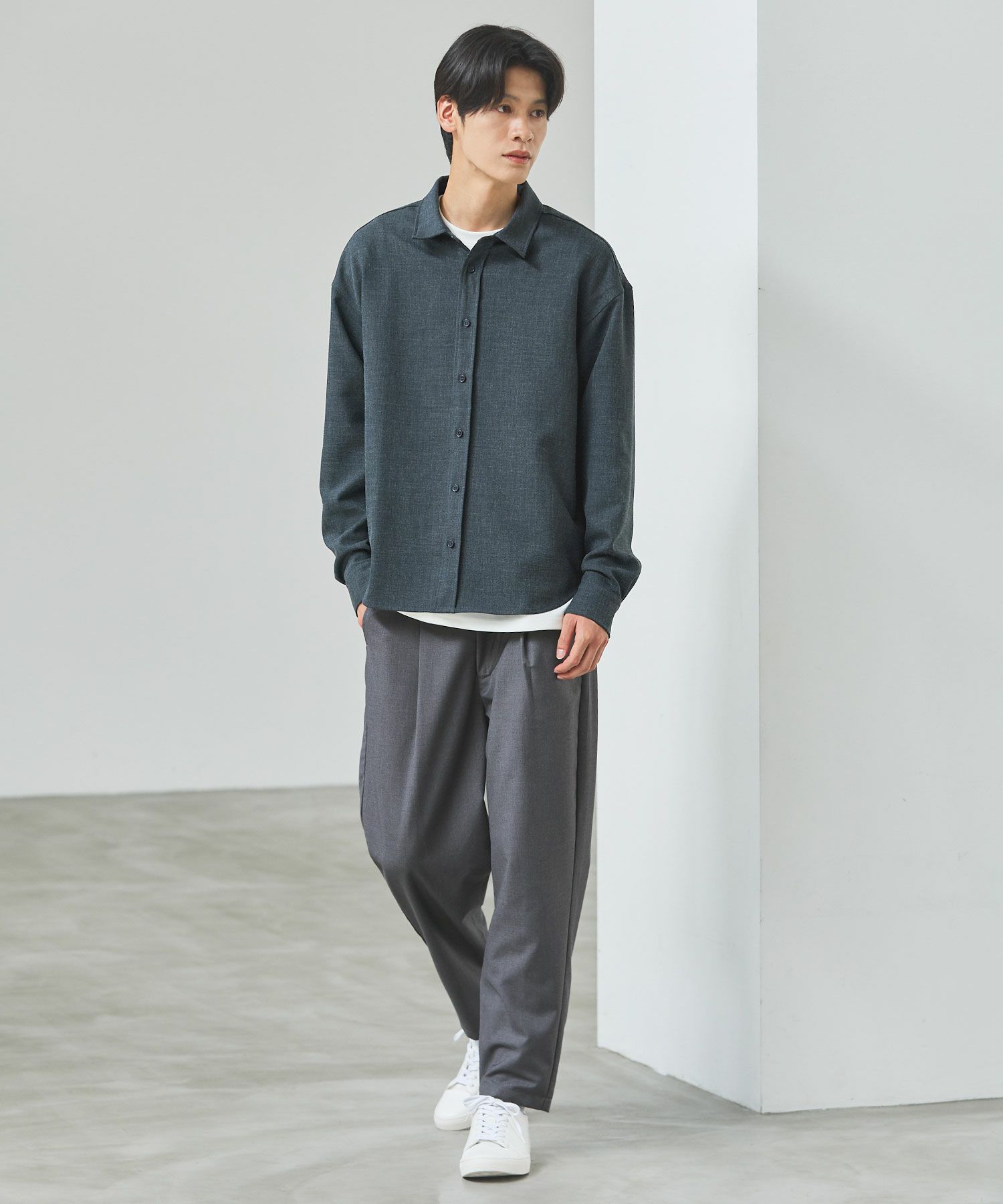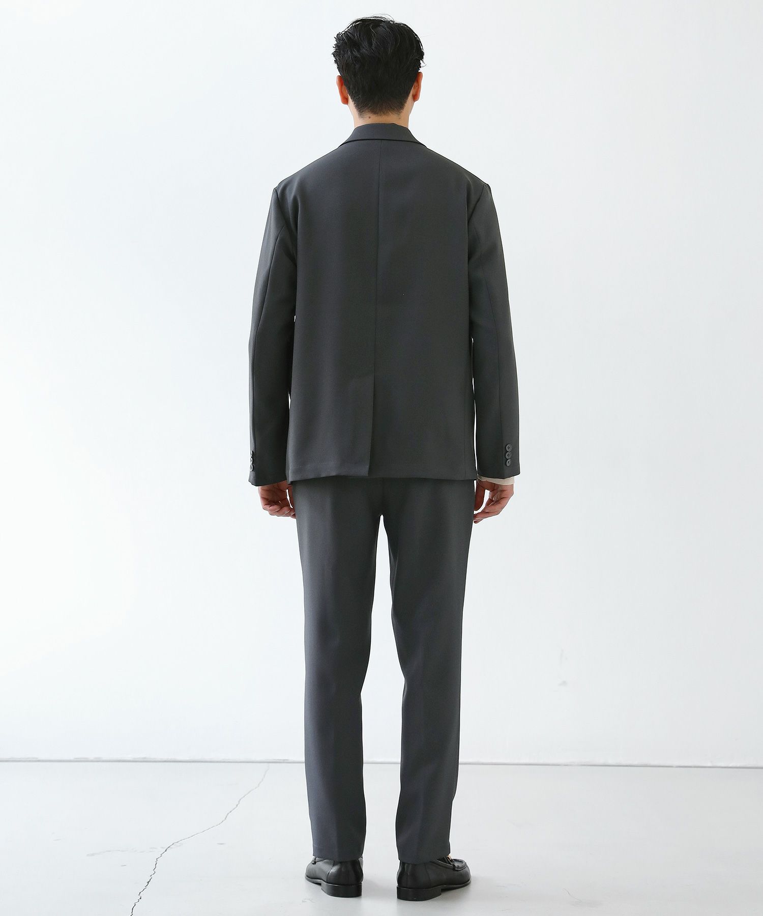 セットアップをオススメする理由のもう一つは単品使いの優秀さ。3点それぞれが単品で使用することも考えて作り込まれたアイテムなので、どんどん着回しの軸にしてほしいんです。特にオススメなのはボトムスを軸にした着回し。癖もなく、程よくテーパードされたキレイめスラックスはとっても使いやすく、皆様がお持ちのアイテムとの相性もバッチリのはず。ESSENTIALS WARDROBEからもシャツやニットアイテムがリリースされていて、セットアップと一緒に購入されている方も多くいらっしゃいます。