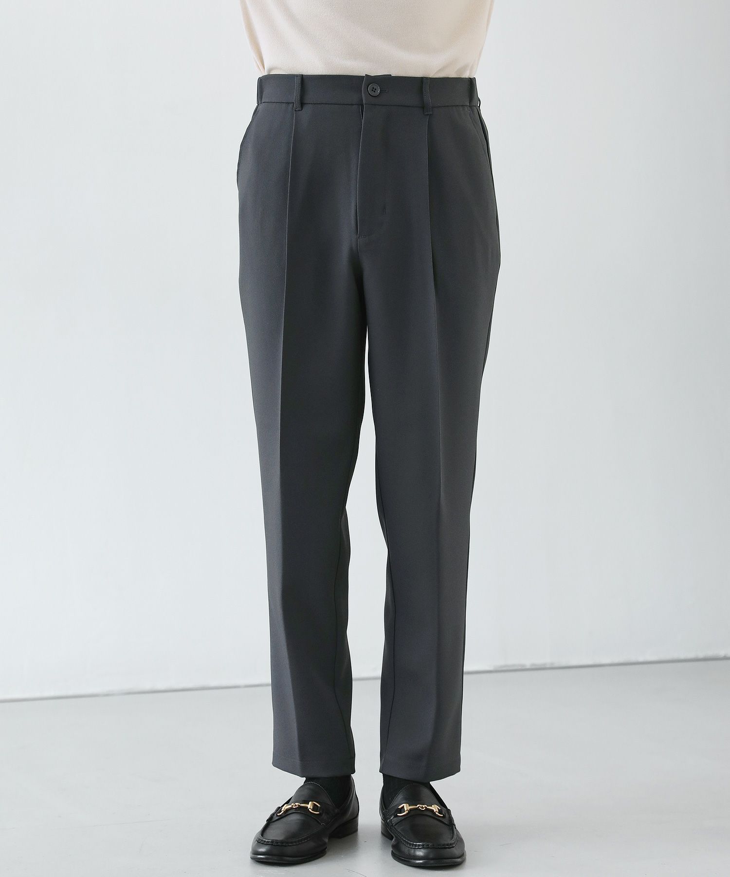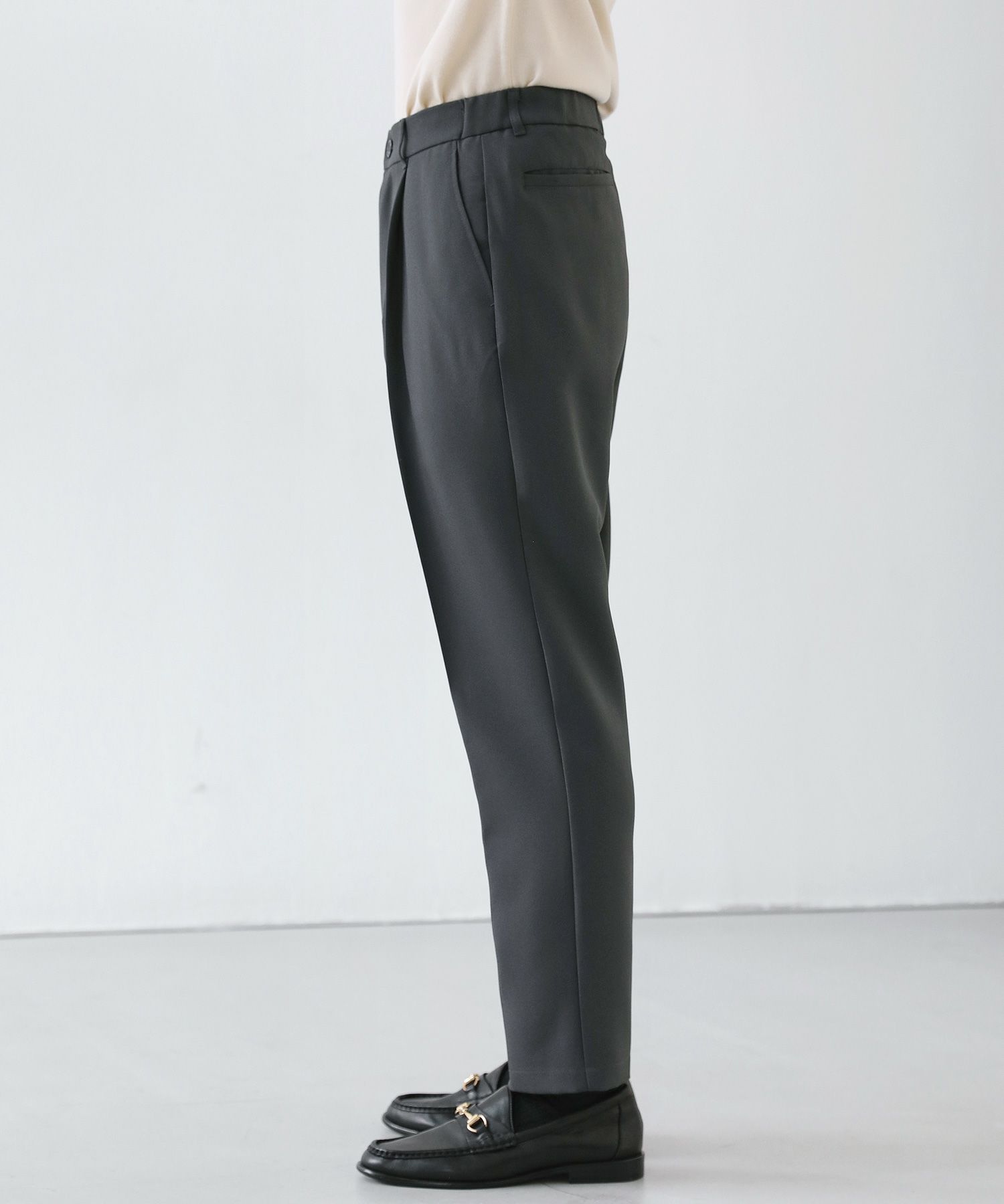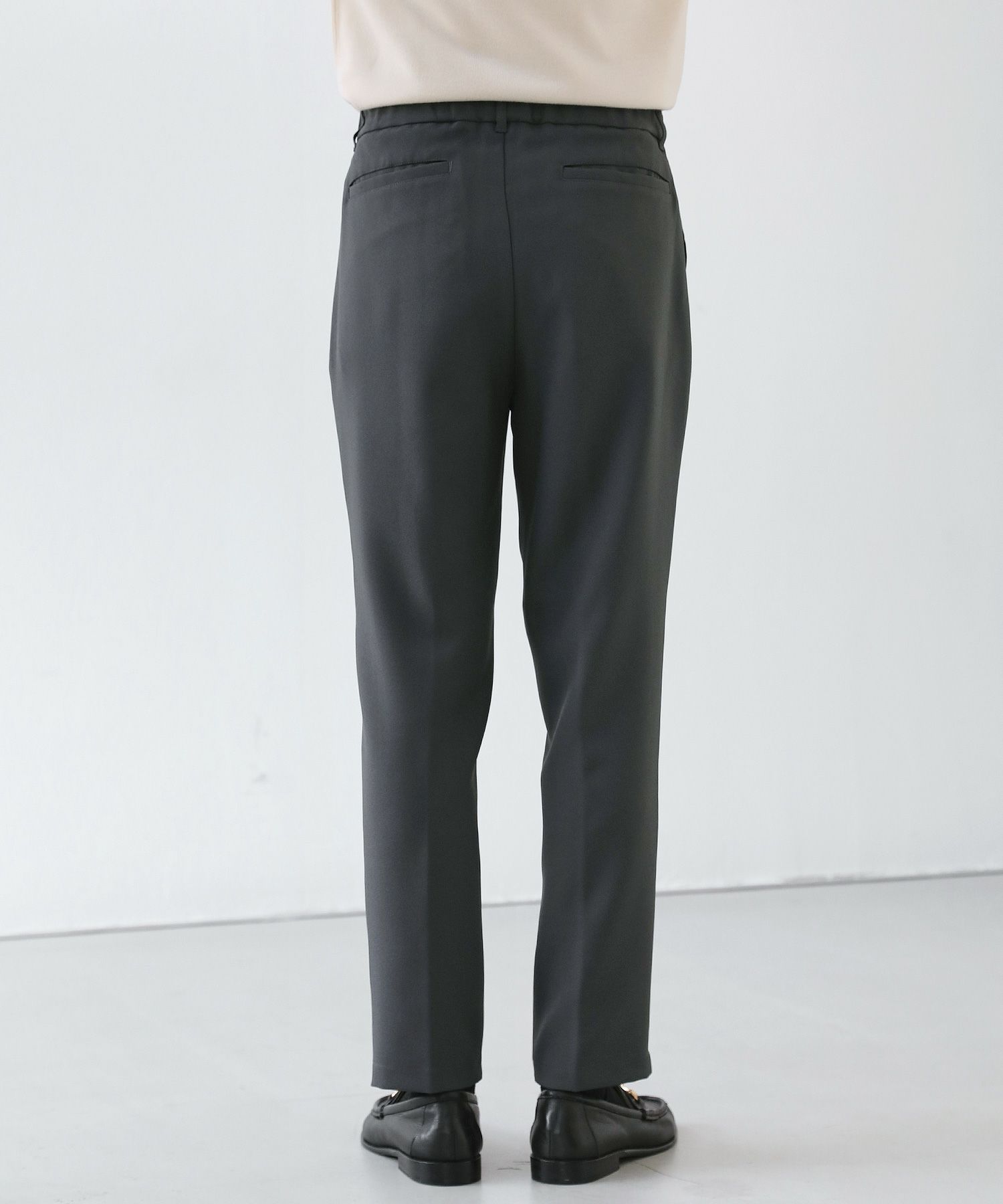 セットアップをオススメする理由のもう一つは単品使いの優秀さ。3点それぞれが単品で使用することも考えて作り込まれたアイテムなので、どんどん着回しの軸にしてほしいんです。特にオススメなのはボトムスを軸にした着回し。癖もなく、程よくテーパードされたキレイめスラックスはとっても使いやすく、皆様がお持ちのアイテムとの相性もバッチリのはず。ESSENTIALS WARDROBEからもシャツやニットアイテムがリリースされていて、セットアップと一緒に購入されている方も多くいらっしゃいます。
