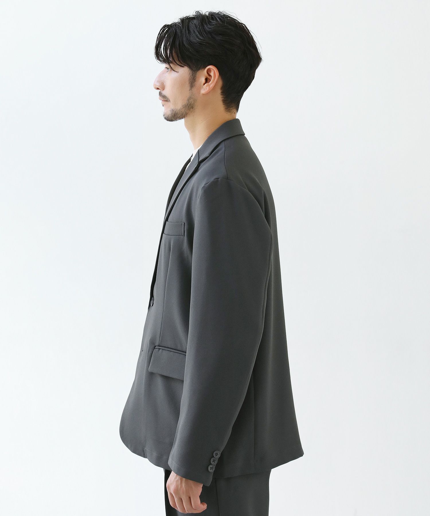 セットアップとは「同じ生地で仕立てた上下セットアイテム」の総称であり、形は様々ですが、ジャケット&パンツが多いかなと思います。基本的には「カジュアルなスーツ」という位置づけのファッションアイテム。もちろん、シャツやスウェットの上下セットもございます。