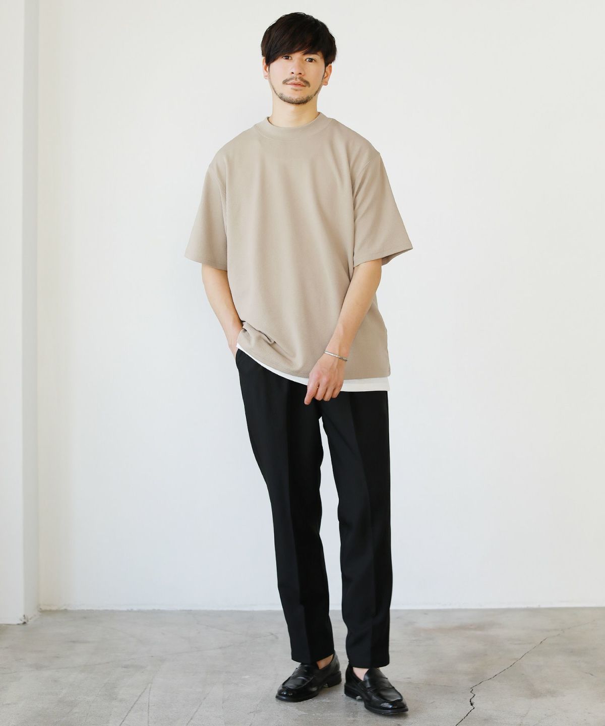 抗菌&接触冷感ふくれカット地 モックネック半袖カットソー