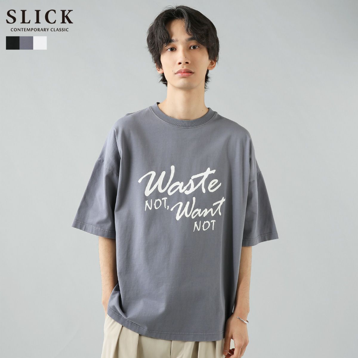 MVS天竺の最大の強み。それは“摩耗に強い”ということです。毛玉の原因ともなる毛羽がそもそも少ないため着用を繰り返しても毛玉ができにくく、さらに糸の特殊構造によって洗濯をしても型崩れしにくいという特長も持っています。摩耗に強い生地なのでご自宅でも気軽にケアができるという点が、MVS天竺を使用したアイテムの大きなメリットです。