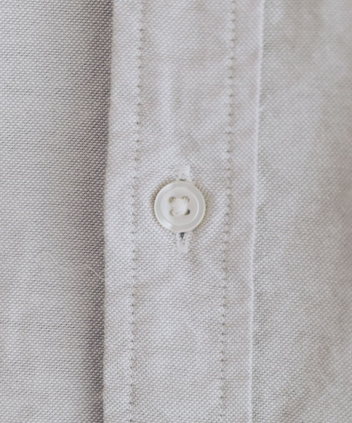 肌に優しい綿100%のオックス生地を用いています。シーズンレスに着回せる程よい厚み。しっかりとした生地感でありながらも柔らかく、肌に馴染むソフトな風合いで着心地の良さは抜群です。通常のオックス生地よりも高密度で織られているため頑丈でハリがあり、上品な光沢も放ちます。