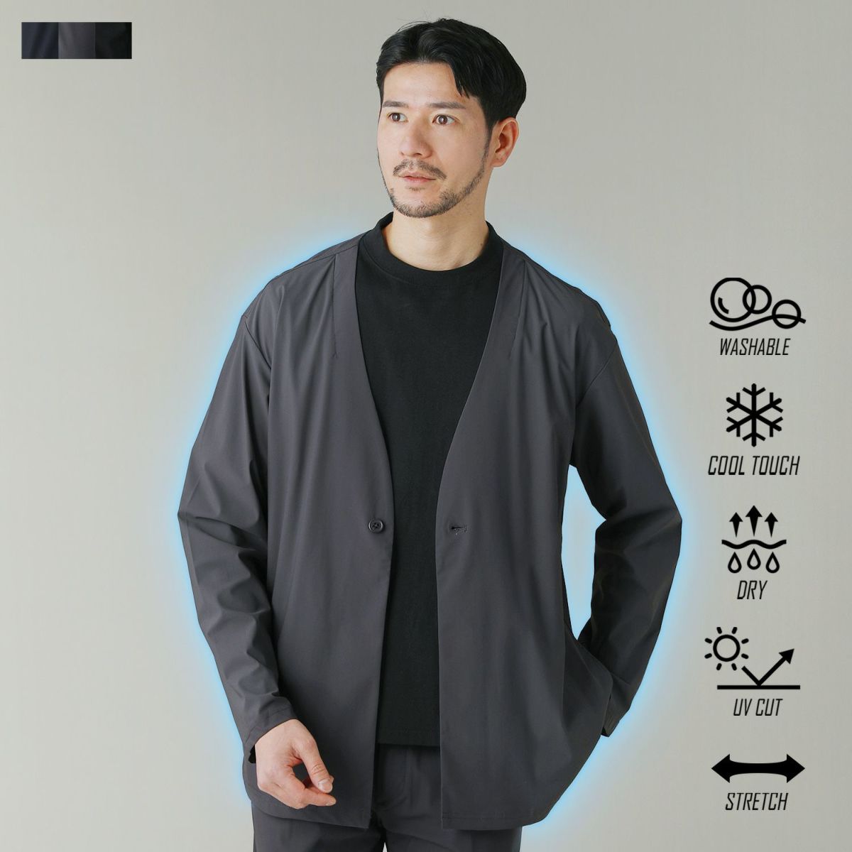 他の画像を見る Buyer's select 接触冷感・吸汗速乾ナイロンニットノーカラー長袖ジャケット 通常販売価格 ¥ 7,700 のところ ¥ 4,620 税込 カートに入れる お気に入りに登録する