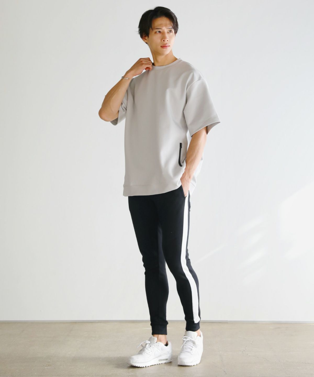 リラクシングシルエットセンタープレススラックスパンツ ポリストレッチ生地/テックリネン生地