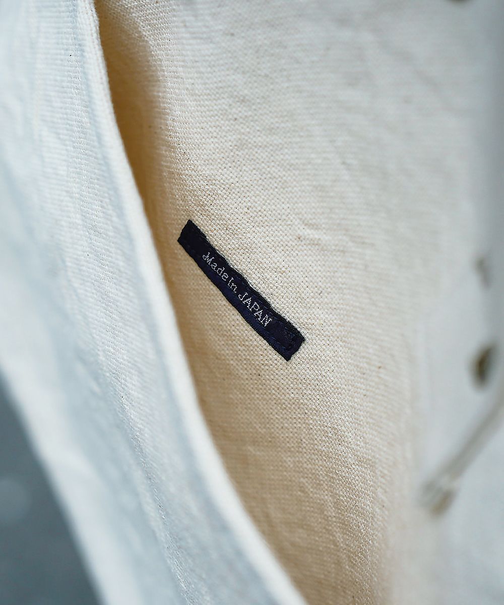 デニムの産地として知られる岡山県の倉敷帆布を製造する工場で、百年以上も前から続く昔ながらのシャトル機で織られた帆布。熟練した職人の手で丁寧に織られた生地は耐久性に優れており、重量感のある6号糸を粗く織り込むことで『軽さ』と『柔らかさ』を持ち合わせています。実際に手に取ってみると感じる優しい雰囲気が何ともチャーミングで一層の愛着を感じさせます。
