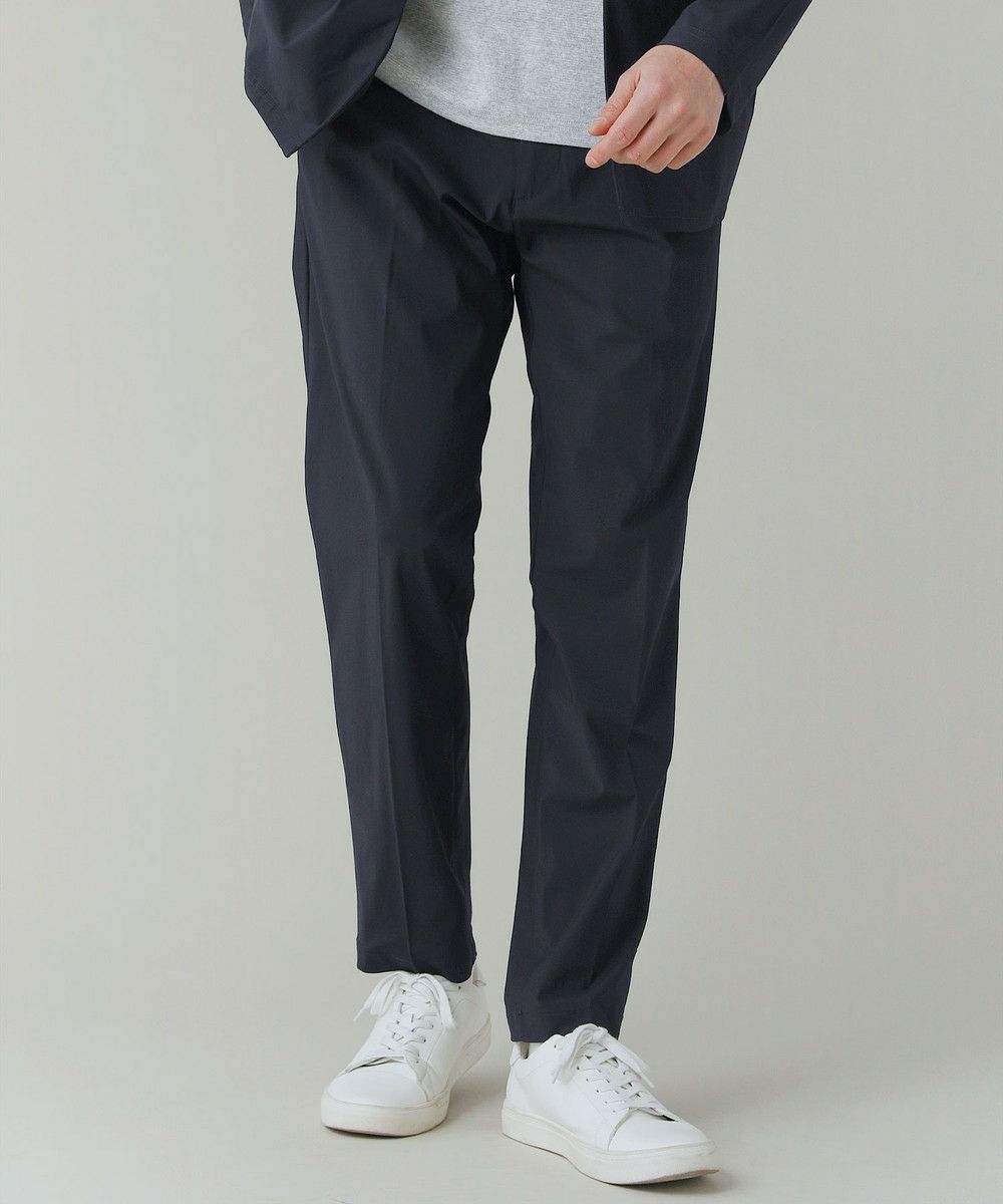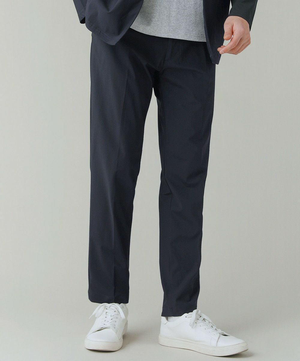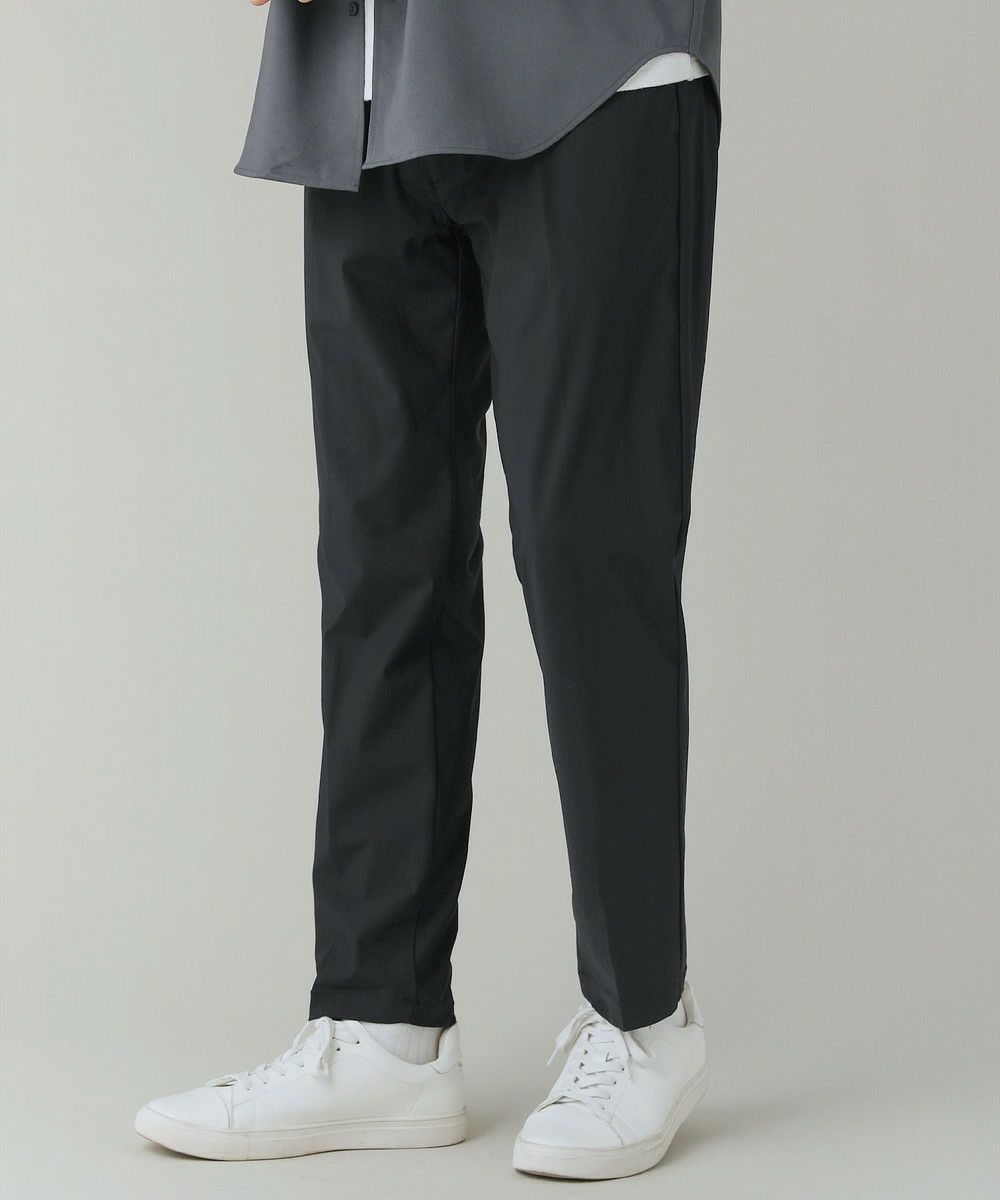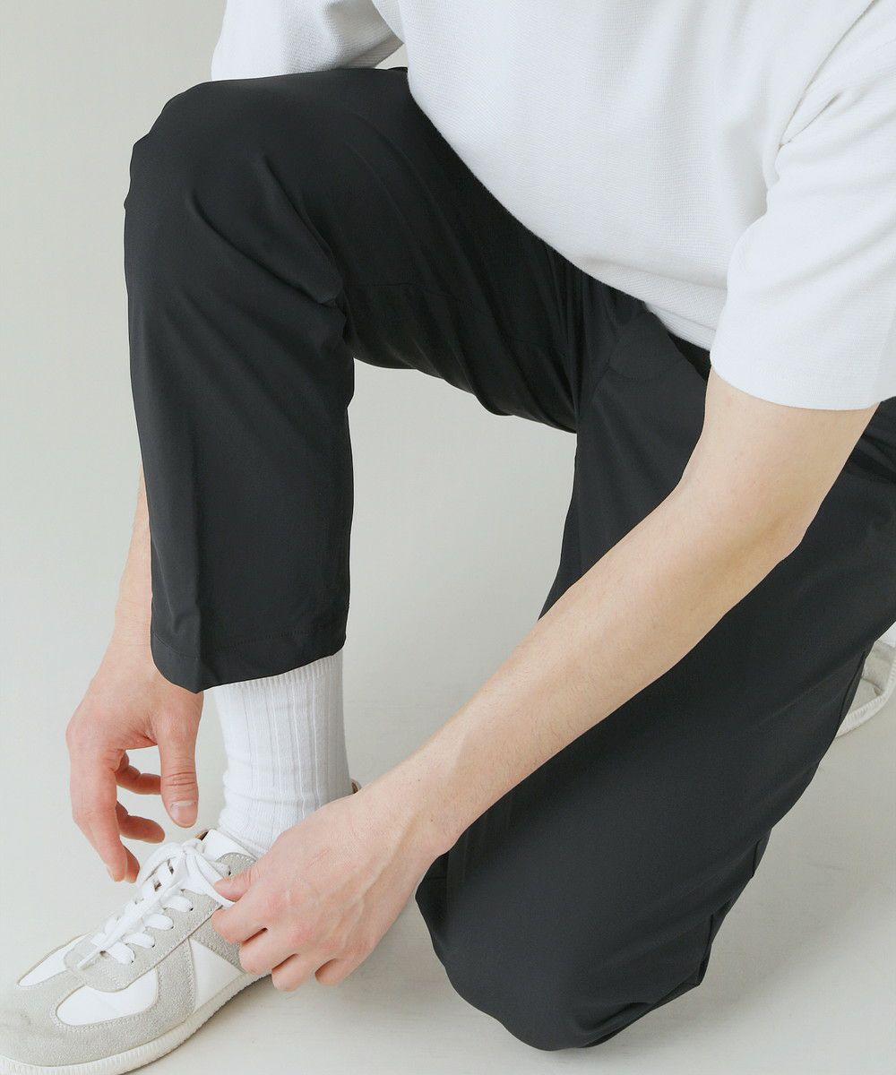 デザインはオン・オフどちらにも合わせやすいスリムテーパードラインを採用。気温や湿度の高いシーズンでもサッと手に取りやすく、すっきりとした印象にまとめてくれます。キレイめなルックスをキープしつつ、ウエストはゴムと紐で調節可能なイージーパンツ仕様。フロントのジップや計4つのポケットなど、ディテールも抜かりないアイテムです。ストレッチ性のある素材で膝の曲げ伸ばしもストレスなく行え、デスクワークなどのシーンにも活躍します。