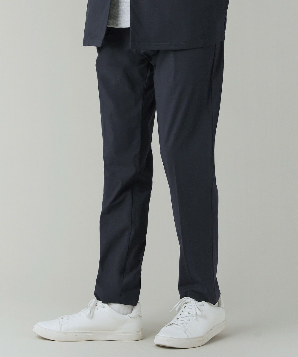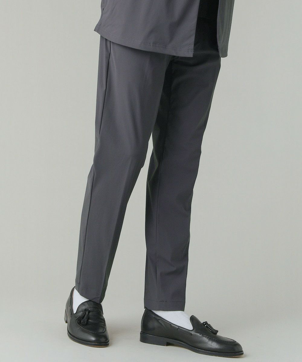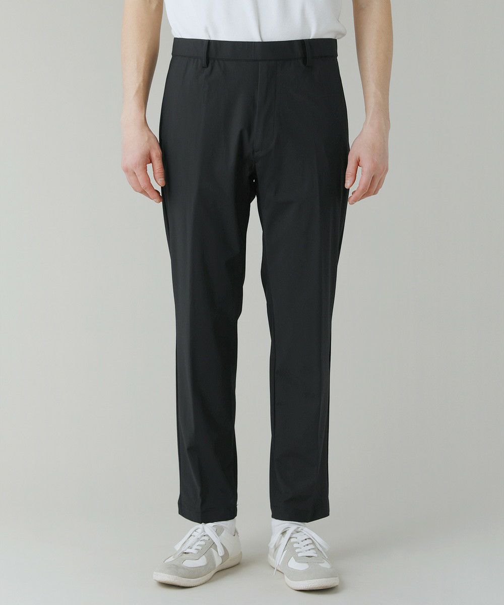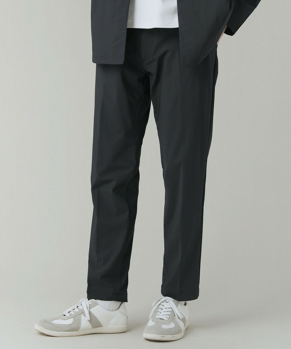 デザインはオン・オフどちらにも合わせやすいスリムテーパードラインを採用。気温や湿度の高いシーズンでもサッと手に取りやすく、すっきりとした印象にまとめてくれます。キレイめなルックスをキープしつつ、ウエストはゴムと紐で調節可能なイージーパンツ仕様。フロントのジップや計4つのポケットなど、ディテールも抜かりないアイテムです。ストレッチ性のある素材で膝の曲げ伸ばしもストレスなく行え、デスクワークなどのシーンにも活躍します。