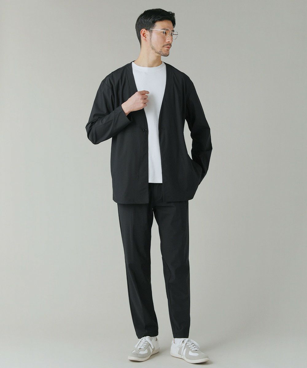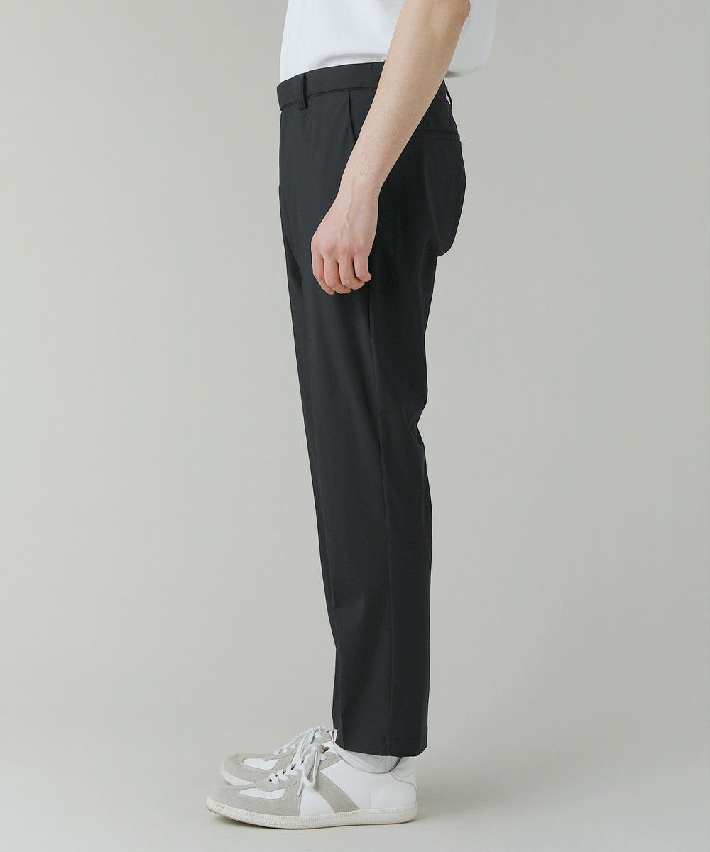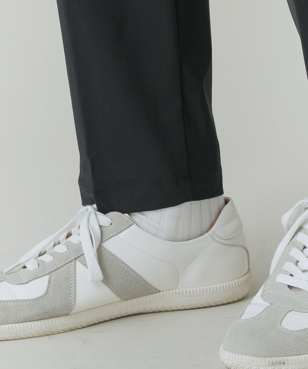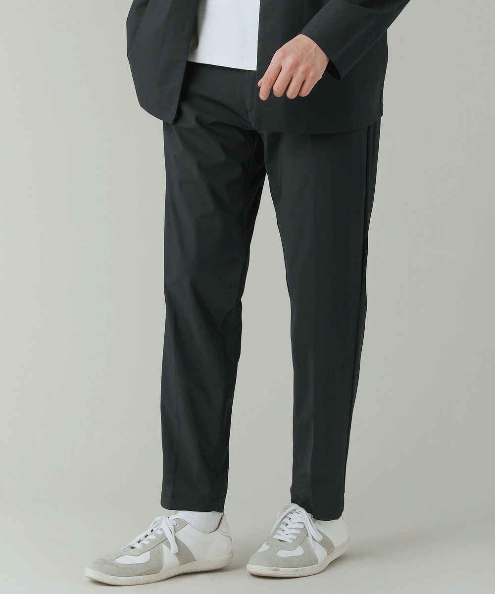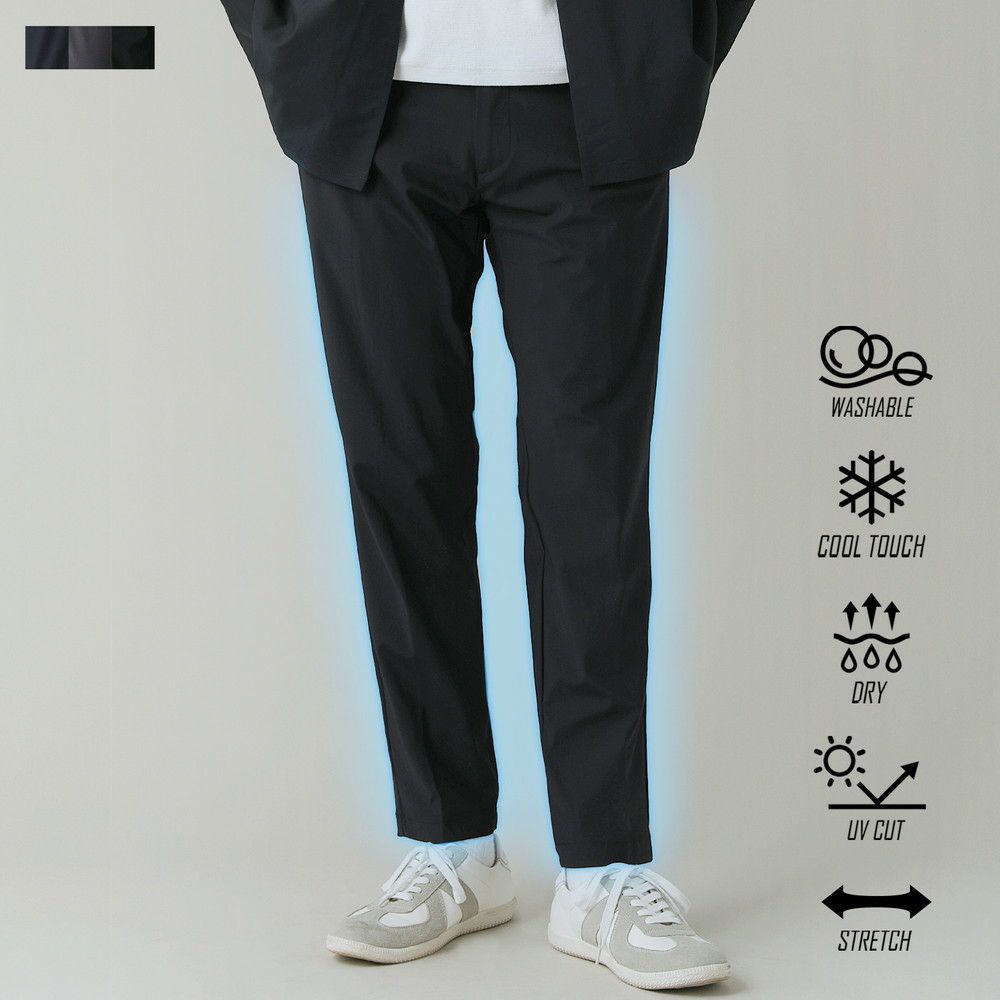 デザインはオン・オフどちらにも合わせやすいスリムテーパードラインを採用。気温や湿度の高いシーズンでもサッと手に取りやすく、すっきりとした印象にまとめてくれます。キレイめなルックスをキープしつつ、ウエストはゴムと紐で調節可能なイージーパンツ仕様。フロントのジップや計4つのポケットなど、ディテールも抜かりないアイテムです。ストレッチ性のある素材で膝の曲げ伸ばしもストレスなく行え、デスクワークなどのシーンにも活躍します。