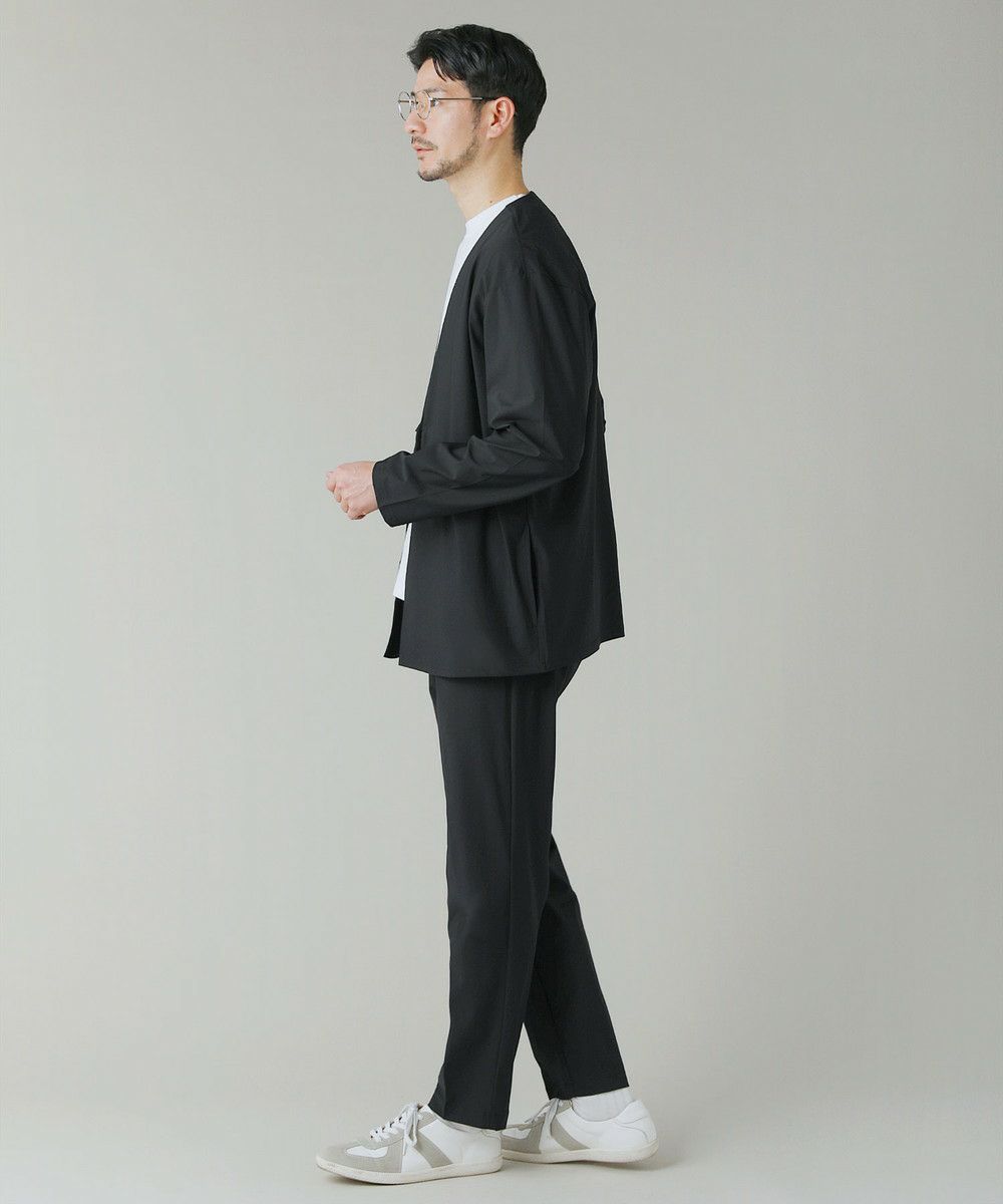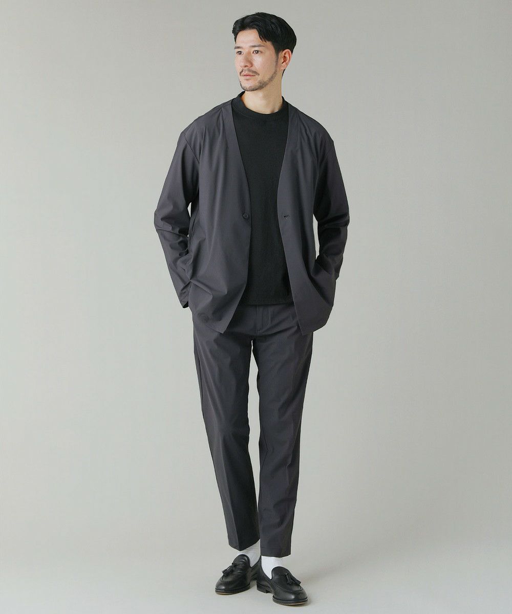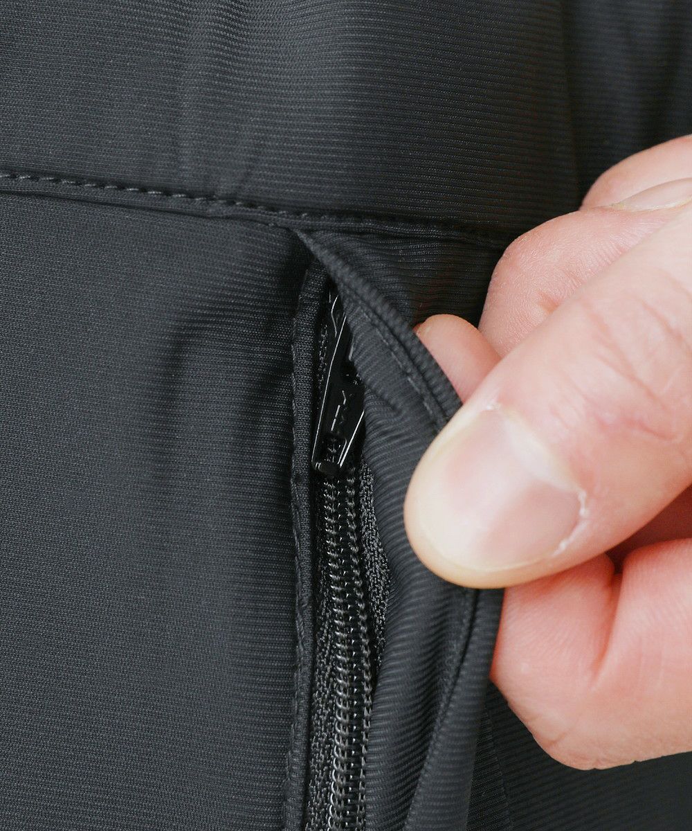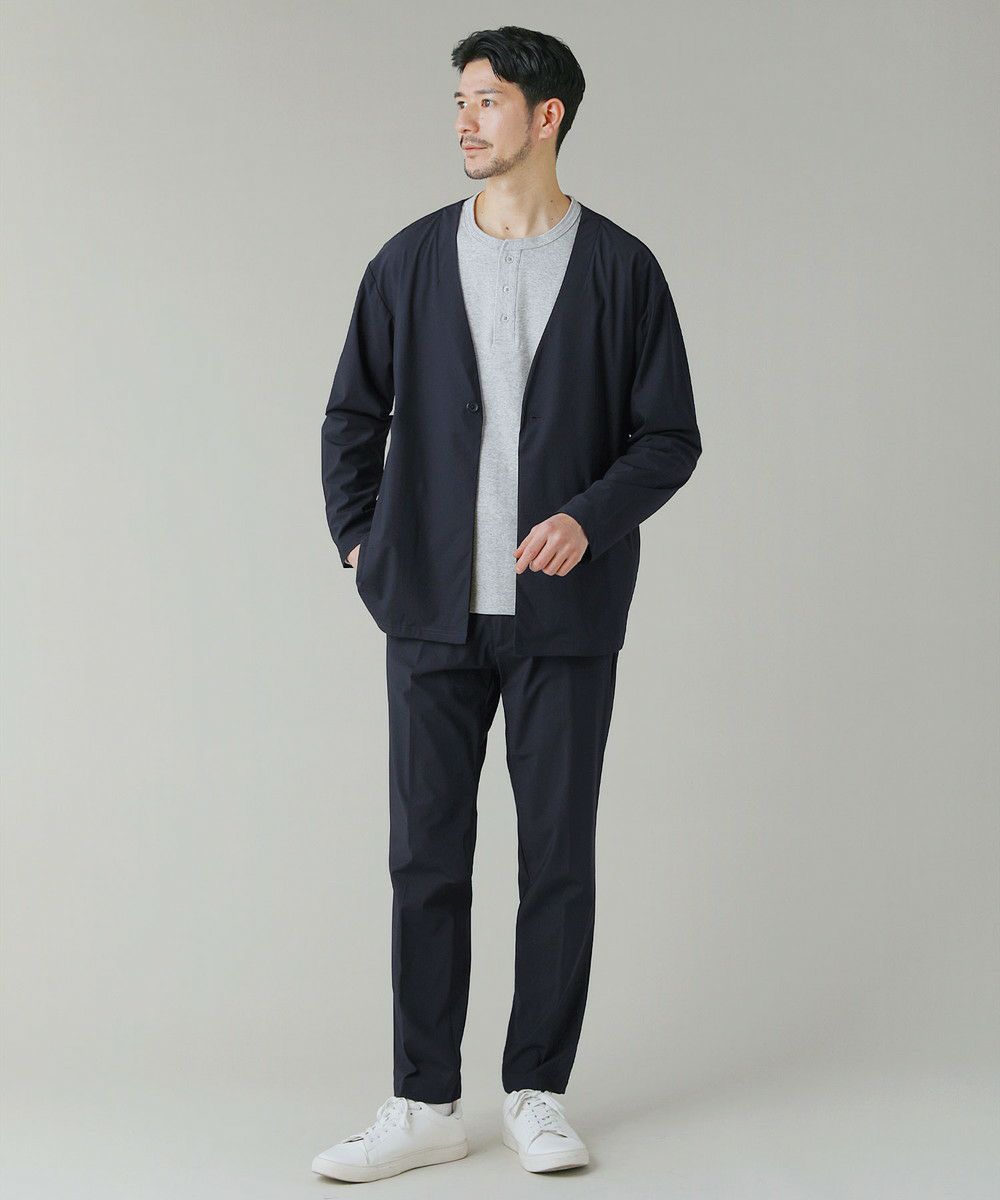 デザインはオン・オフどちらにも合わせやすいスリムテーパードラインを採用。気温や湿度の高いシーズンでもサッと手に取りやすく、すっきりとした印象にまとめてくれます。キレイめなルックスをキープしつつ、ウエストはゴムと紐で調節可能なイージーパンツ仕様。フロントのジップや計4つのポケットなど、ディテールも抜かりないアイテムです。ストレッチ性のある素材で膝の曲げ伸ばしもストレスなく行え、デスクワークなどのシーンにも活躍します。