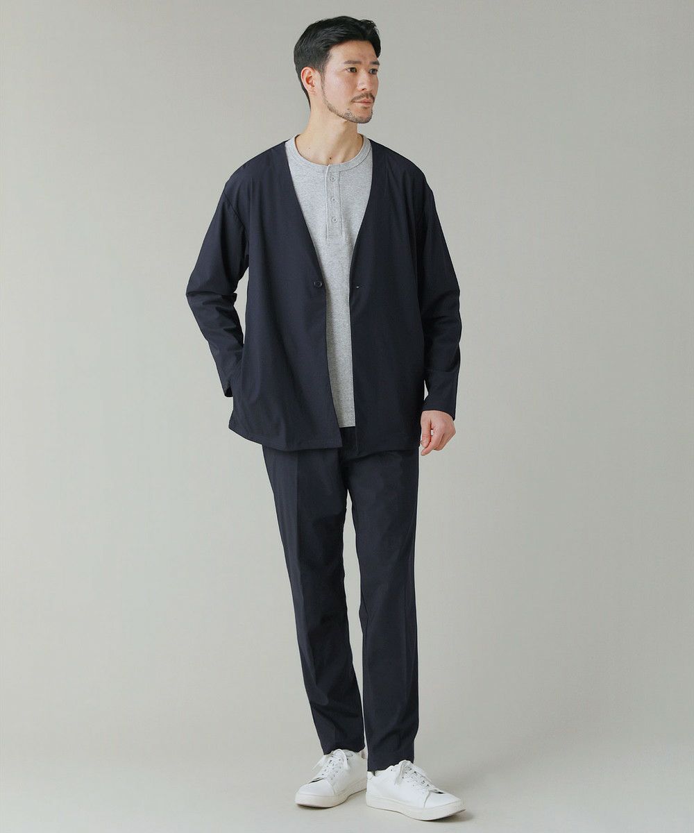 接触冷感・吸汗速乾ナイロンニットノーカラー長袖ジャケット
