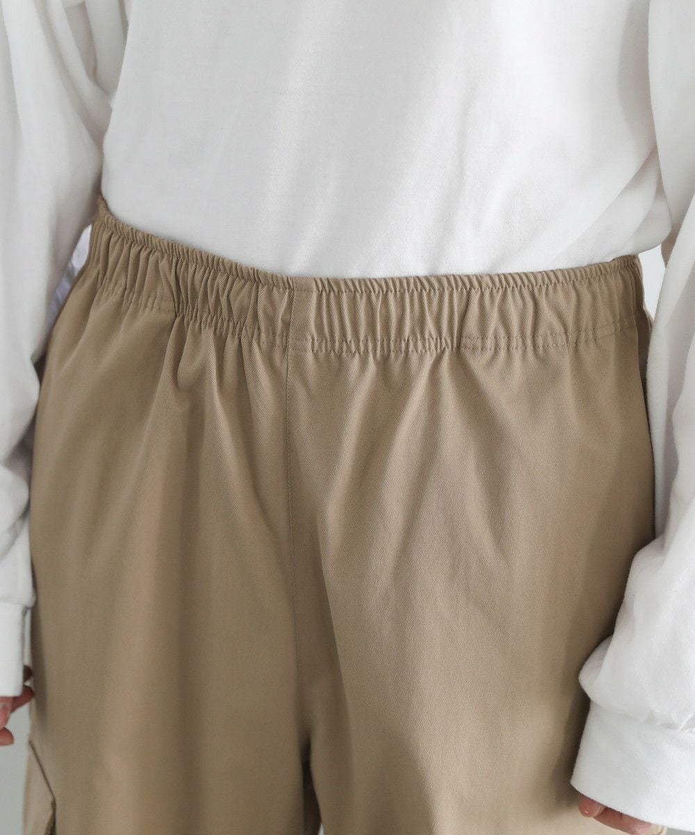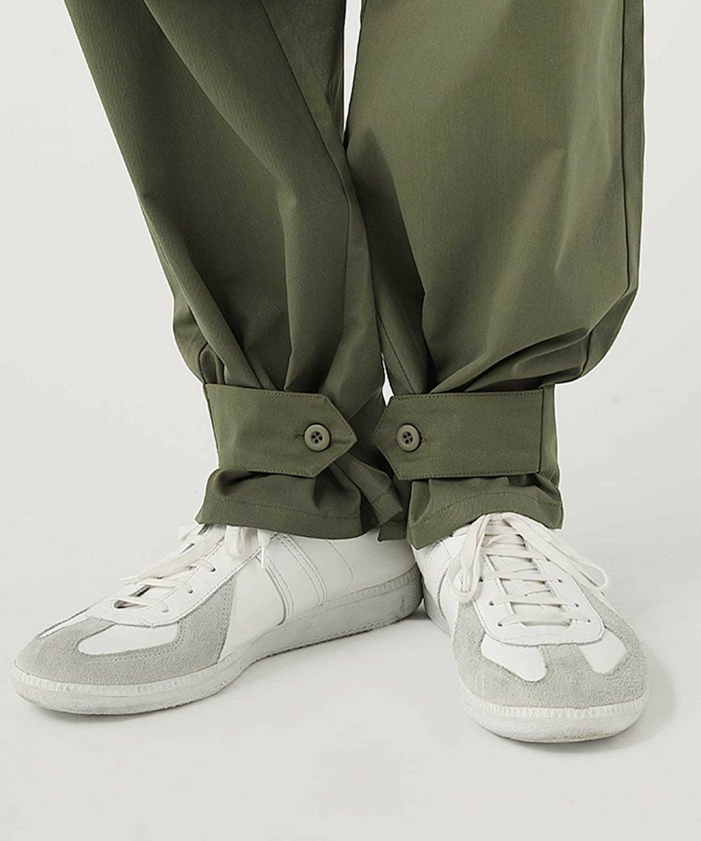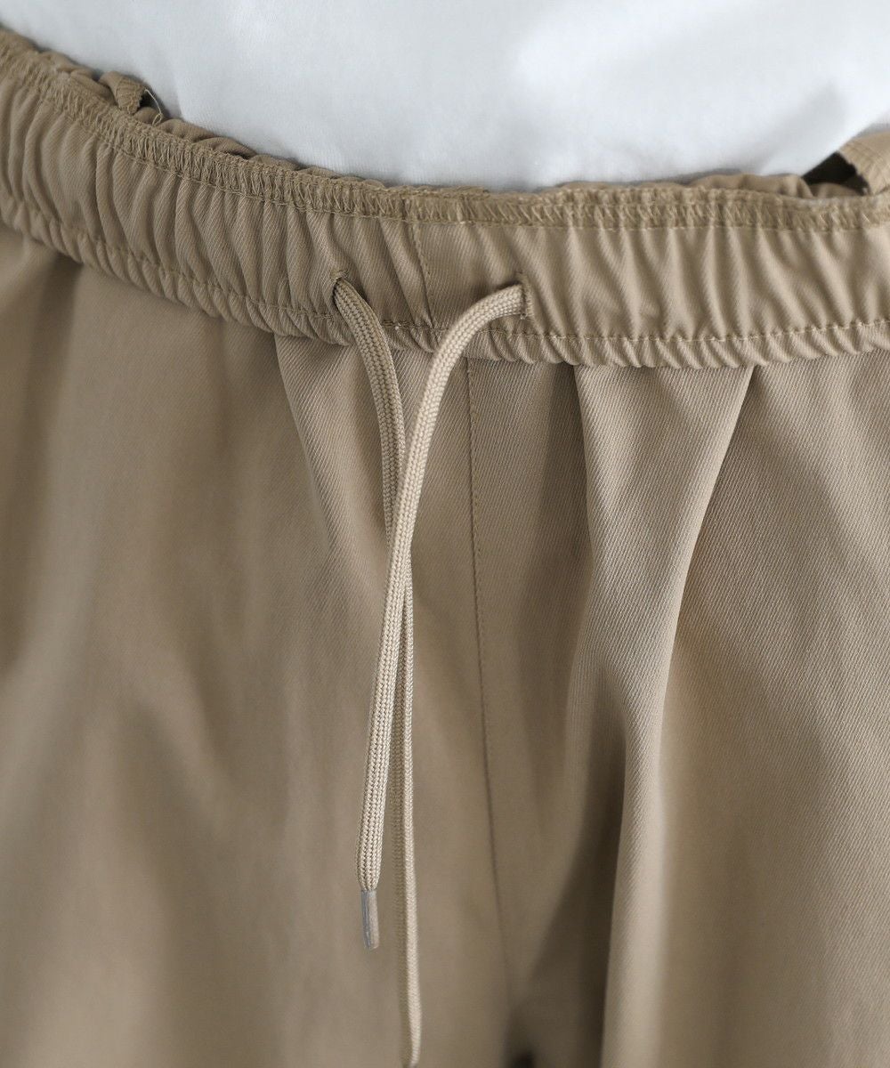 ウエストにはゴムと紐を配し、窮屈感のない楽な穿き心地。ポリエステル由来のさらっとしたタッチで、汗ばむ季節もご着用いただくことができ、ロングシーズン活躍する一本です。