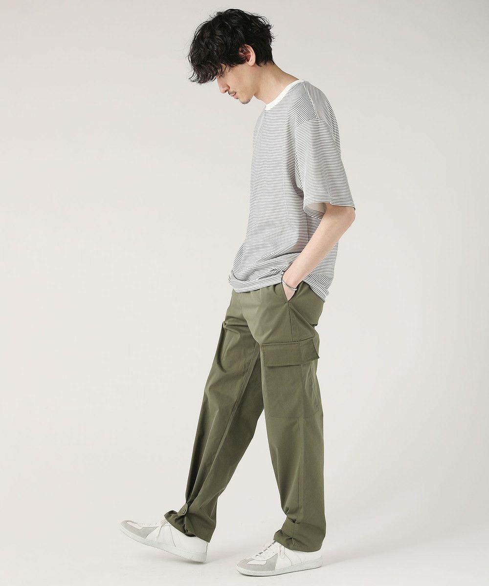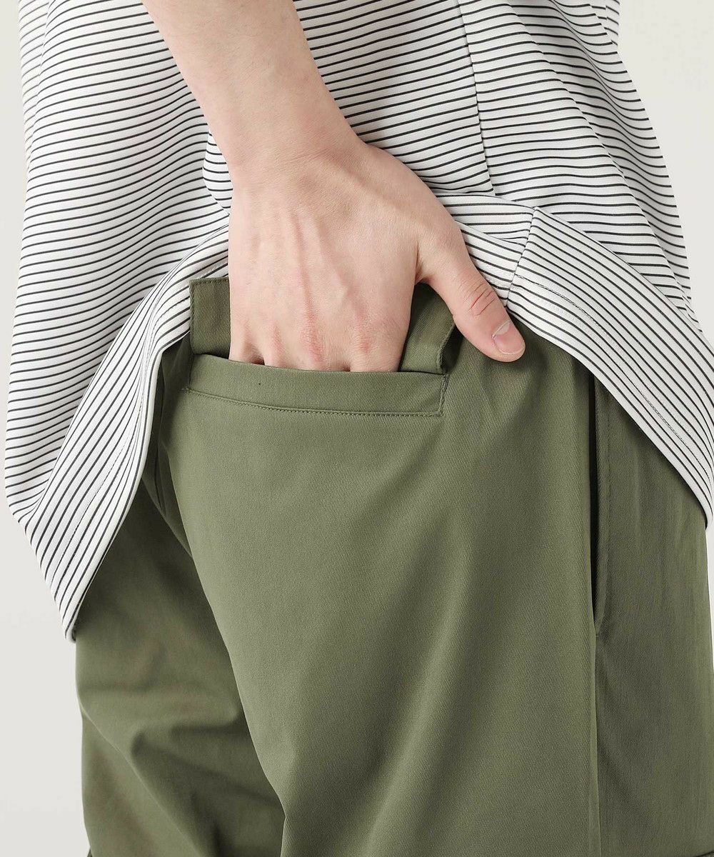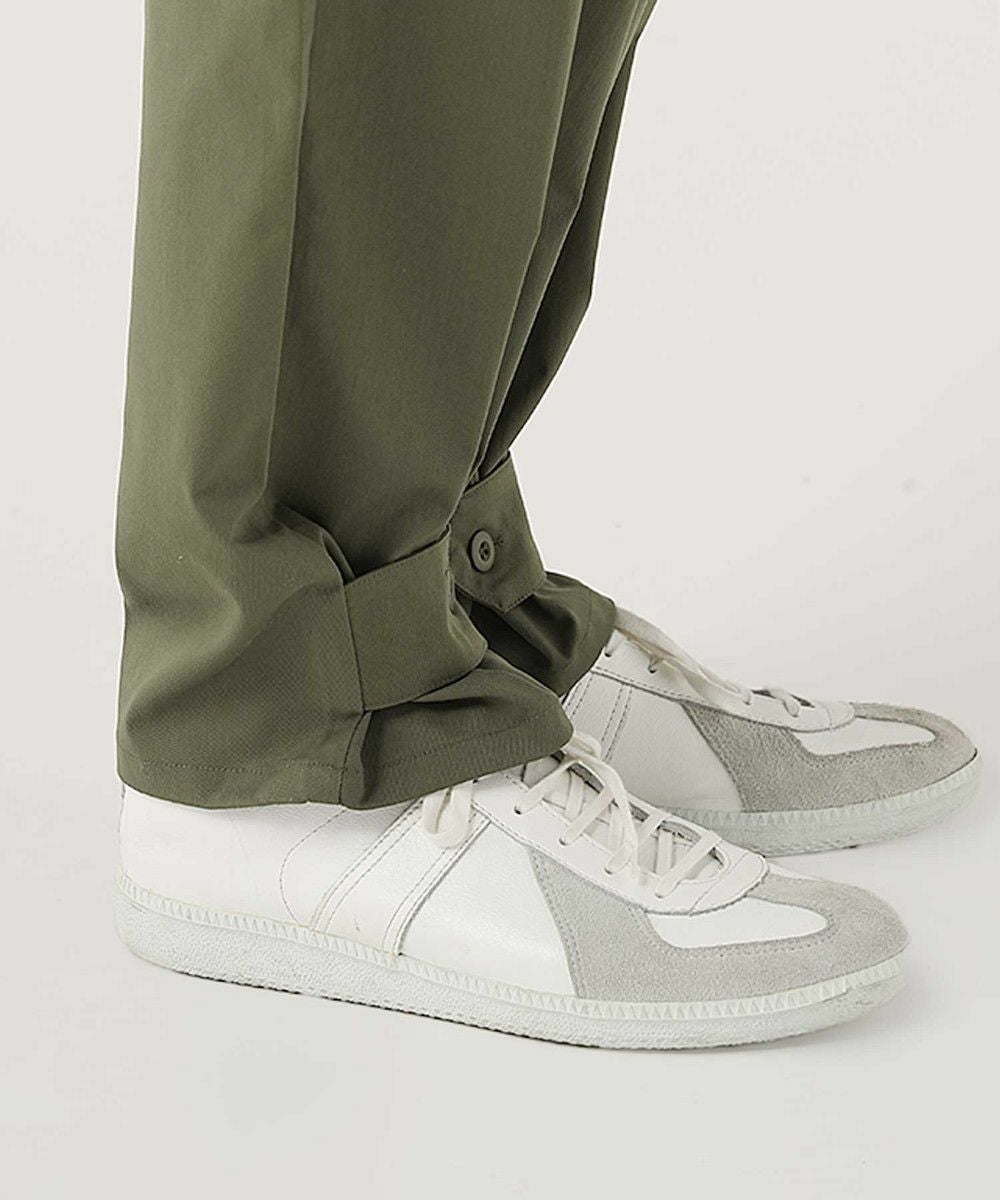 ウエストにはゴムと紐を配し、窮屈感のない楽な穿き心地。ポリエステル由来のさらっとしたタッチで、汗ばむ季節もご着用いただくことができ、ロングシーズン活躍する一本です。