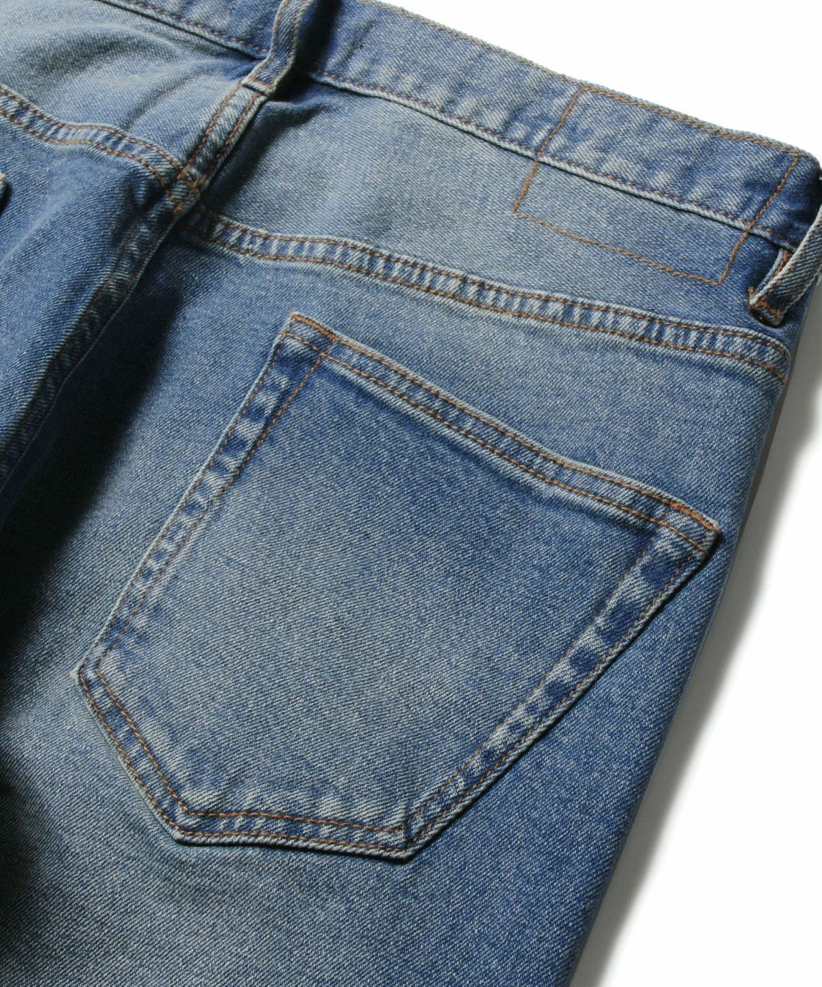 肌触りの良い綿とストレッチ性に優れたポリウレタンを混紡した生地です。ストレッチ性が高い素材のため、膝の屈伸時も突っ張ることなく快適に過ごせます。また、洗い込むとより表情豊かな色落ちが楽しめます。