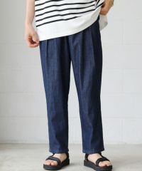 スタイルに左右されることなく穿くことができるゆったりシルエットのパンツ。シェフが厨房で着用していたワークパンツをベースにデザインしています。動きやすいようにシルエットにはしっかりとゆとりを持たせていますが、ウエスト部分をゴムと調節用の紐を入れたイージー仕様にしているためずり落ちてくる心配はありません。『痩せ型な人も筋肉質な人も穿けるボトムス』。体型問わず、幅広い方々に穿いていただけるように作られた一本です。
