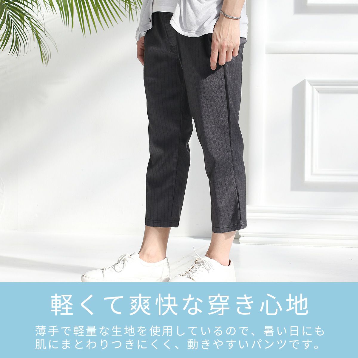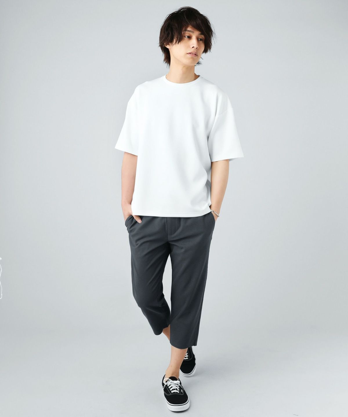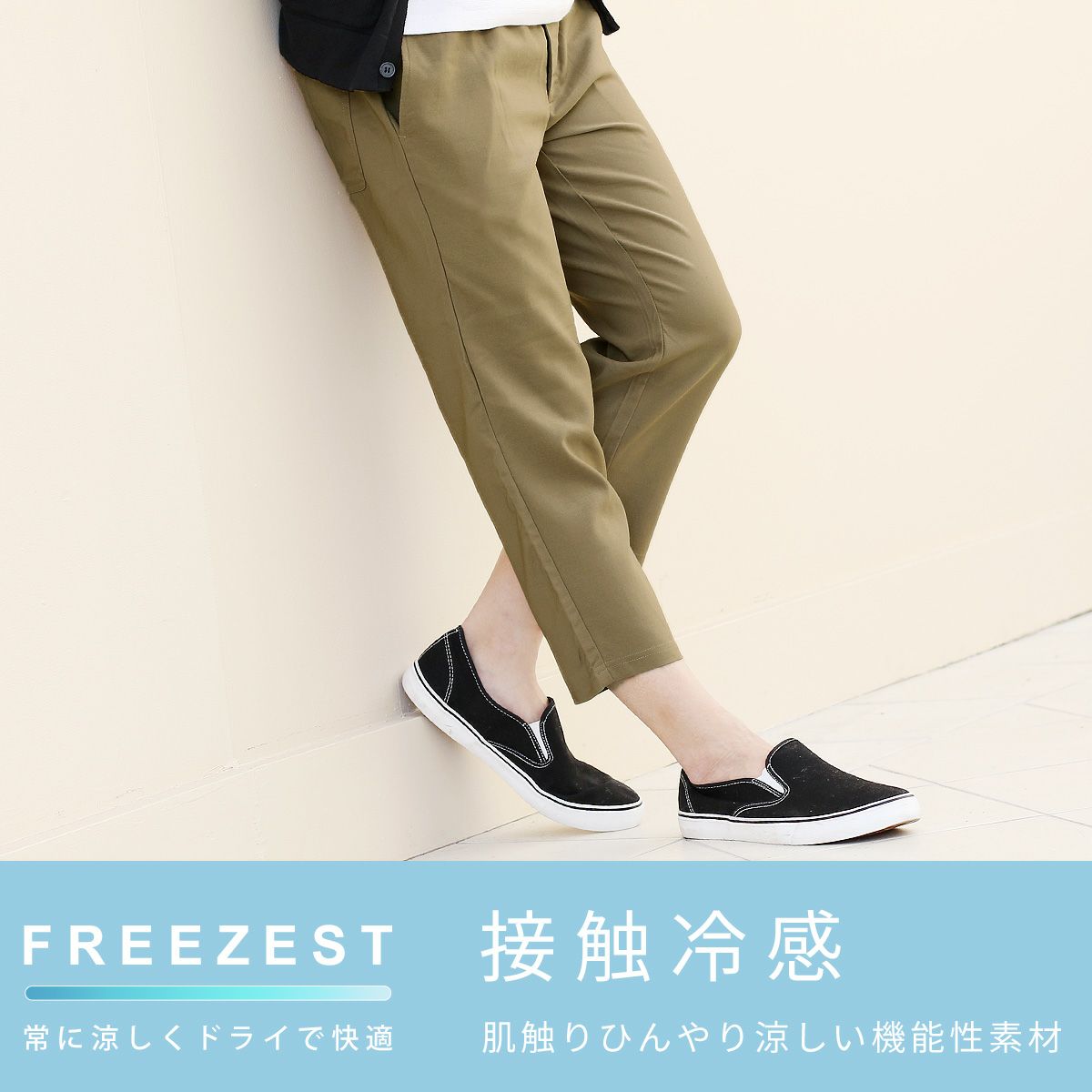 汗をかくような真夏も涼しく快適に穿けるキレイめパンツが登場。 ひんやりと涼しい肌触りに仕上げた接触冷感素材の生地で蒸し返すような真夏の暑さからくるストレスを軽減してくれる一本です。ウエストはゴムと紐付きのデザインになっており、締め付けが少なくリラックスした穿き心地です。