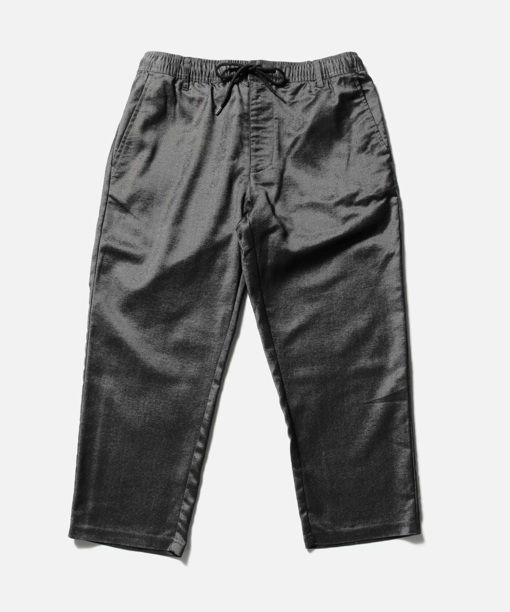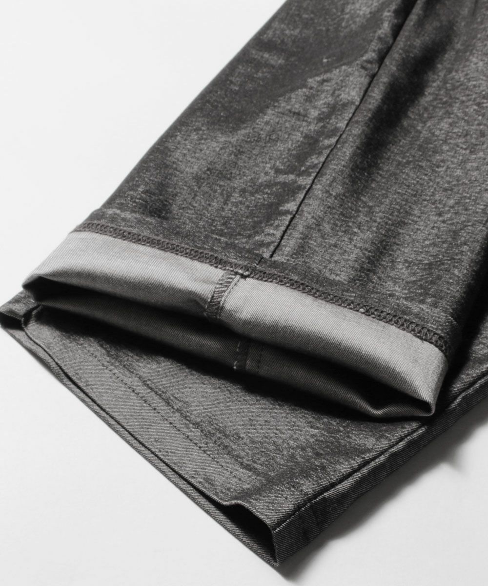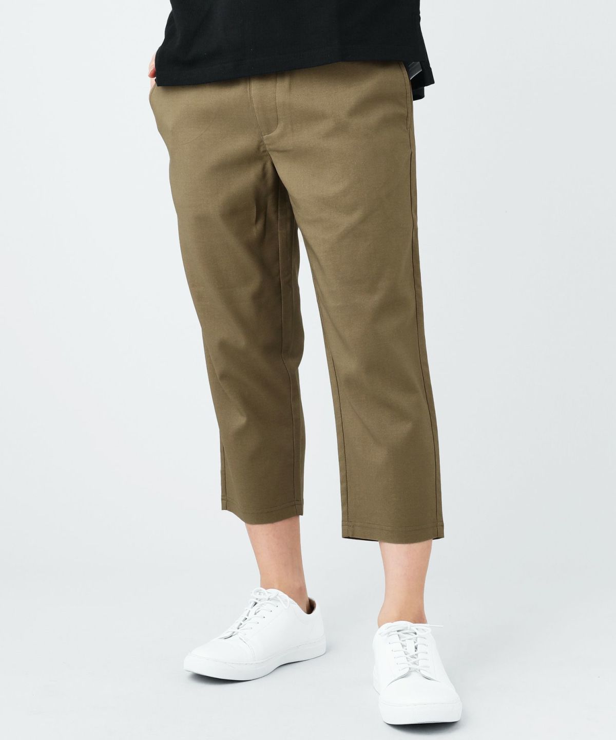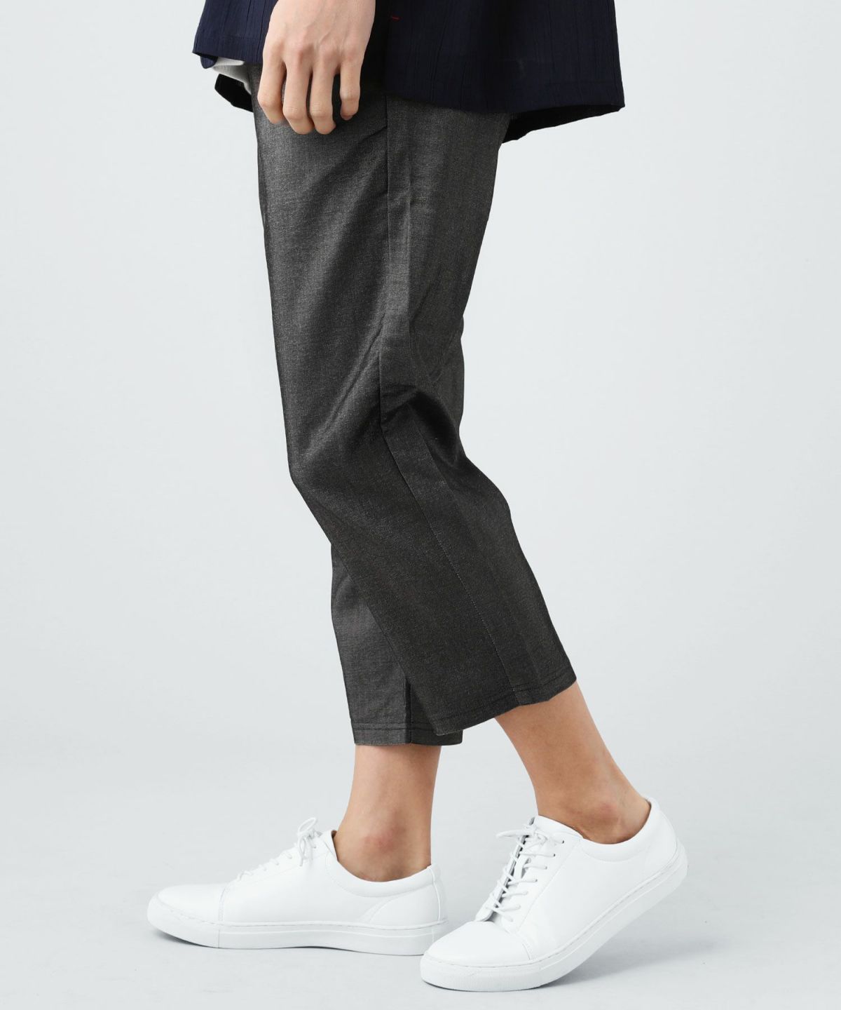 高いストレッチ性を持った生地です。足を曲げても窮屈さを感じず、ストレスのない快適な穿き心地です。また、裾に向かって細くなるテーパードシルエットを採用。美脚を生み出す上品なアイテムです。
