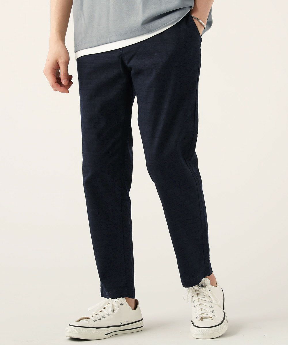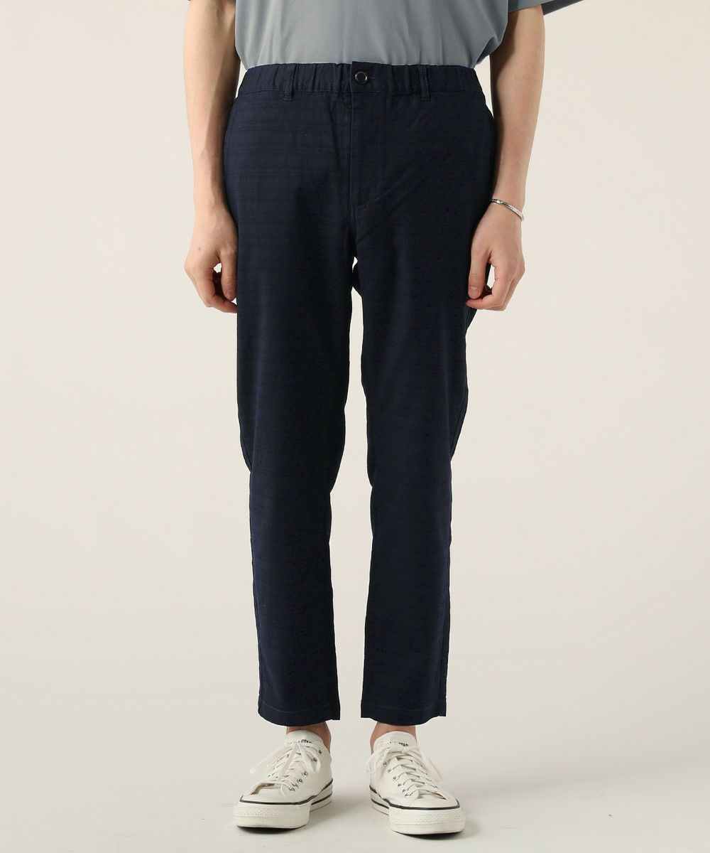 裾に向かって細くなる上品なテーパードシルエットで、くるぶしを見せるアンクル丈が爽やかさを醸します。気兼ねなくラフに穿くことができながらも、見た目はちゃんとキレイめに見せられるトラウザーになっております。