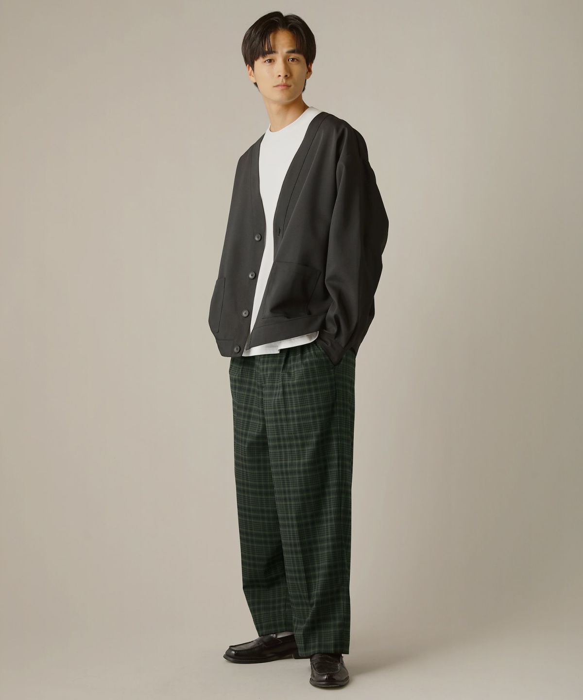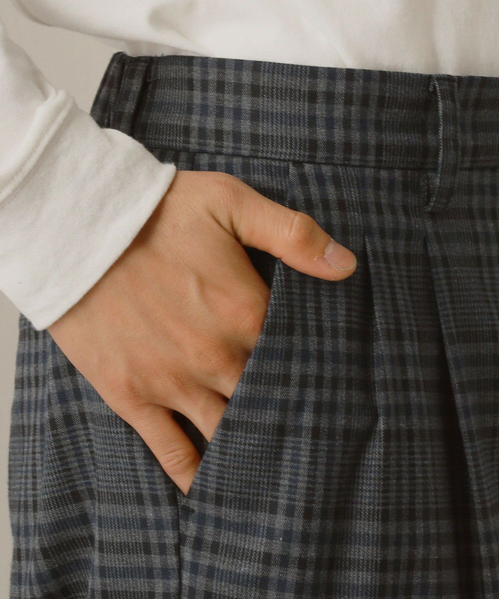 T/Rサージクラシックチェックワイドテーパードスラックス