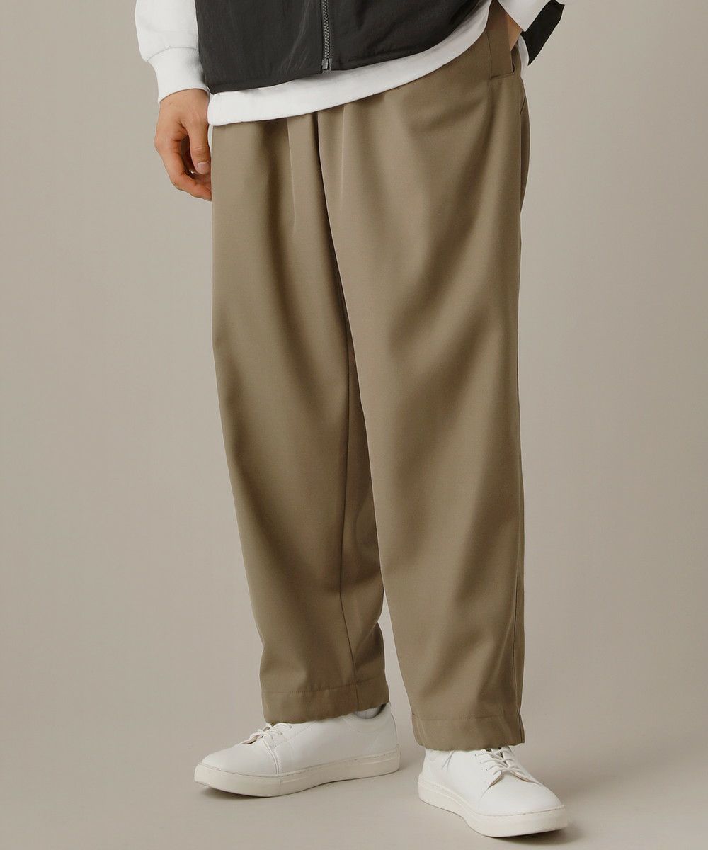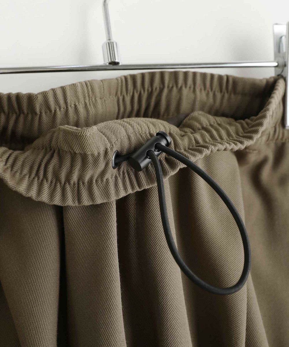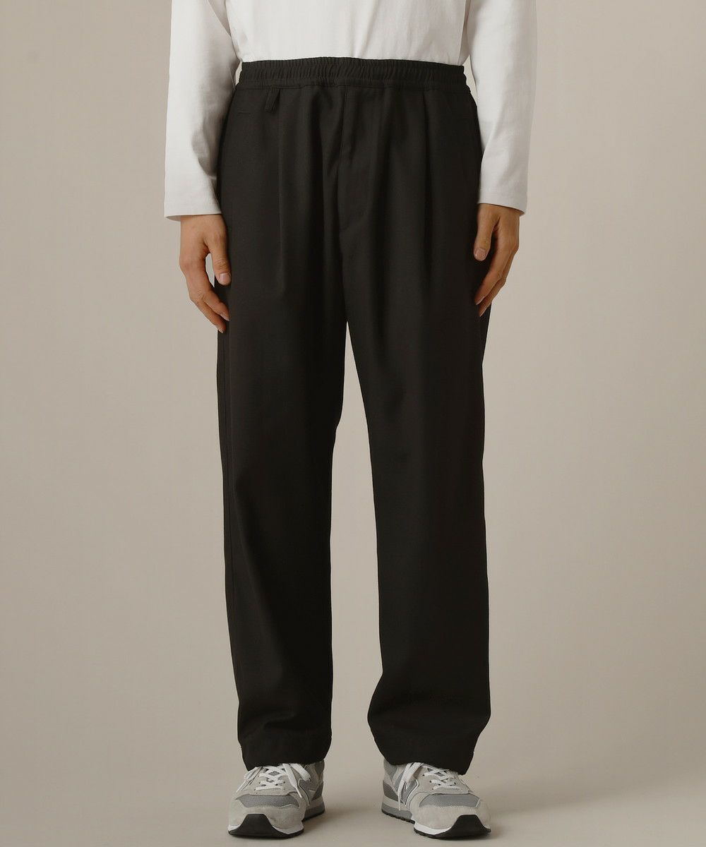 腰回りに深めのワンタックを入れて作り出したリラックス感のあるゆったりとしたシルエット。ウエストにはゴムが入ったイージーパンツ仕様なので、窮屈感のないラクな穿き心地です。裾にはドローコードが付いており、絞り具合で様々なシルエットをお楽しみいただけます。
