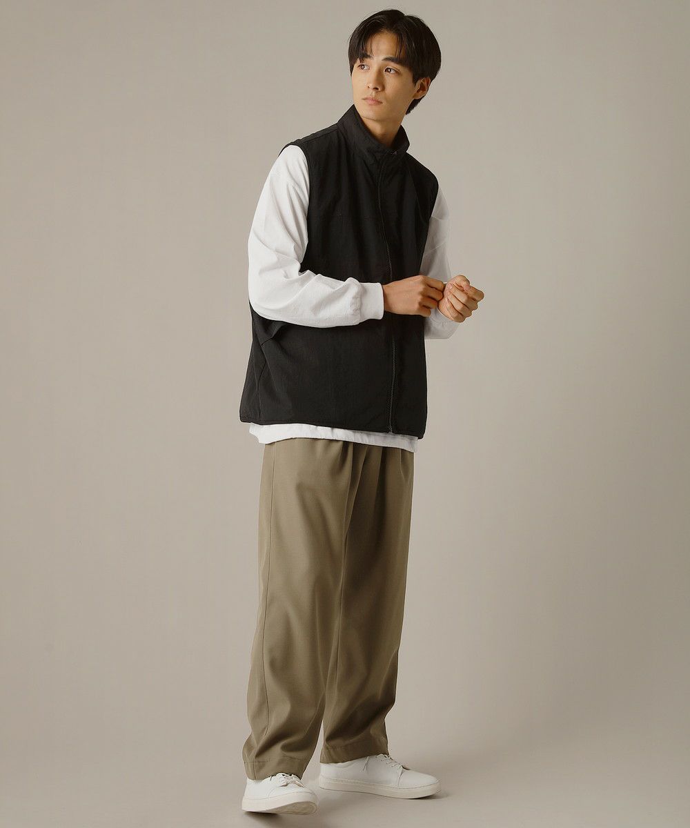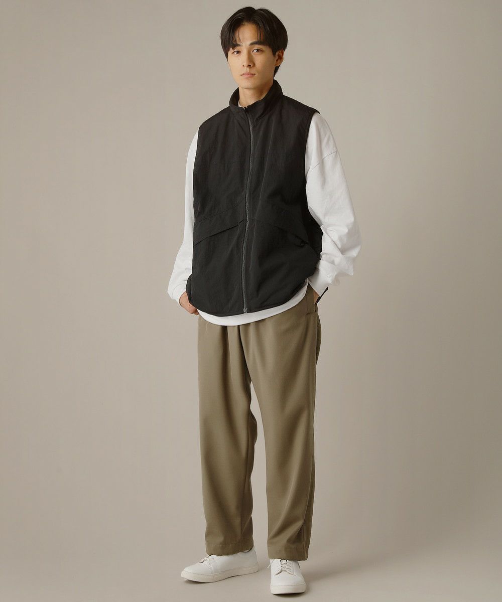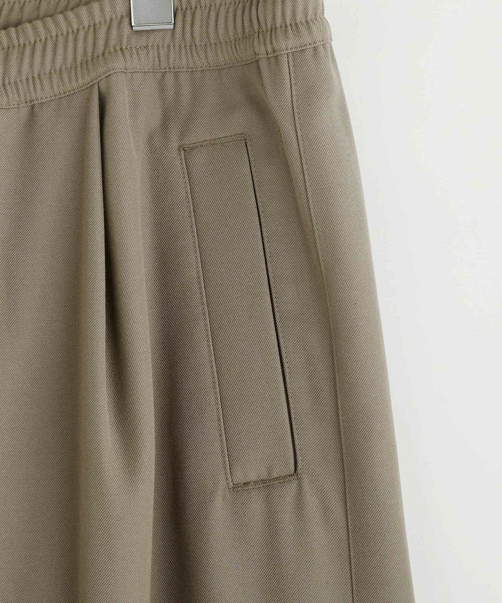 腰回りに深めのワンタックを入れて作り出したリラックス感のあるゆったりとしたシルエット。ウエストにはゴムが入ったイージーパンツ仕様なので、窮屈感のないラクな穿き心地です。裾にはドローコードが付いており、絞り具合で様々なシルエットをお楽しみいただけます。