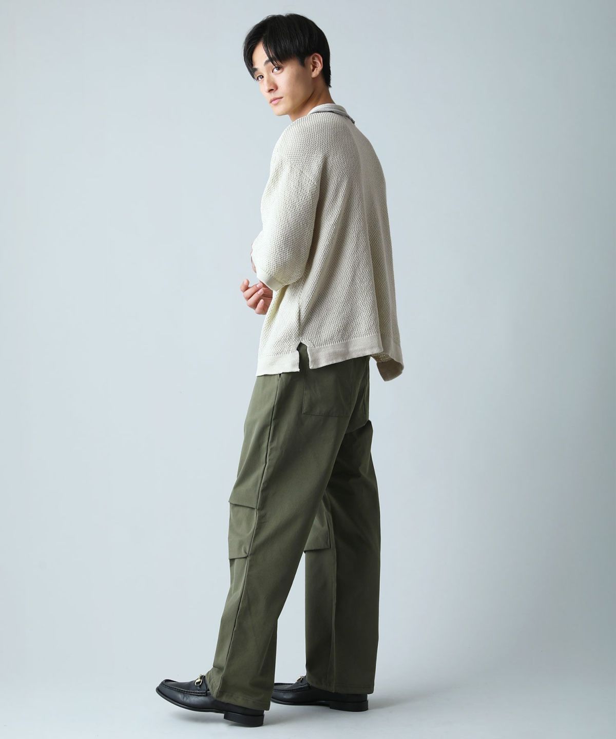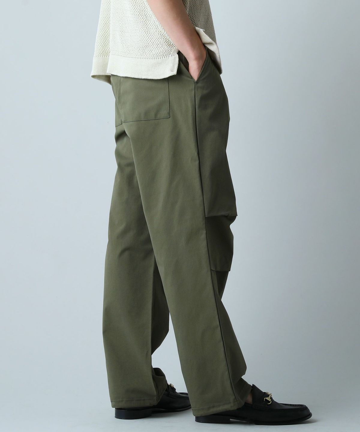ミリタリーのオーバーパンツをモチーフにした上品なコーデにも馴染むパンツ。