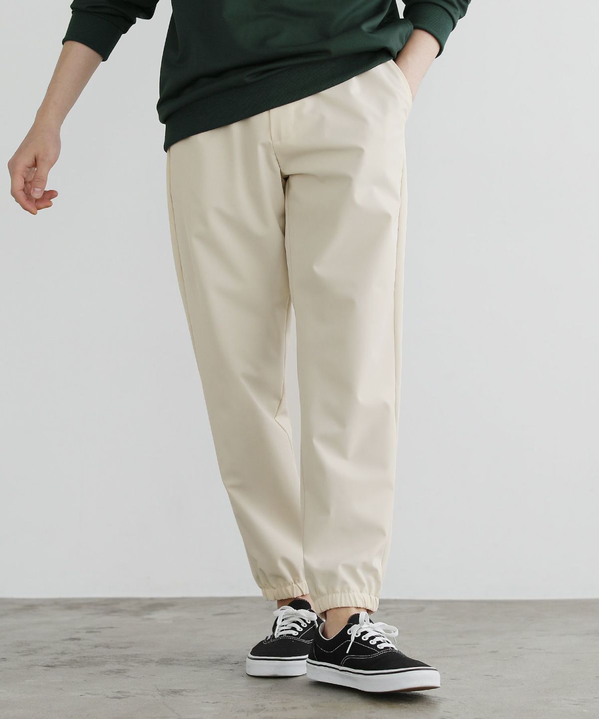 カジュアルながらも上品なスタイルを叶えてくれるジョガーパンツ。太すぎず細すぎないラインが足元をすっきり見せてくれます。また、4方向に効いた抜群の伸縮性を持つ生地を用いることで、毎日でも着回したくなるような快適な穿き心地を実現しました。生地には撥水加工を施しているため、天候に左右されずにアクティブなシーンでも活躍。機能性とファッション性を兼ね備えたおすすめの一着です。