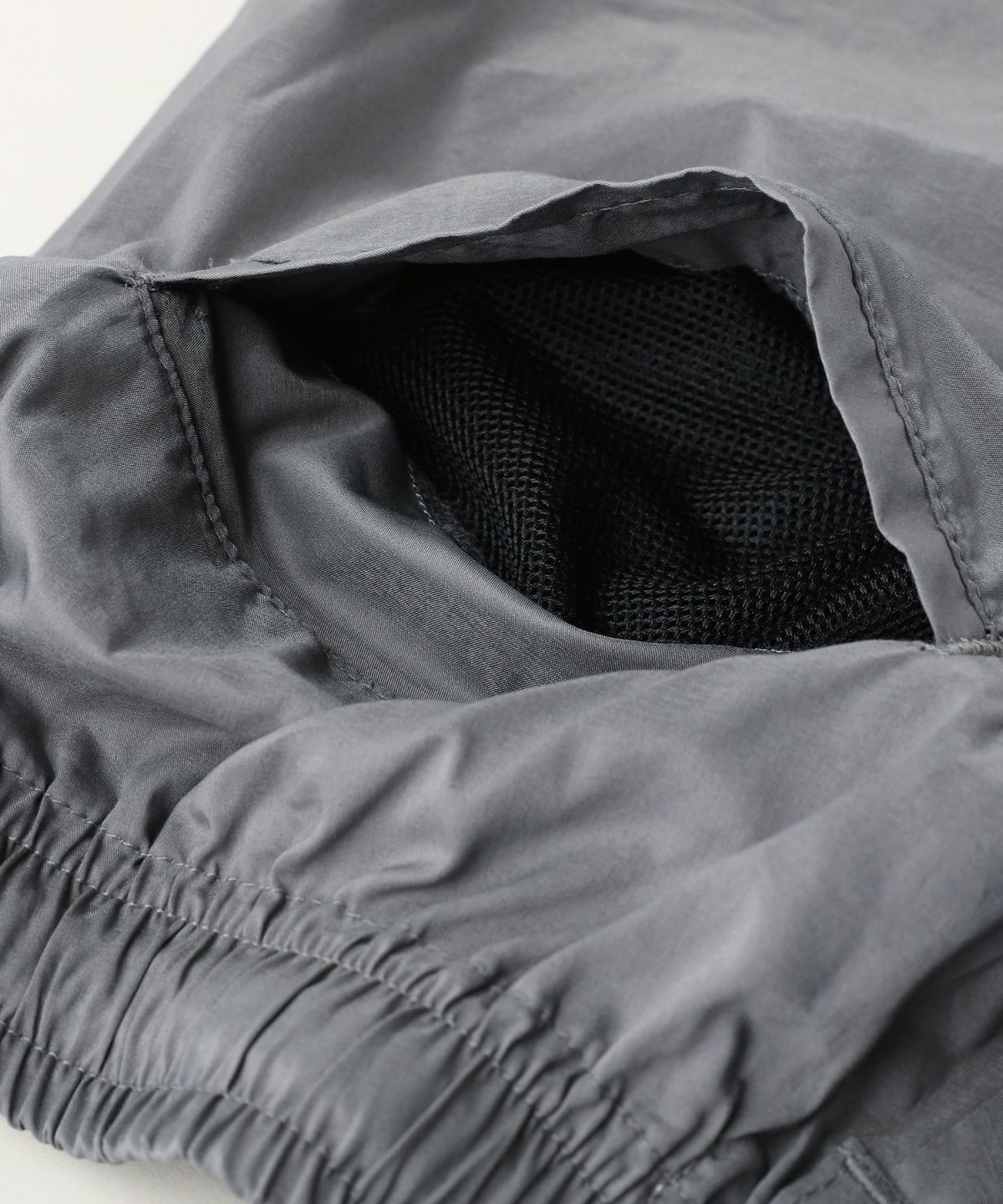 ふわっと宙に浮くほどのエアリーな生地を用いました。その結果なんとLサイズでわずか176gという驚きの軽さを実現。リンゴ1個が平均300g前後と考えると、このパンツの軽さは圧倒的なものです。ストレスのない穿き心地のために軽量であることは重要ですが、そのせいですぐにヘタれてしまっては元も子もありません。ただ軽いだけではなく、長い間ご愛用いただけるような丈夫さも求めてポリエステル混紡の生地を選定しました。耐久性の高いウォッシャブル仕様の生地なので日常的に気軽にお洗濯ができます。さらに速乾性にも長けているのでお洗濯後の乾きは早く、着用時もべたつかずに爽やかな着心地が続いてくれるという優れもの。そのうえ、肌に触れるとひんやりと感じられる接触冷感機能も併せ持っています。あらゆる面でストレスを感じさせない、デイリーユースに適した生地です。