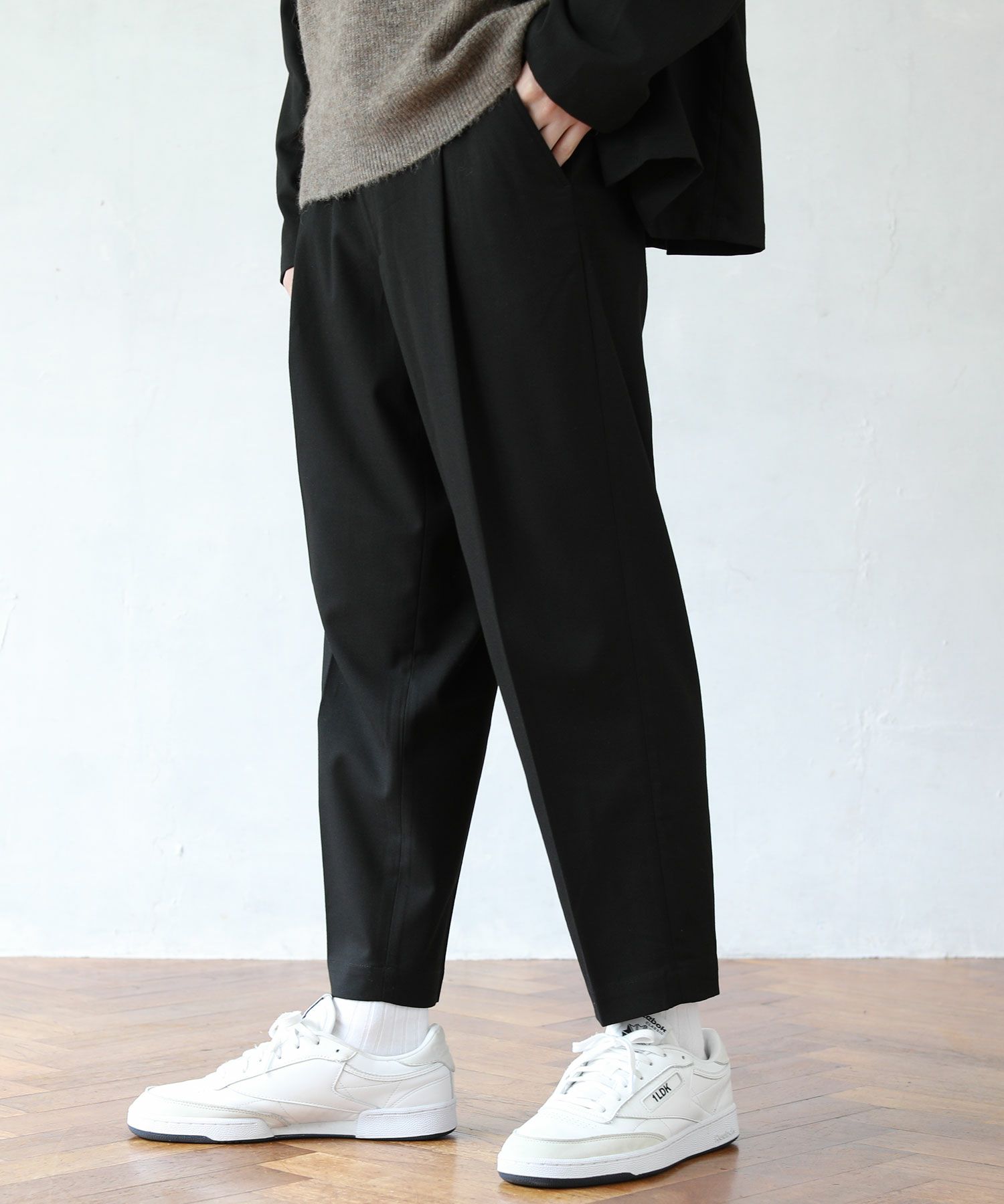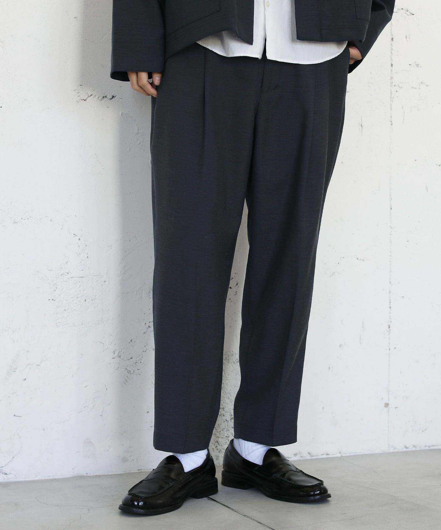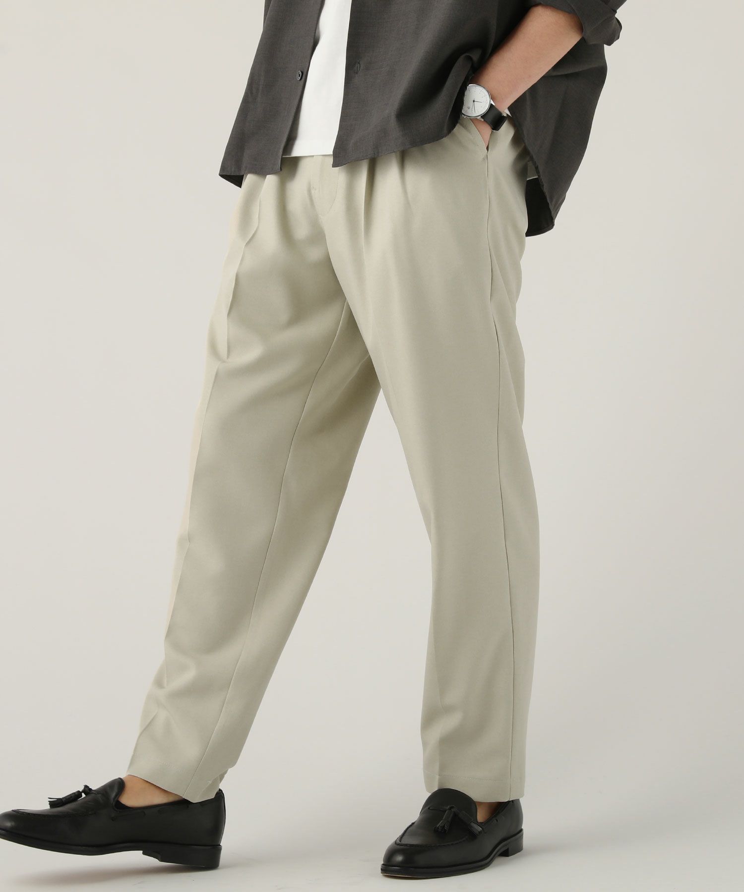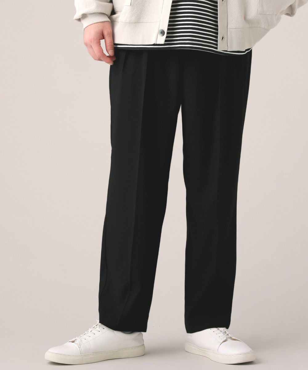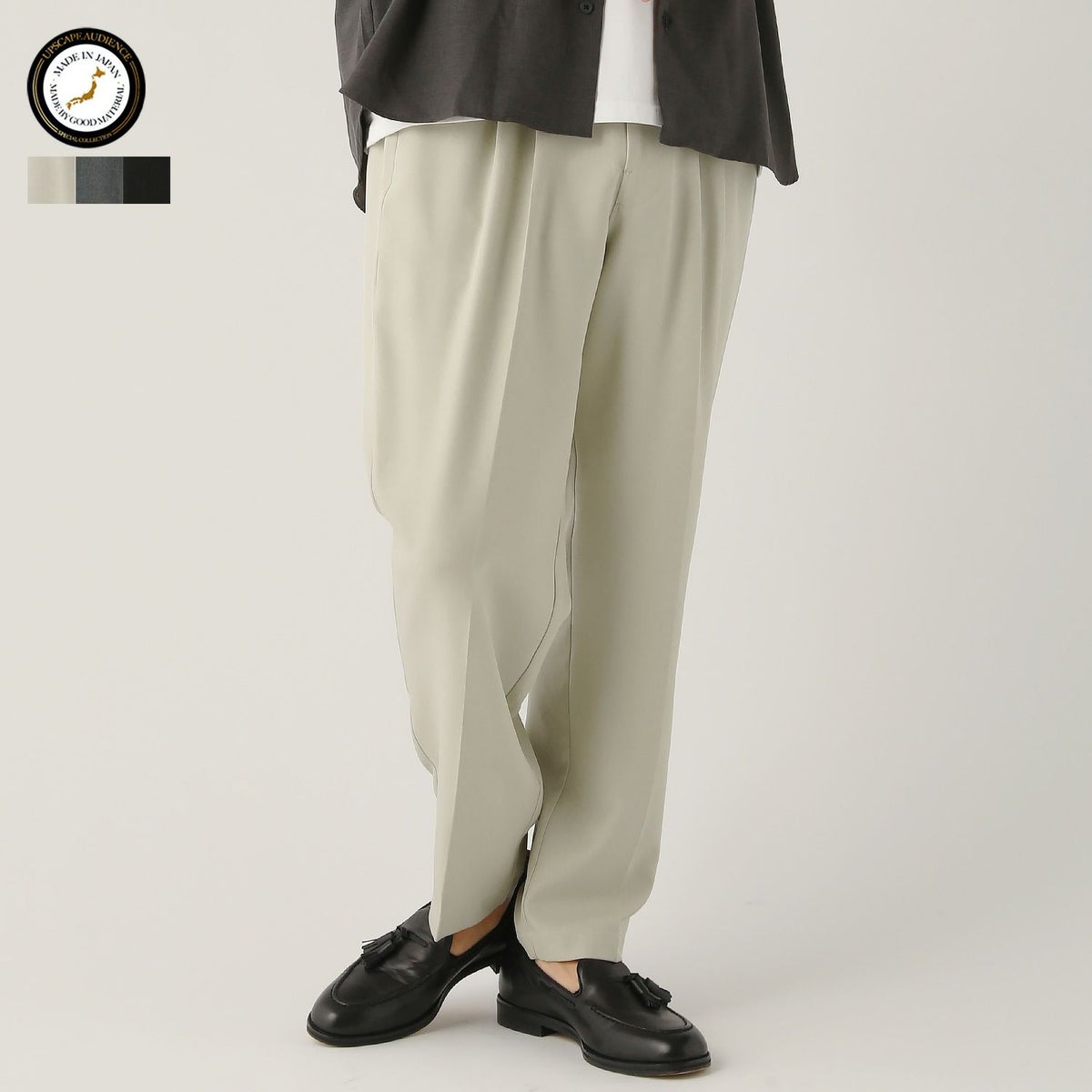 他の画像を見る Upscape Audience 日本製LANATEC(ラナテック)LEI(レイ)ポリエステルウールライクカルゼ2タック イージー テーパードパンツ 通常販売価格 ¥ 14,300 のところ ¥ 8,580 税込 カートに入れる お気に入りに登録する
