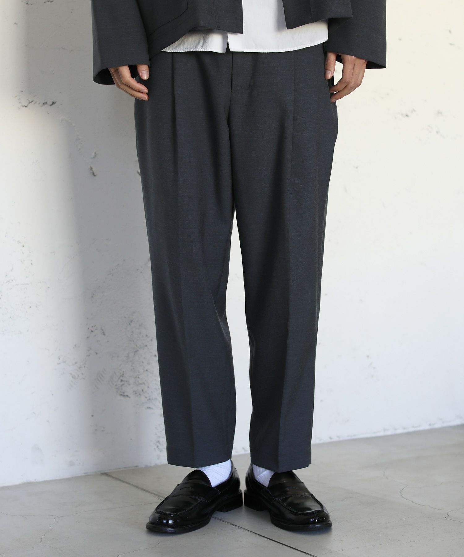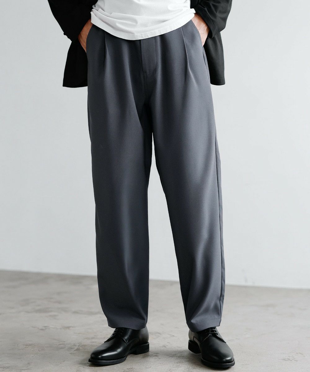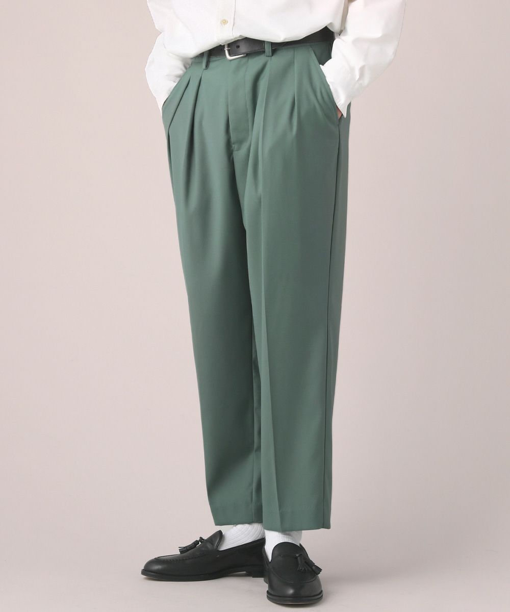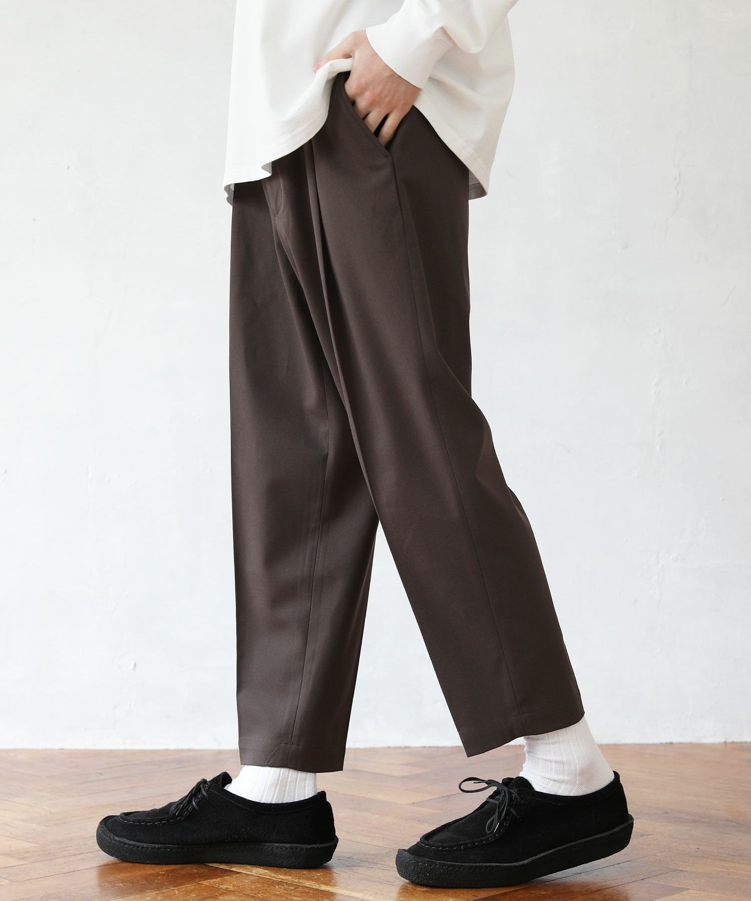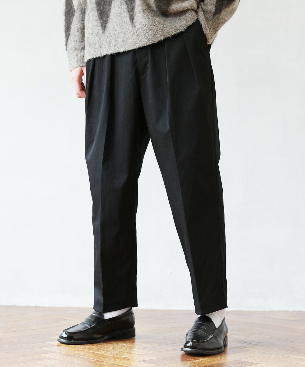 他の画像を見る Upscape Audience 日本製LANATEC(ラナテック)LEI(レイ)ポリエステルウールライクカルゼ2タック イージー テーパードパンツ 通常販売価格 ¥ 14,300 のところ ¥ 8,580 税込 カートに入れる お気に入りに登録する