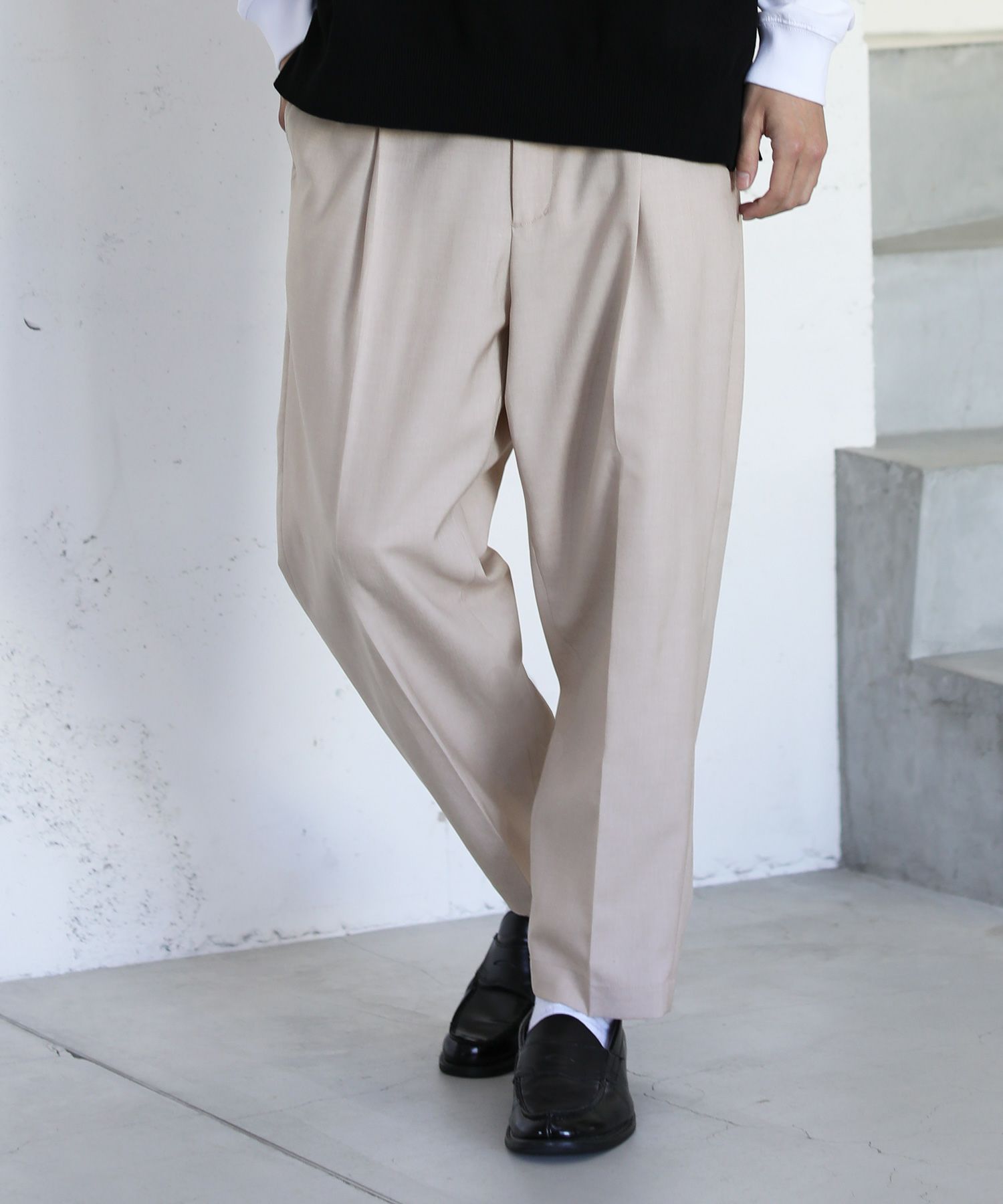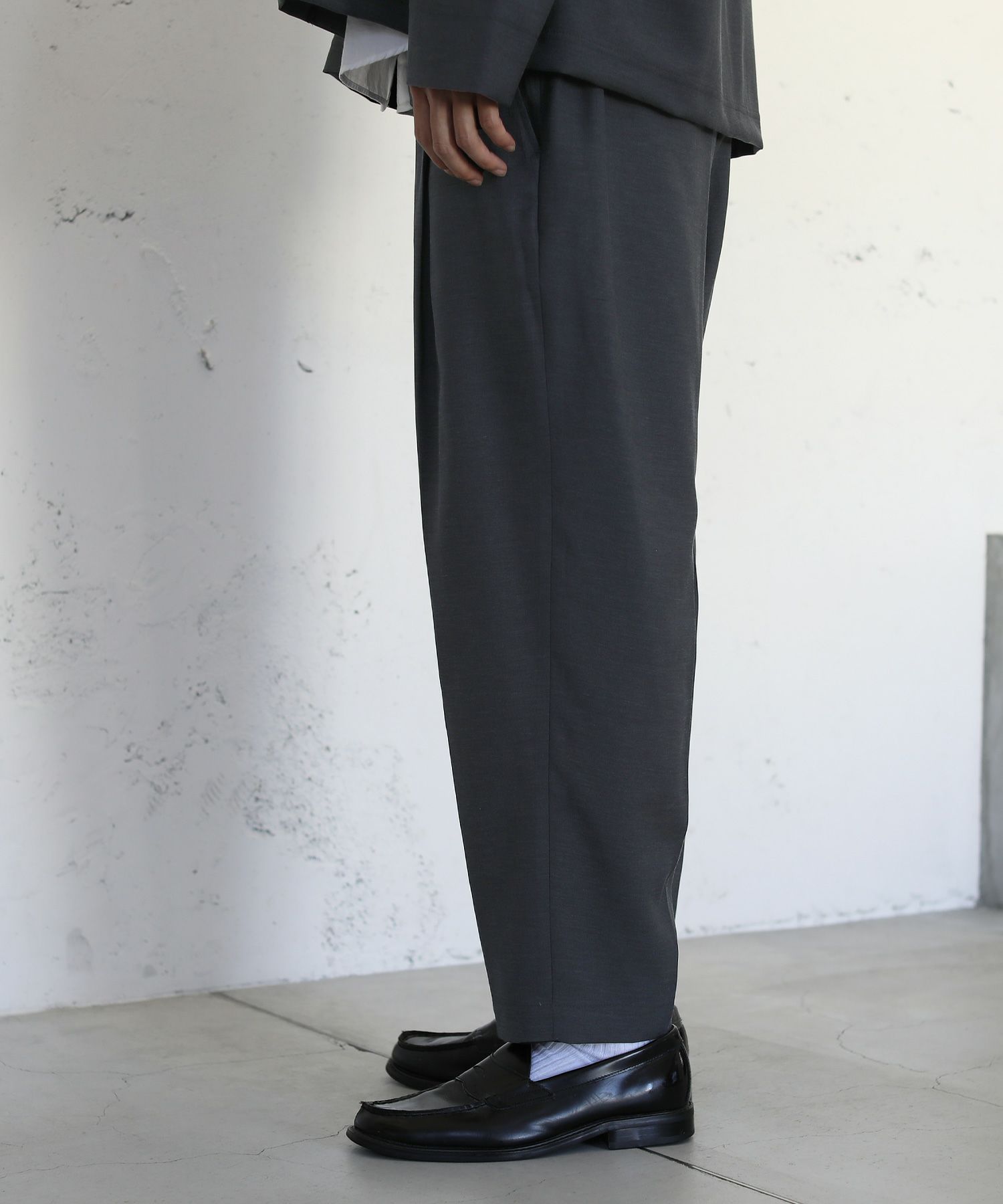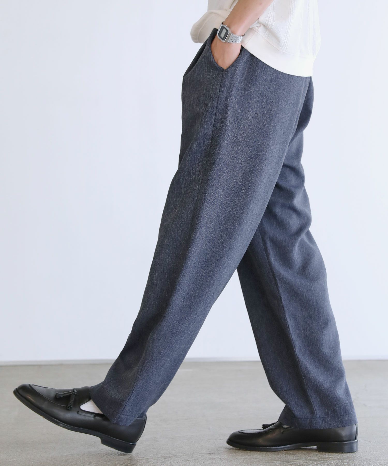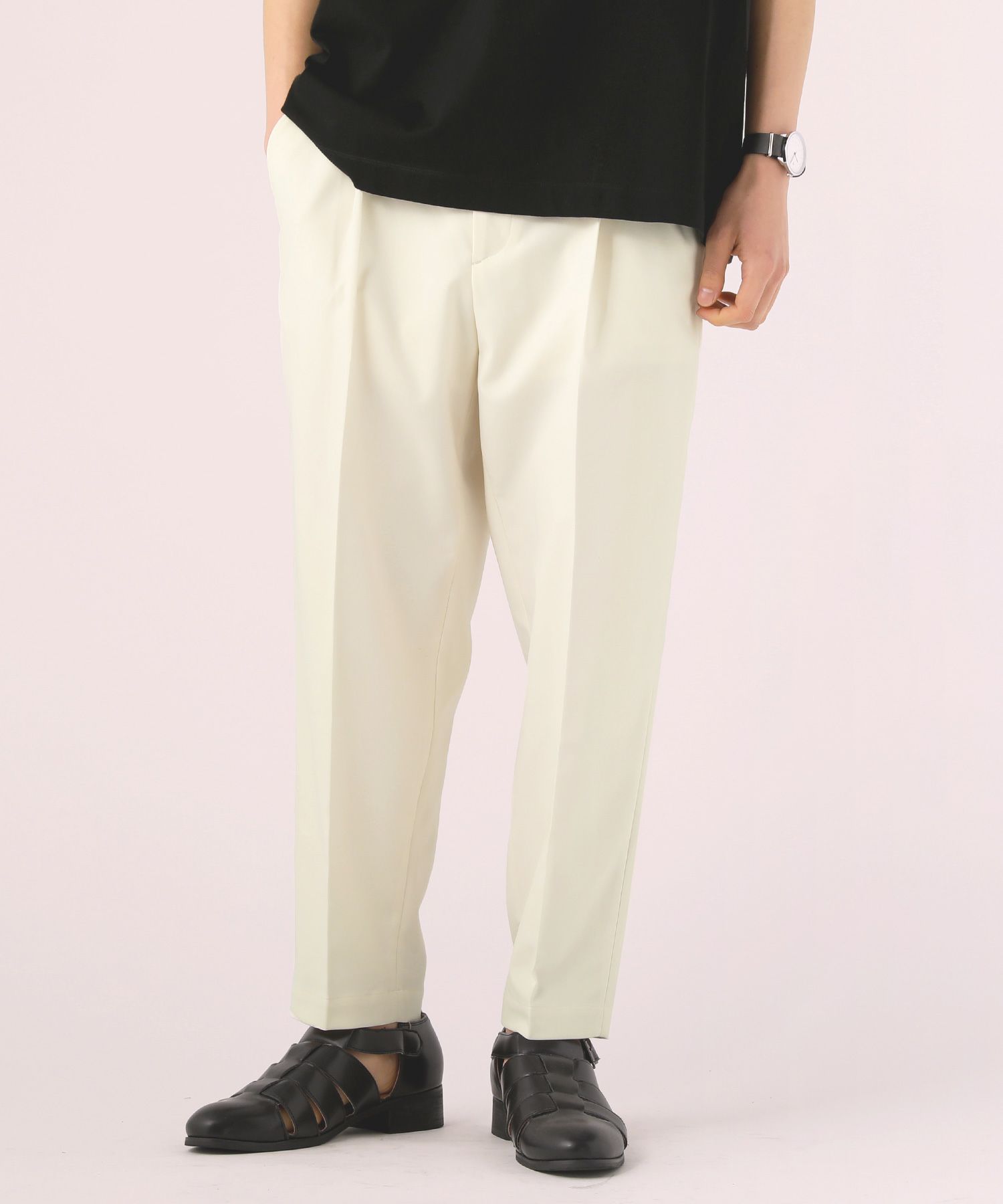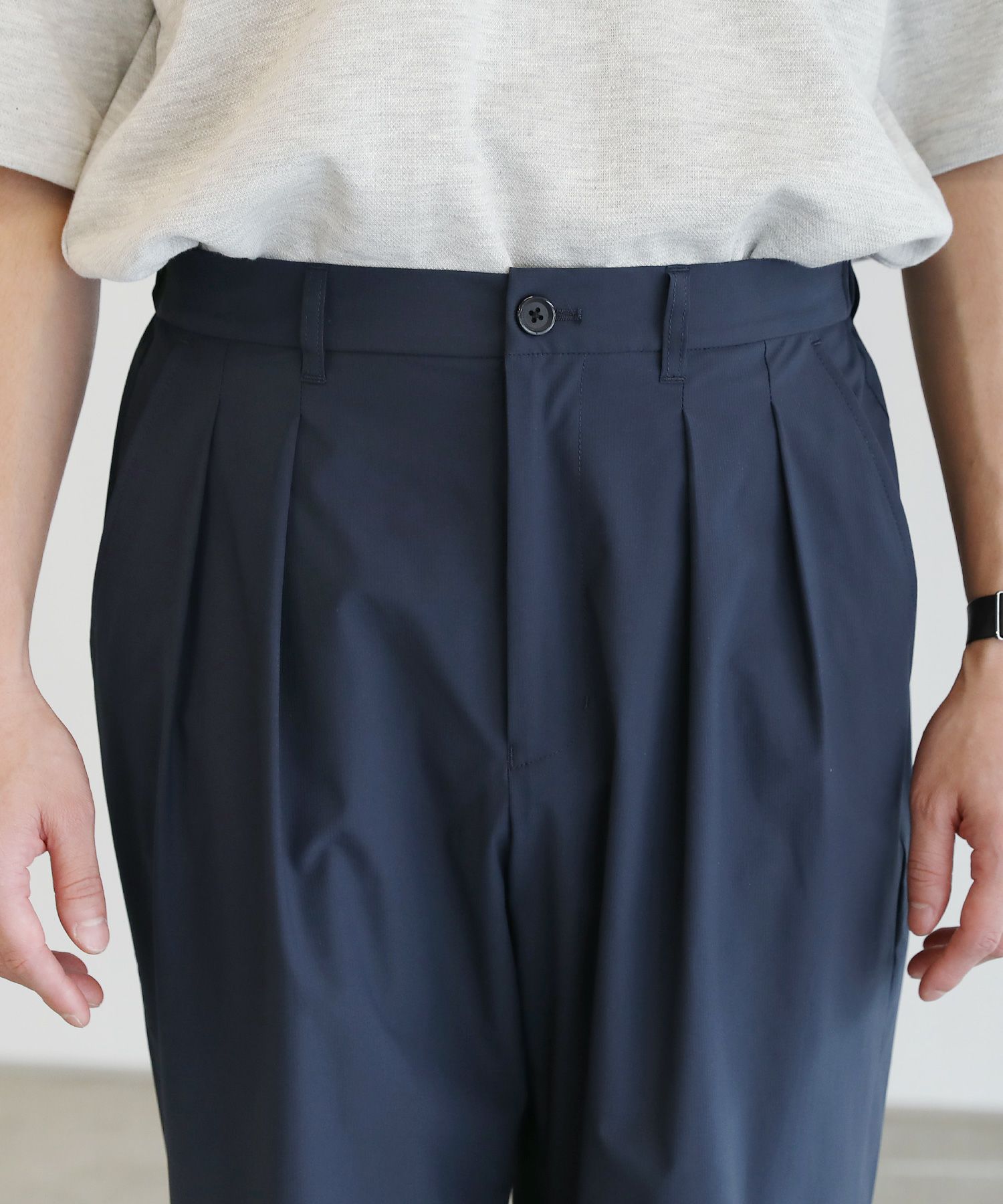 他の画像を見る Upscape Audience 日本製LANATEC(ラナテック)LEI(レイ)ポリエステルウールライクカルゼ2タック イージー テーパードパンツ 通常販売価格 ¥ 14,300 のところ ¥ 8,580 税込 カートに入れる お気に入りに登録する
