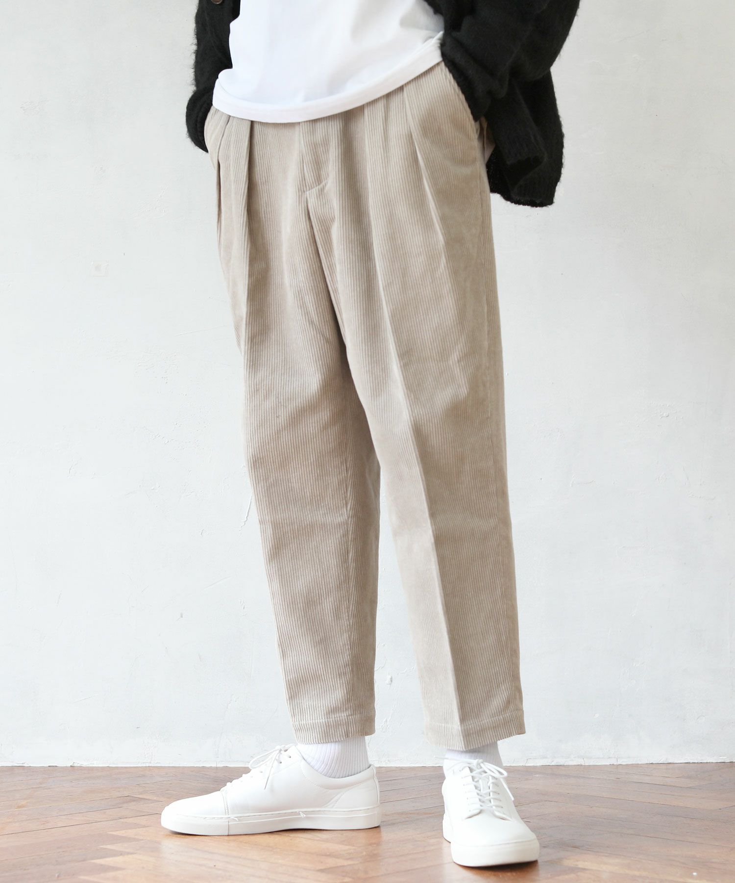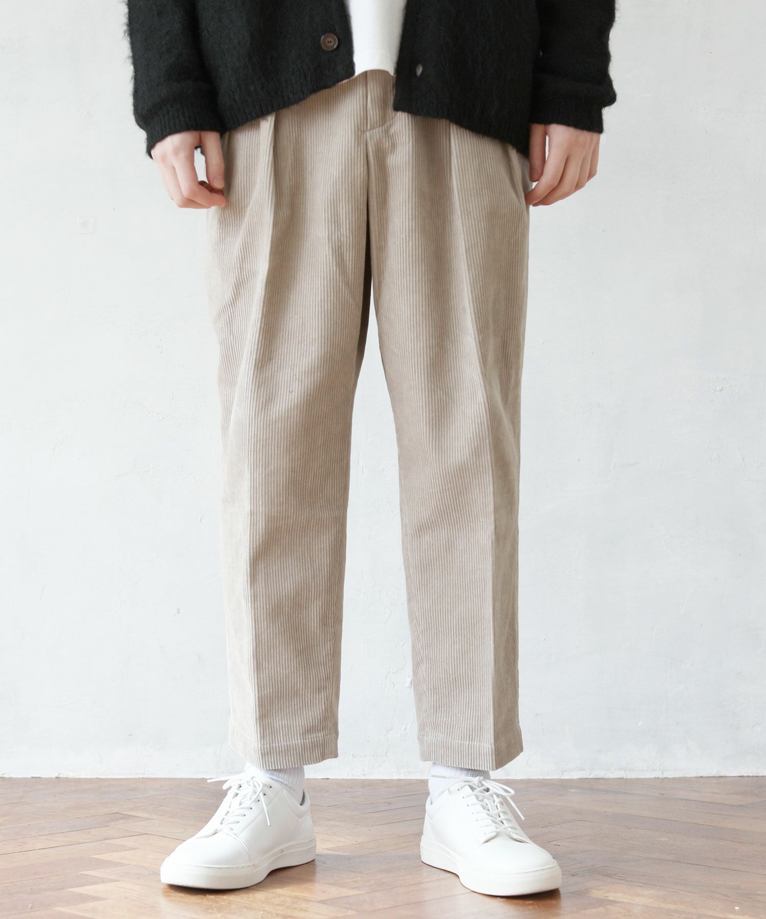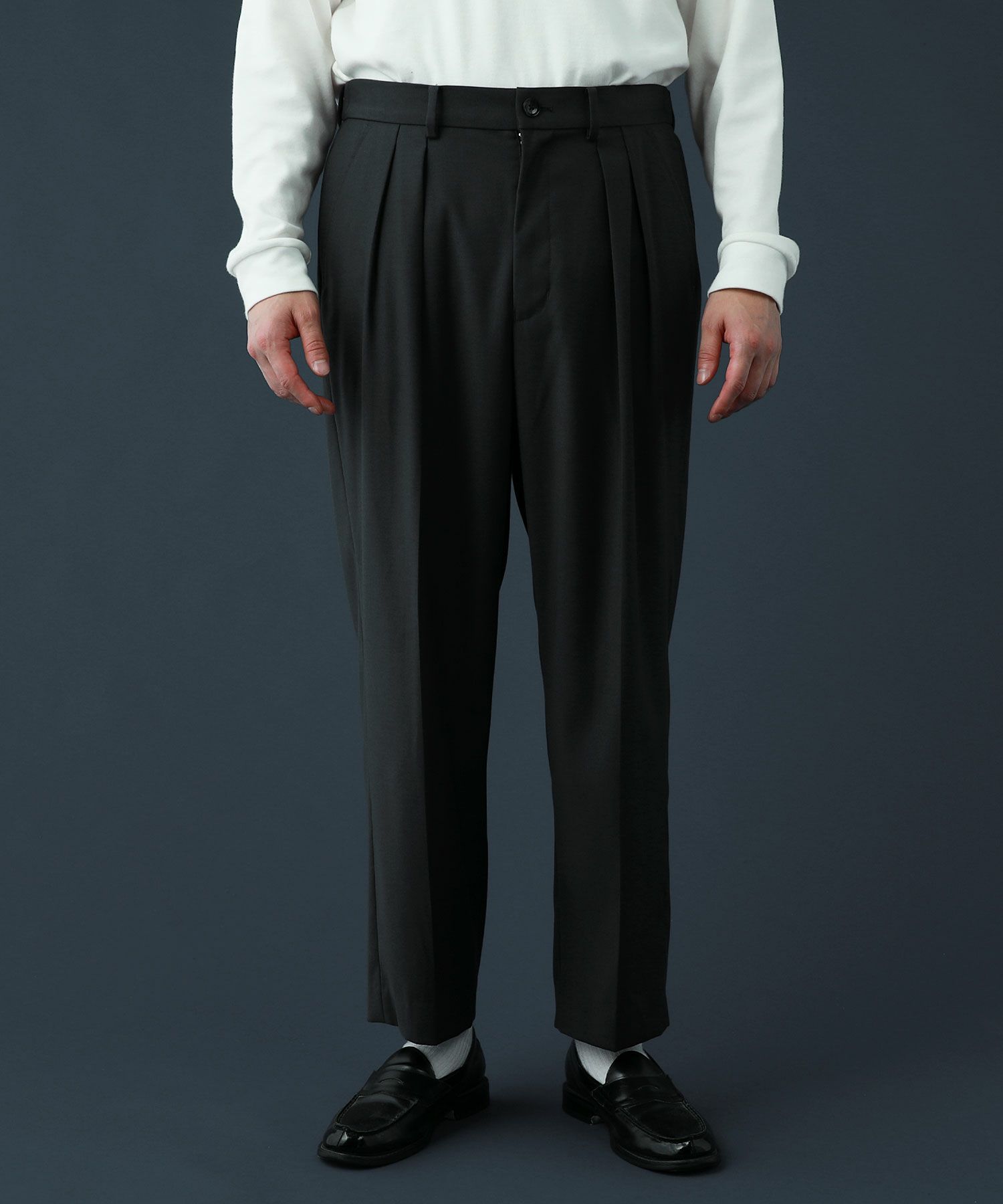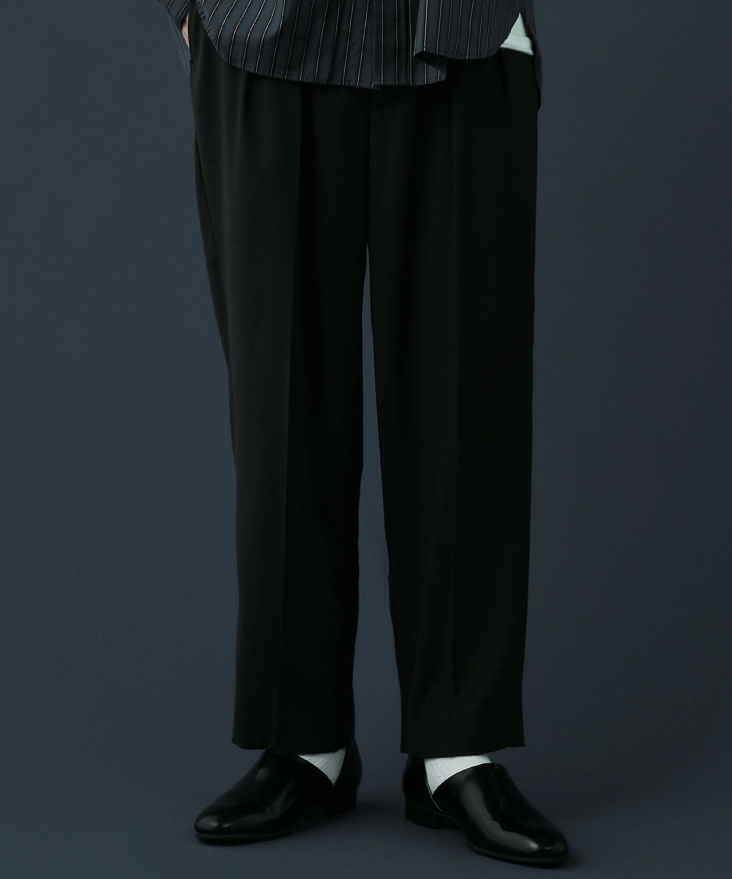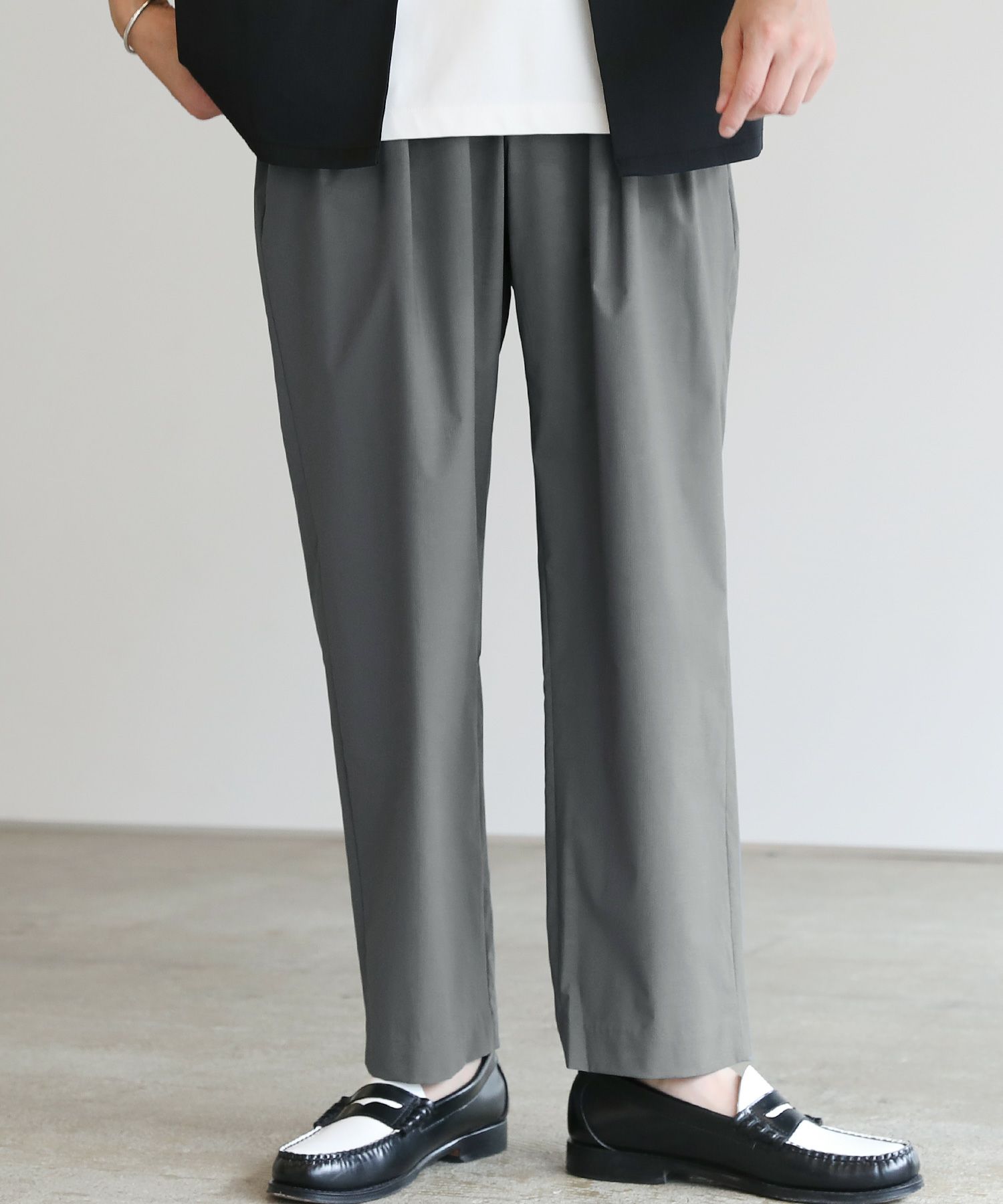 他の画像を見る Upscape Audience 日本製LANATEC(ラナテック)LEI(レイ)ポリエステルウールライクカルゼ2タック イージー テーパードパンツ 通常販売価格 ¥ 14,300 のところ ¥ 8,580 税込 カートに入れる お気に入りに登録する