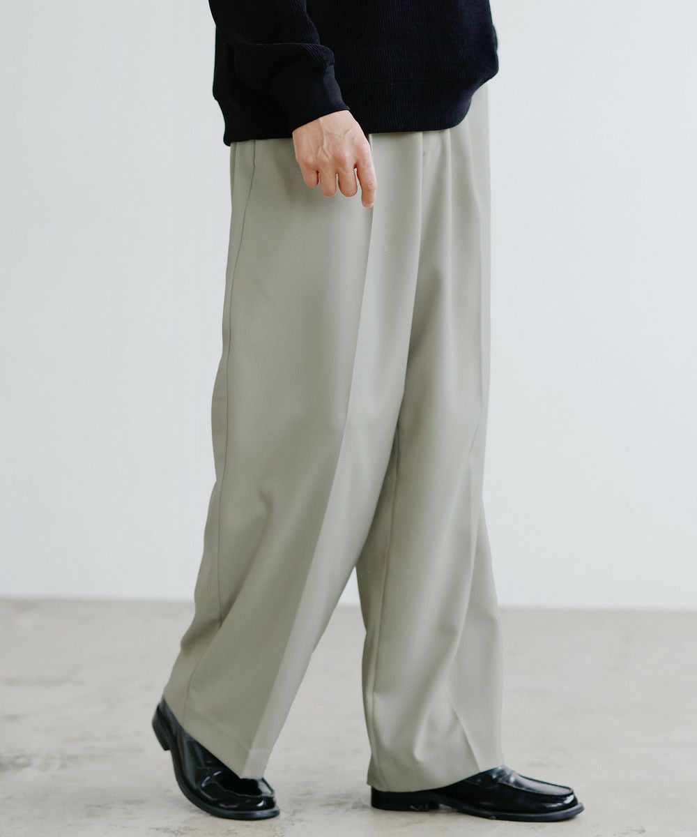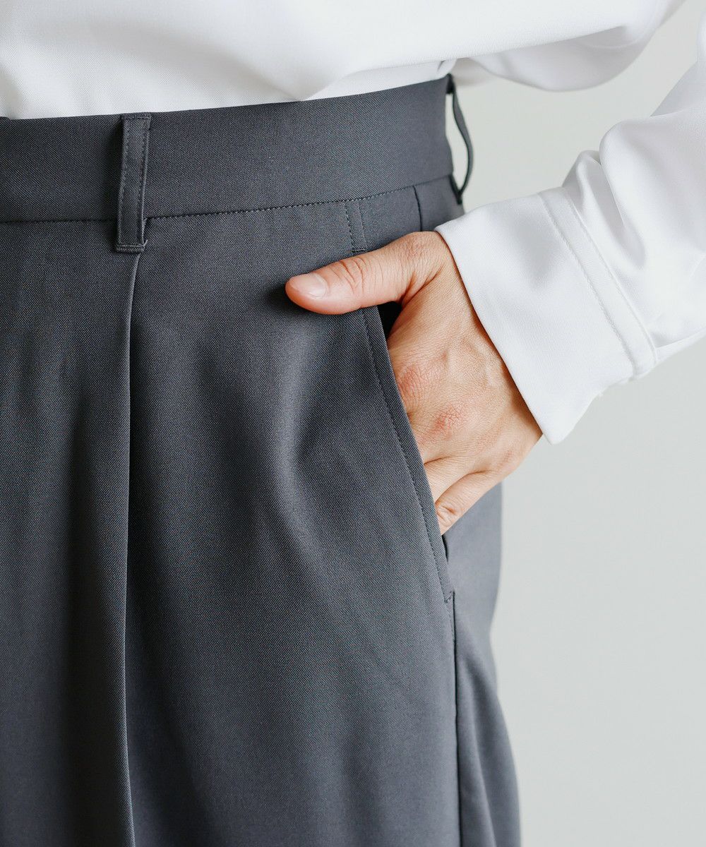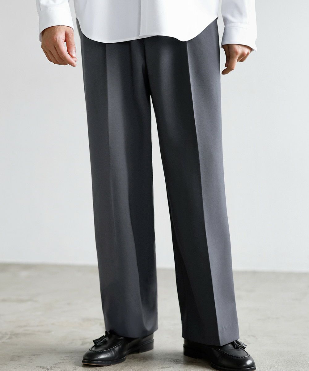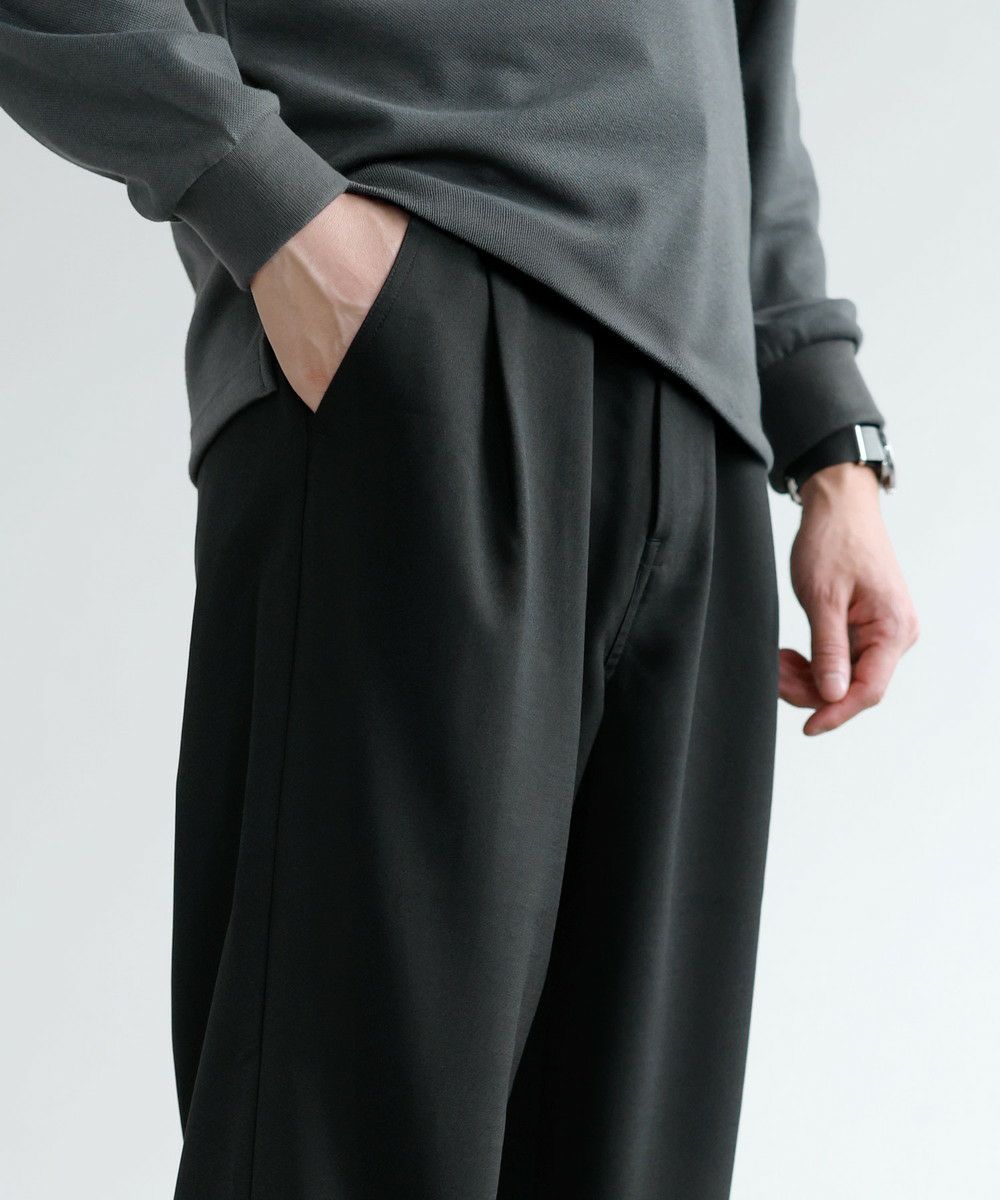 他の画像を見る Upscape Audience 日本製LANATEC(ラナテック)LEI(レイ)ポリエステル ウールライク サージ 2タックイージーワイドパンツ ¥ 12,100 税込 在庫切れ カートに入れる お気に入りに登録する