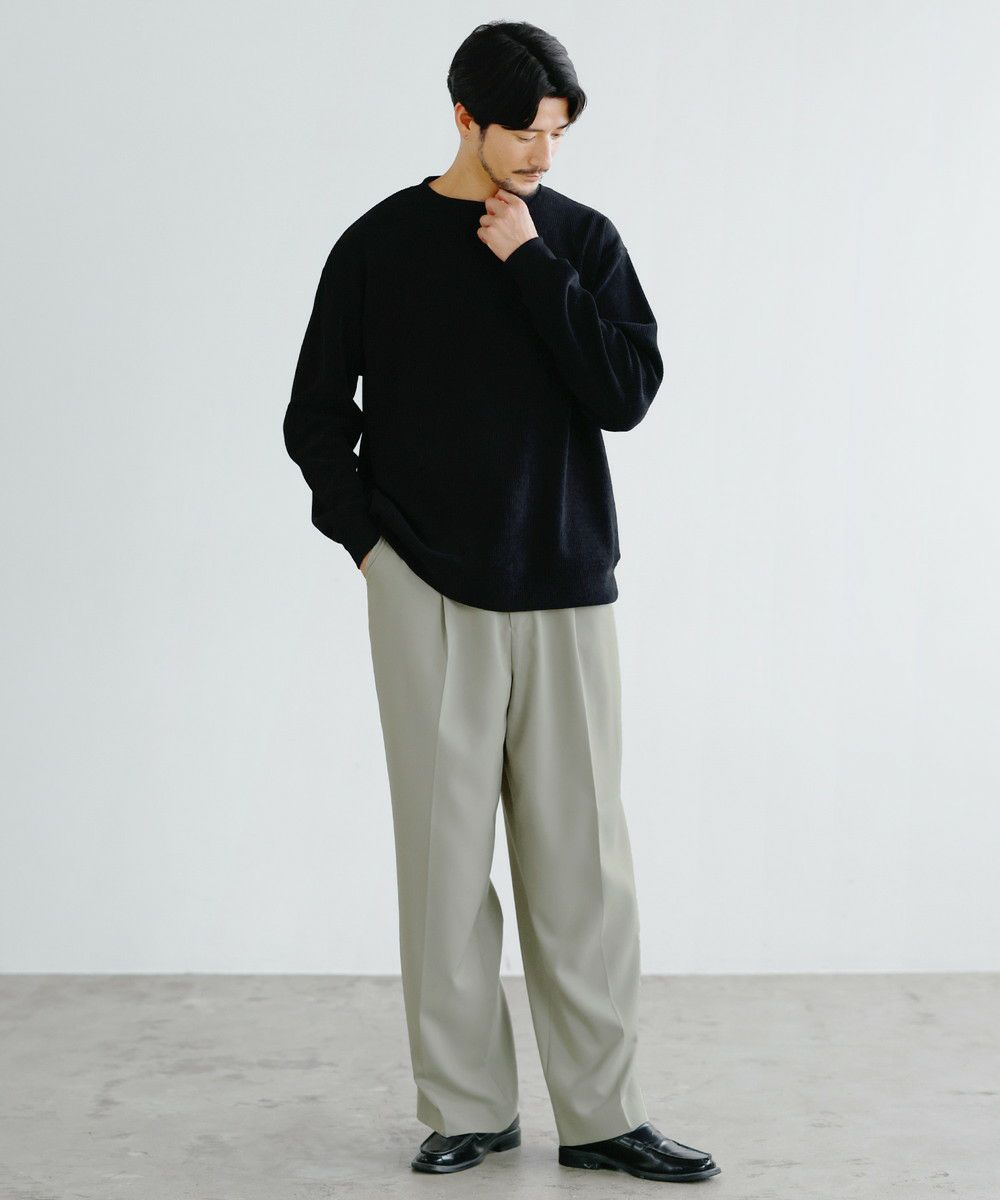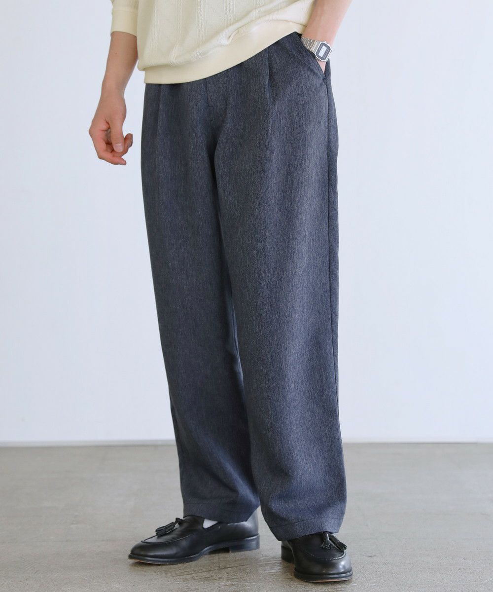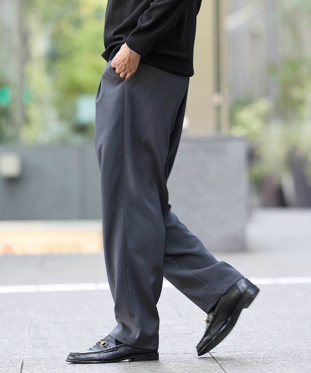 他の画像を見る Upscape Audience 日本製LANATEC(ラナテック)LEI(レイ)ポリエステル ウールライク サージ 2タックイージーワイドパンツ ¥ 12,100 税込 在庫切れ カートに入れる お気に入りに登録する