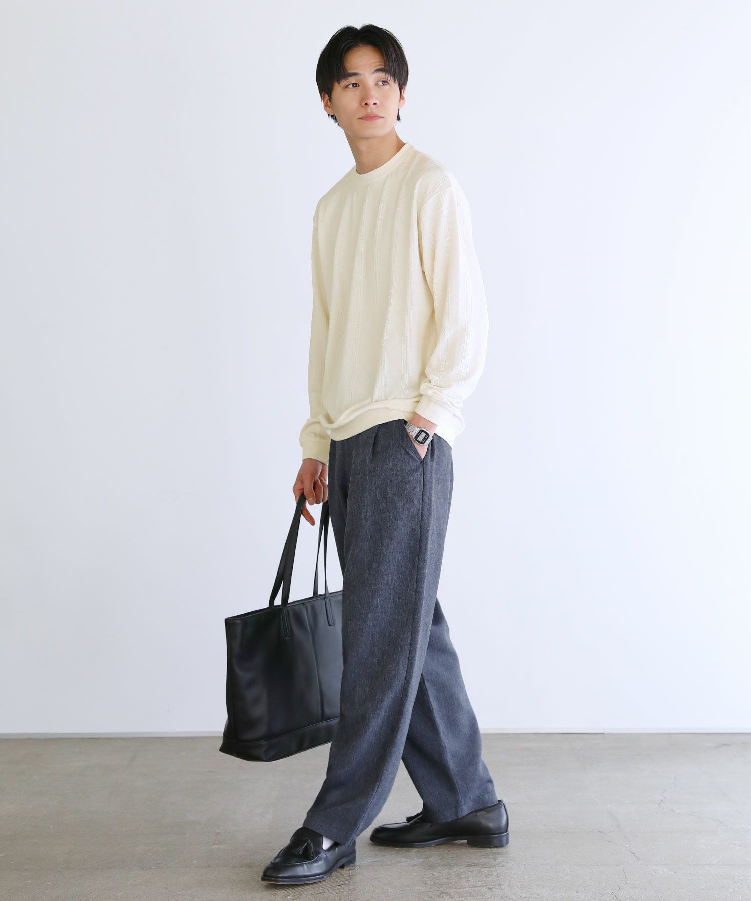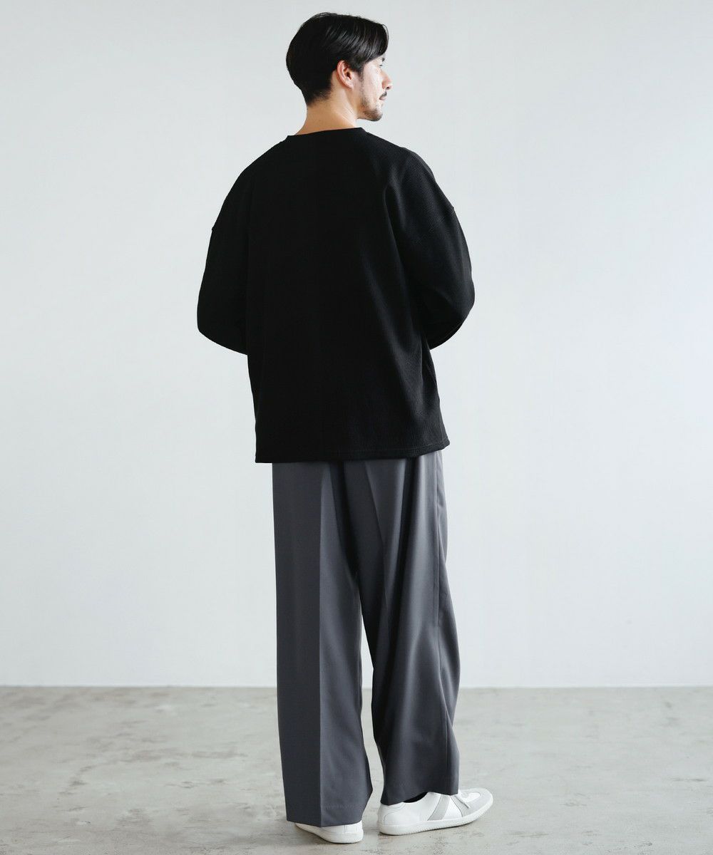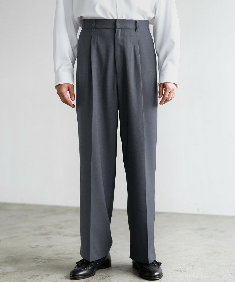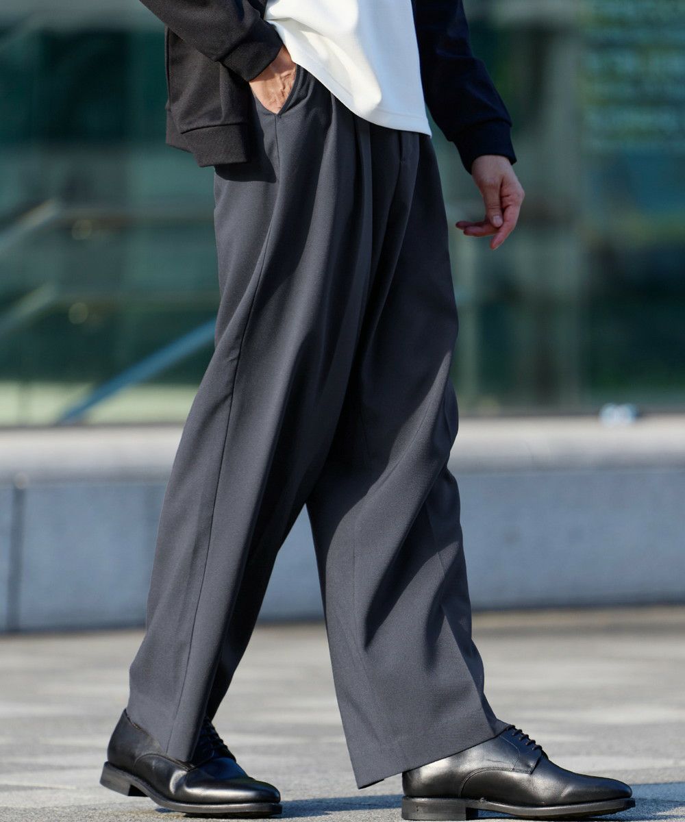 他の画像を見る Upscape Audience 日本製LANATEC(ラナテック)LEI(レイ)ポリエステル ウールライク サージ 2タックイージーワイドパンツ ¥ 12,100 税込 在庫切れ カートに入れる お気に入りに登録する