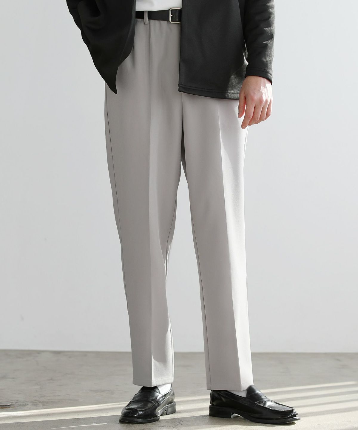 裾に向かって細くなるテーパードラインに、センタープレスを施した一本。