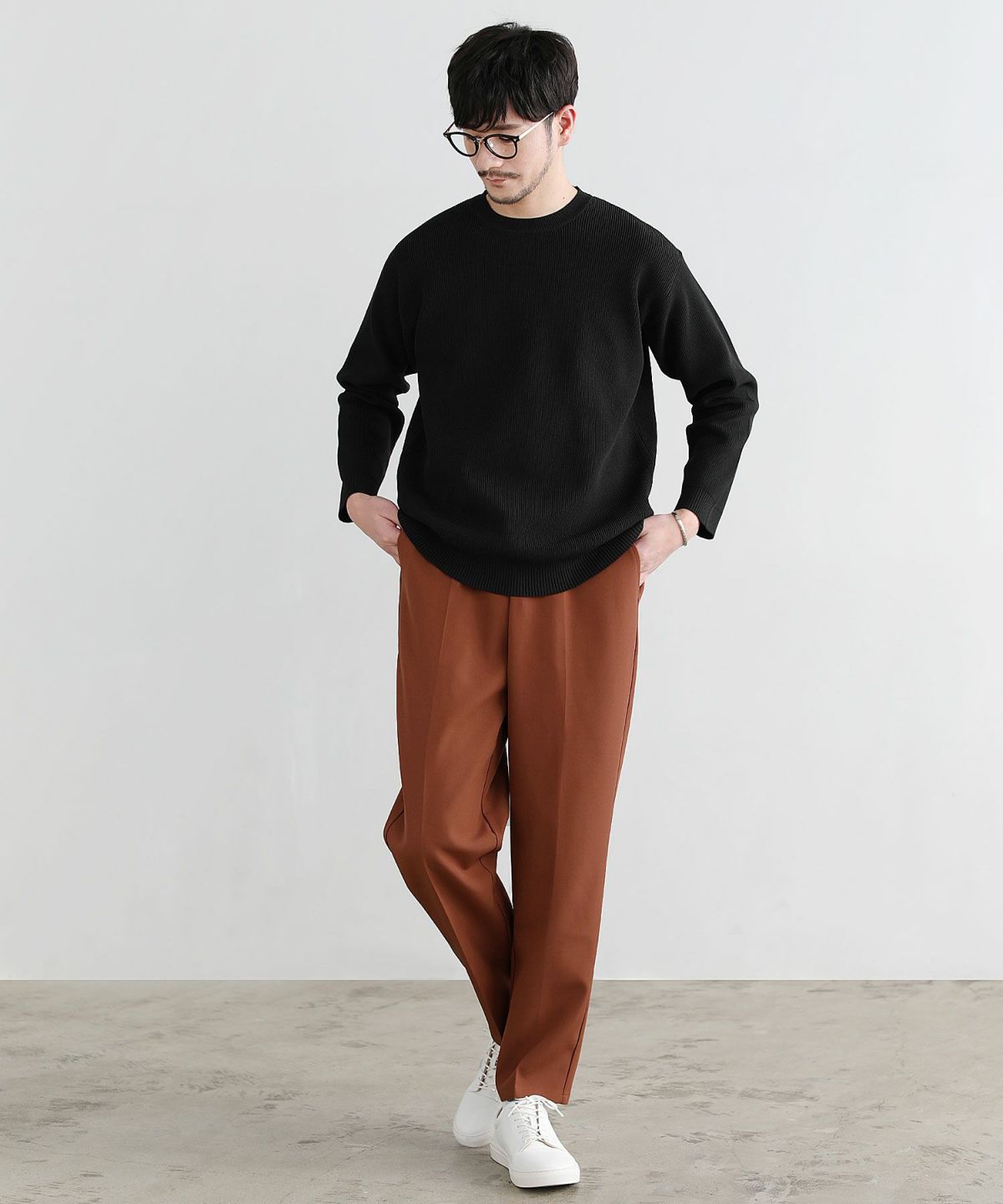 太すぎず、細すぎない絶妙なバランスで、程よい抜け感のあるコーデにまとまります。