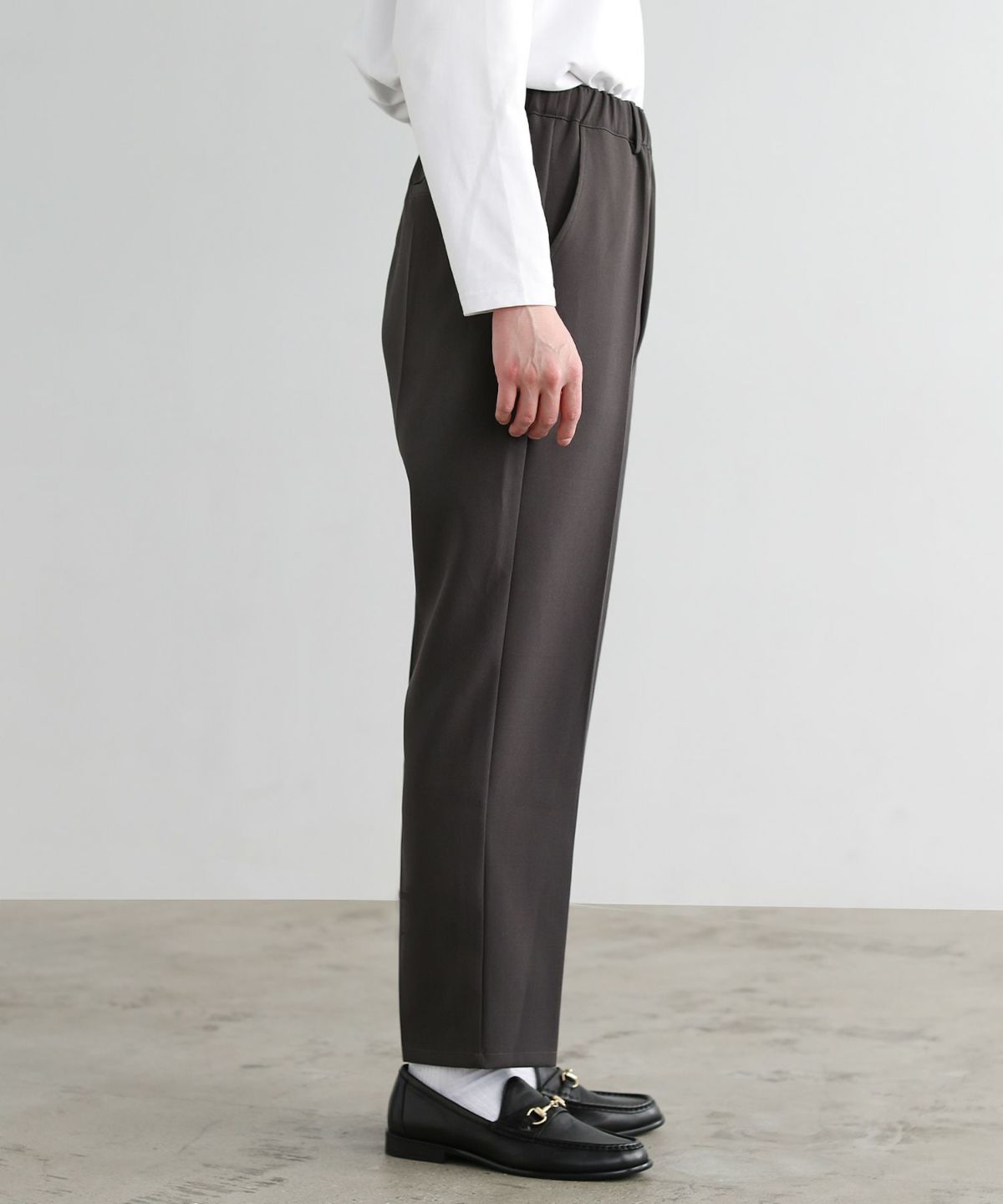 ベーシックなブラックやグレー系に、トレンドライクなカラーを加えた5色展開で、どんなアイテムにも合わせやすい万能パンツです。