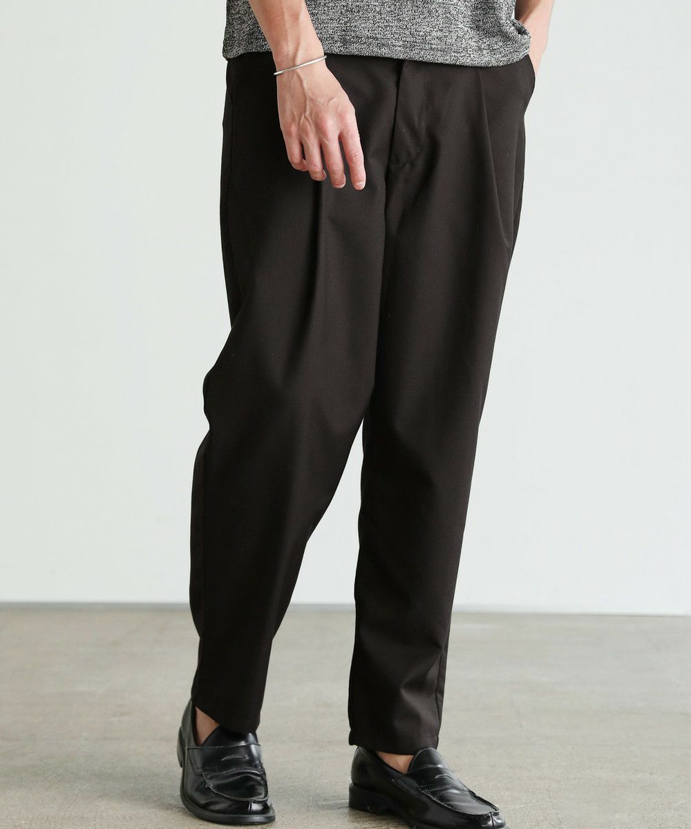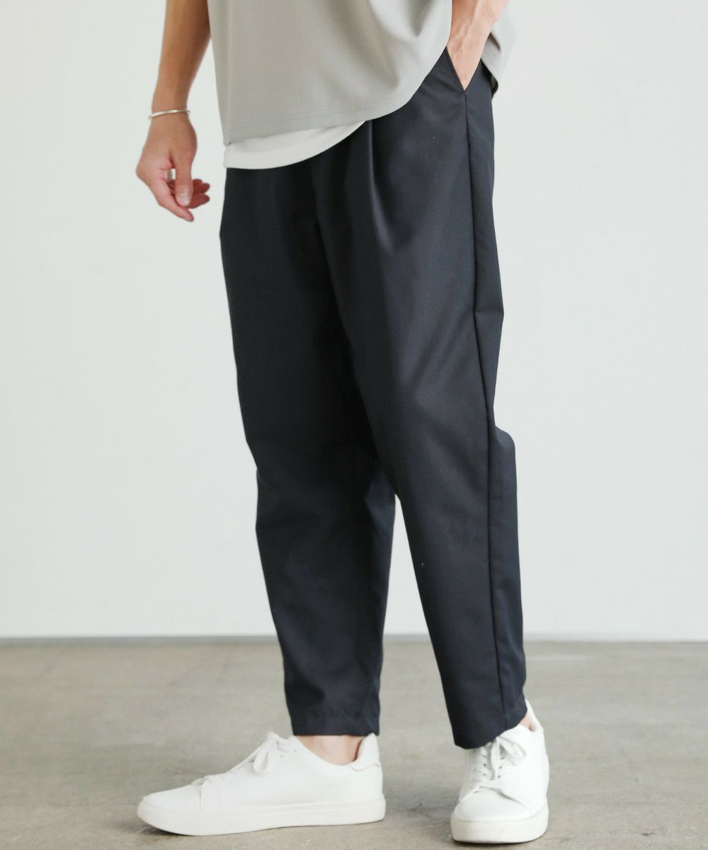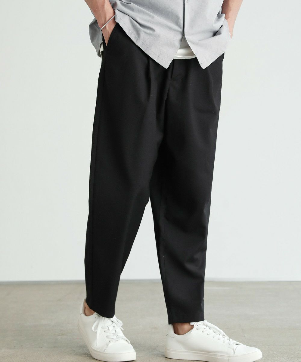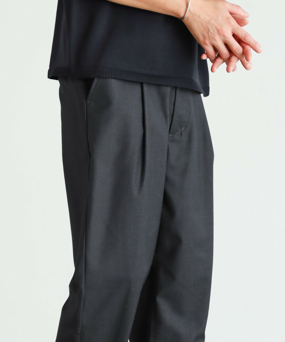 まず現代の"Standard"なパンツとはどのようなシルエットなのかというところから、このスラックスの製作は始まりました。 これまでSPUが"Standard"と定義していたのは、スキニーなどの細めなシルエットなパンツです。もちろん細めのパンツも美脚ラインであったり、清潔感のあるコーデに仕上がるなどのメリットは充分ありますが、現代のトレンド第一線からは退き気味で、穿く人も減ってきています。 そこで私たちが"Standard"として新しく定義したのは、「ワイドテーパード」の「スラックス」です。 画像を見ていただくと分かる通り、足のラインは拾わないゆったり感。しかし太過ぎず、きちんと感も残した上品な印象です。