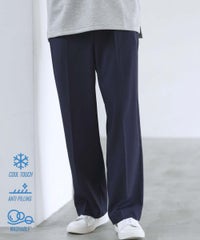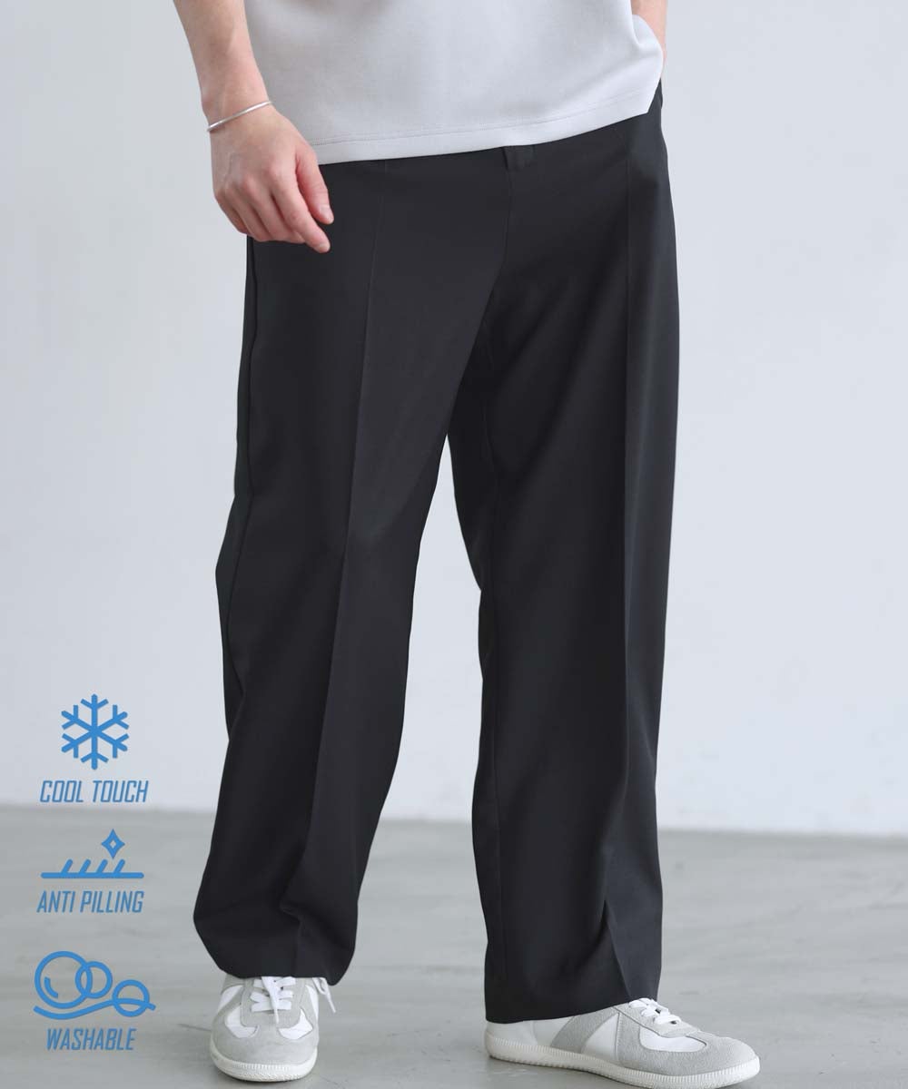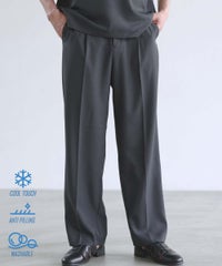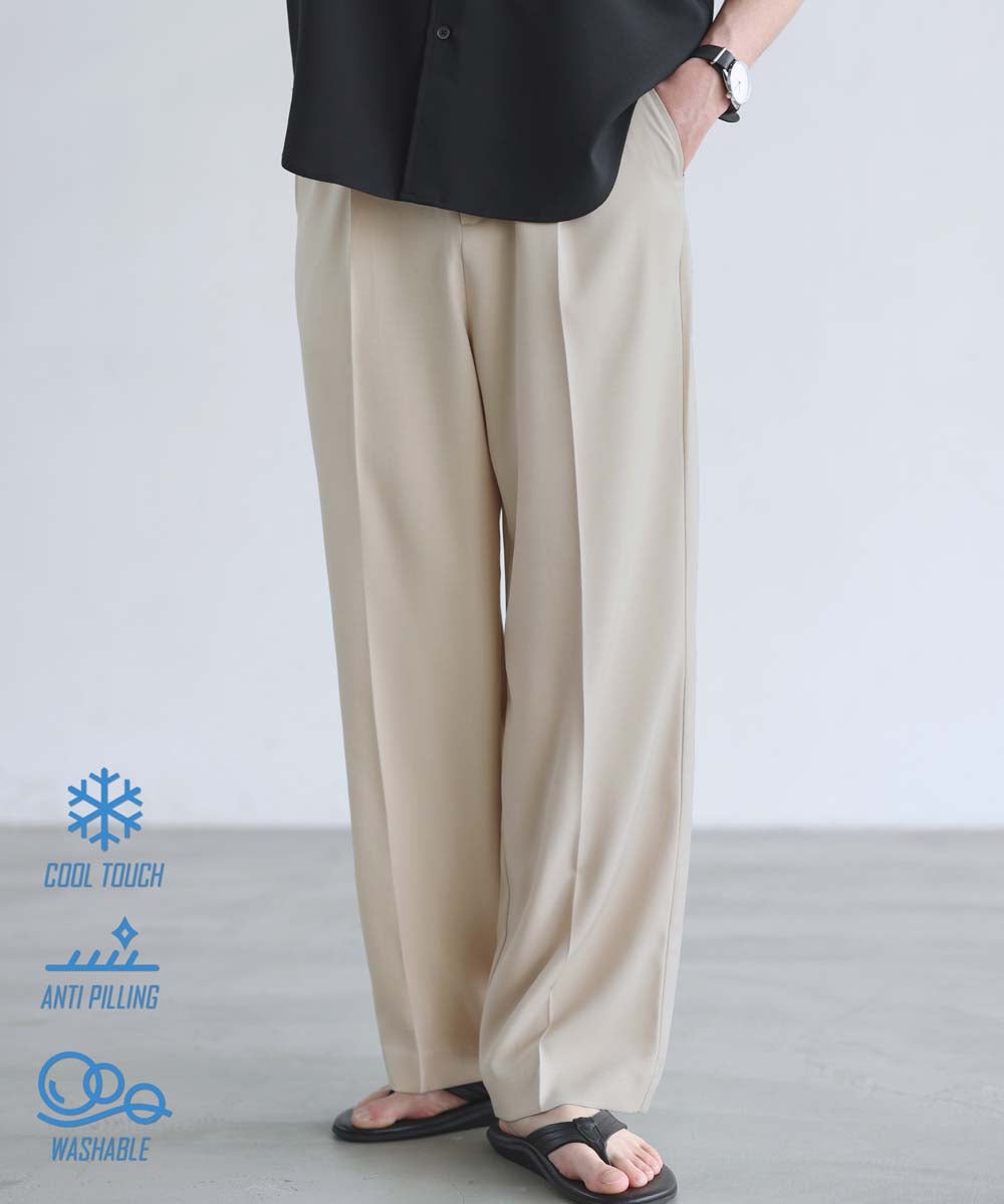 TR/【防シワ、防ピリング、接触冷感】機能性テックリネン リラクシングタックワイドスラックスパンツ