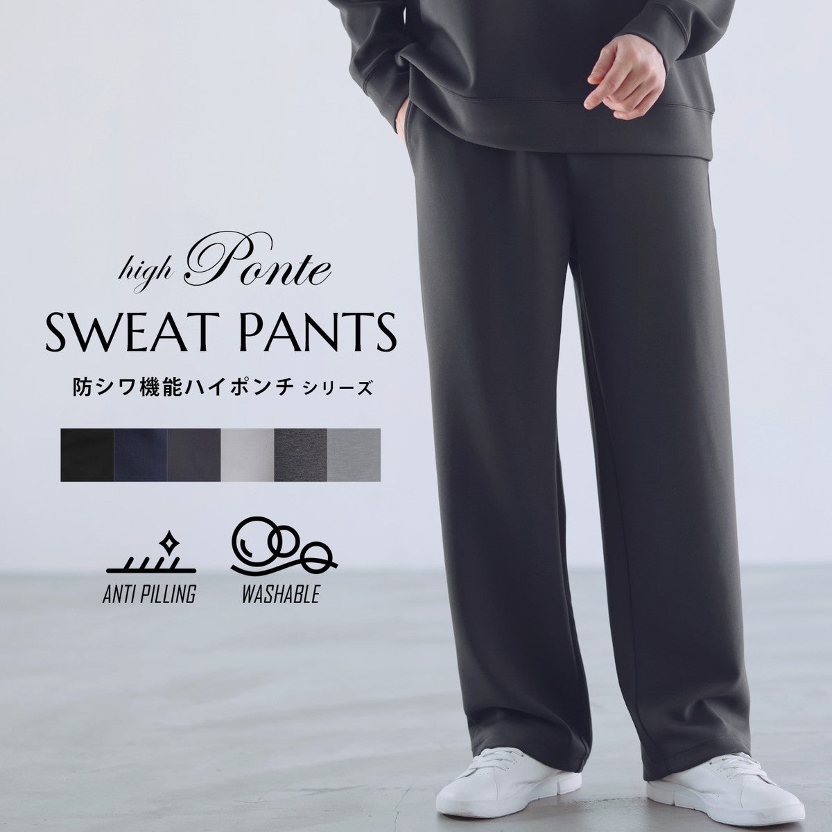 〓予約販売・3月上旬頃発送予定〓 【セットアップ対応】防シワ・抗ピリング・ウォッシャブル ハイポンチスウェットパンツ