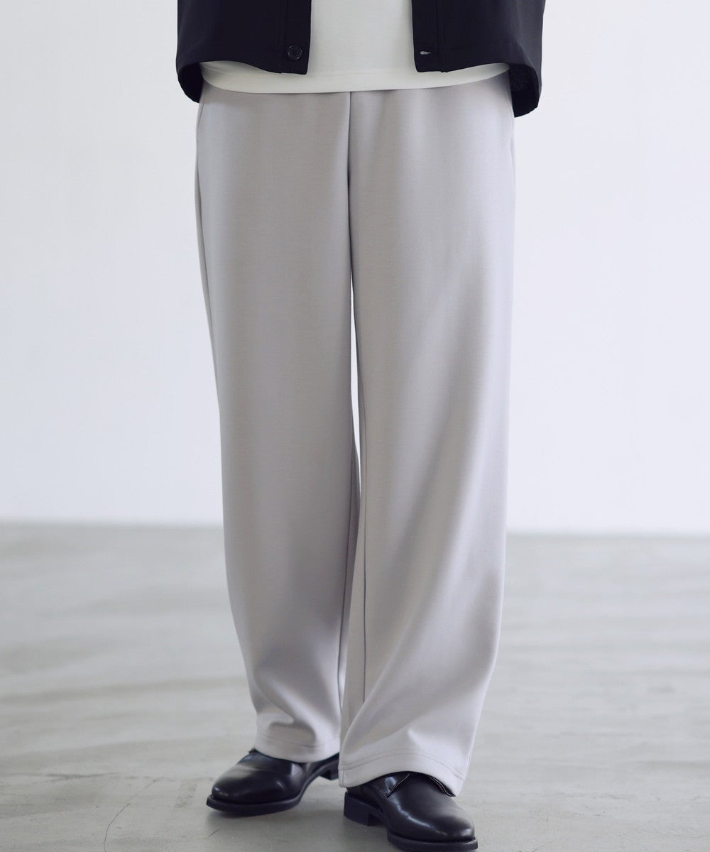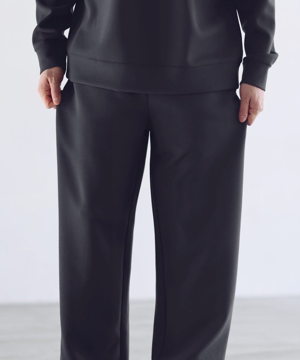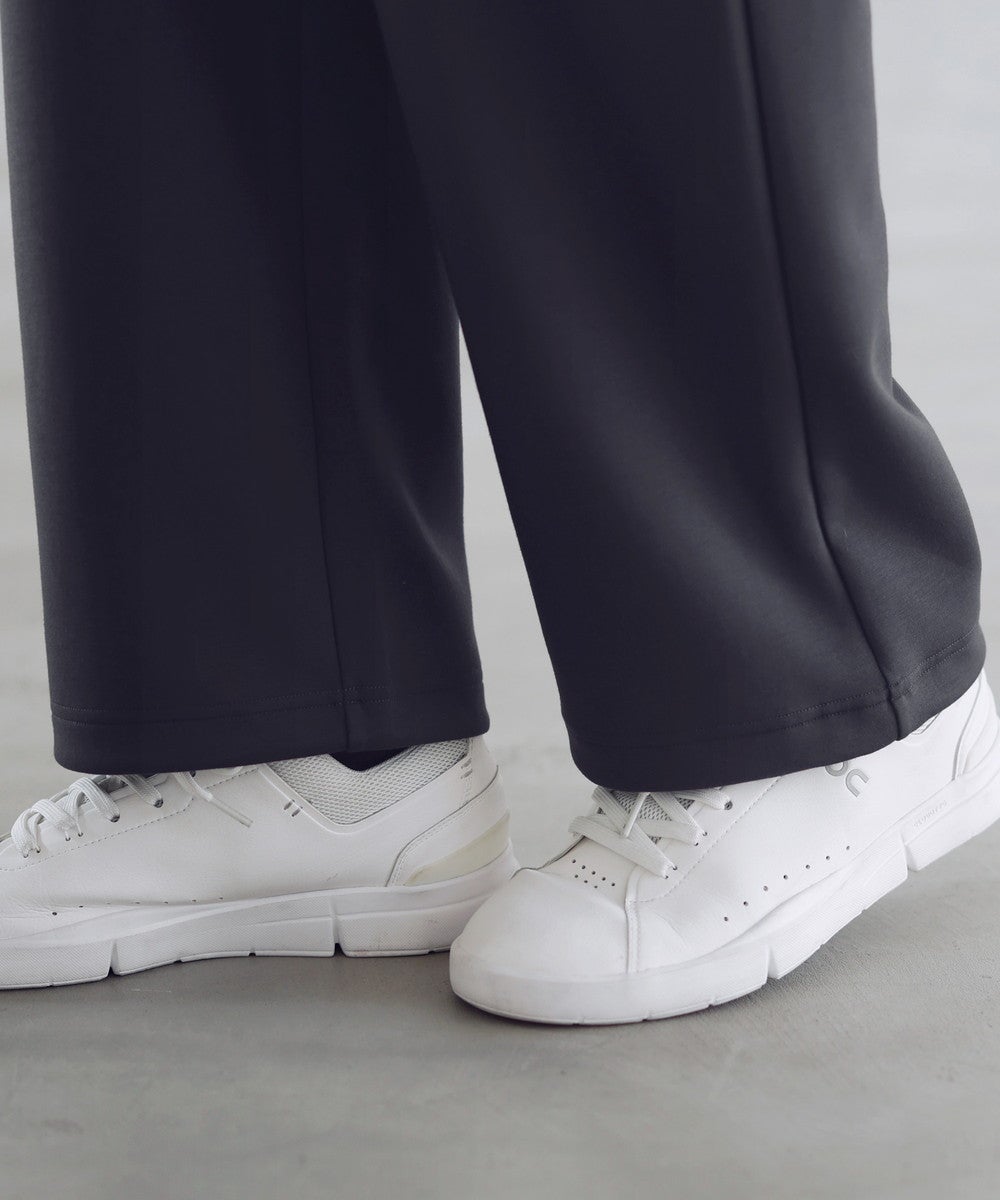 脚のラインを拾わないセミワイドストレートシルエットを採用。ルーズになりすぎてしまわないように計算し、スタイルアップ効果を発揮する絶妙なワイド感に仕上げております。ワイドでありながらも美脚見えが叶うシルエットです。ウエストは全周ゴムを通したイージー仕様に。窮屈感なく、脱ぎ穿き楽々なデザインに設計しました。部屋着感覚の穿き心地なのにちゃんとお洒落にコーデできる、見た目以上に頼れる一本です。
