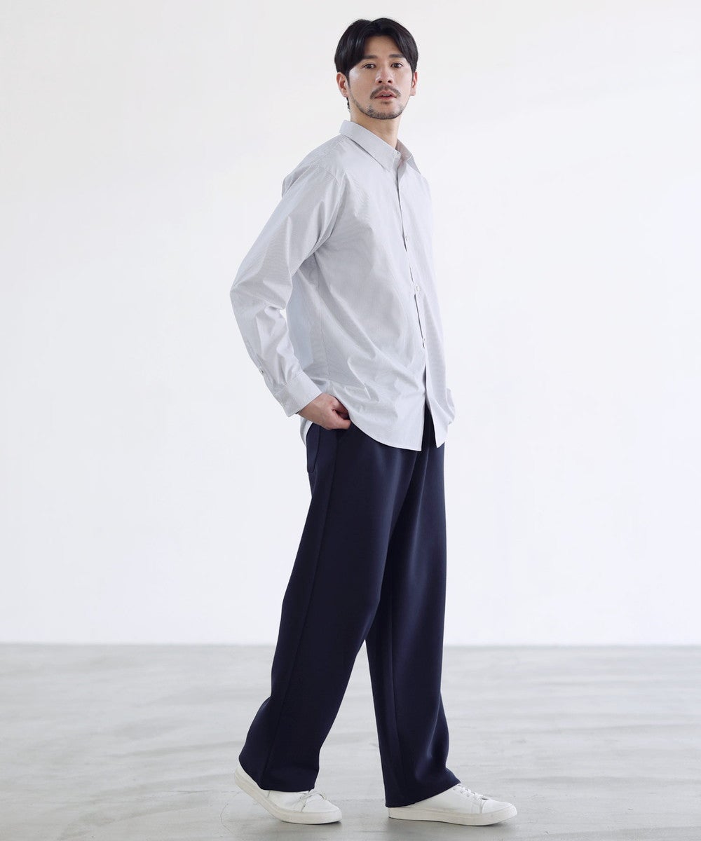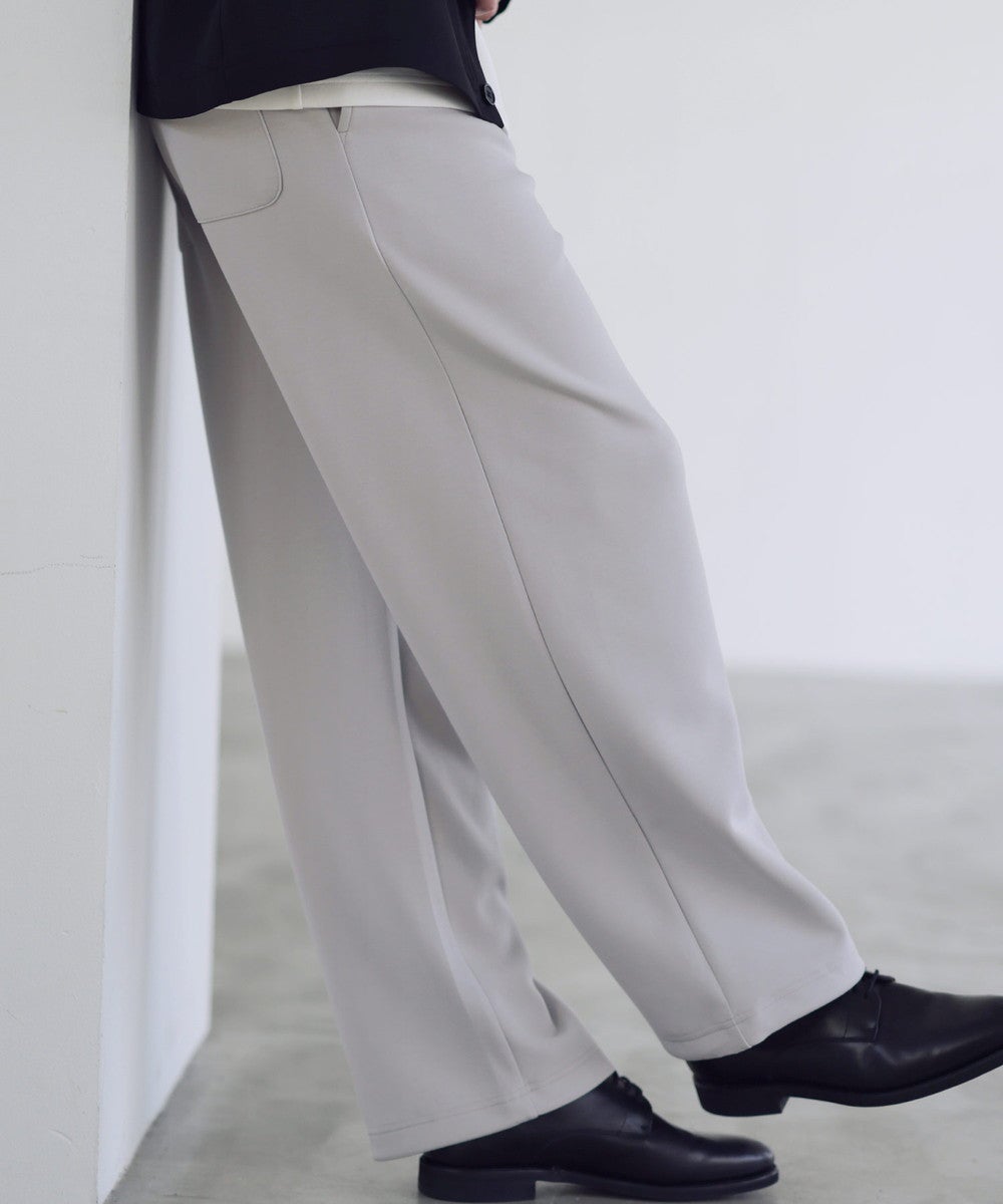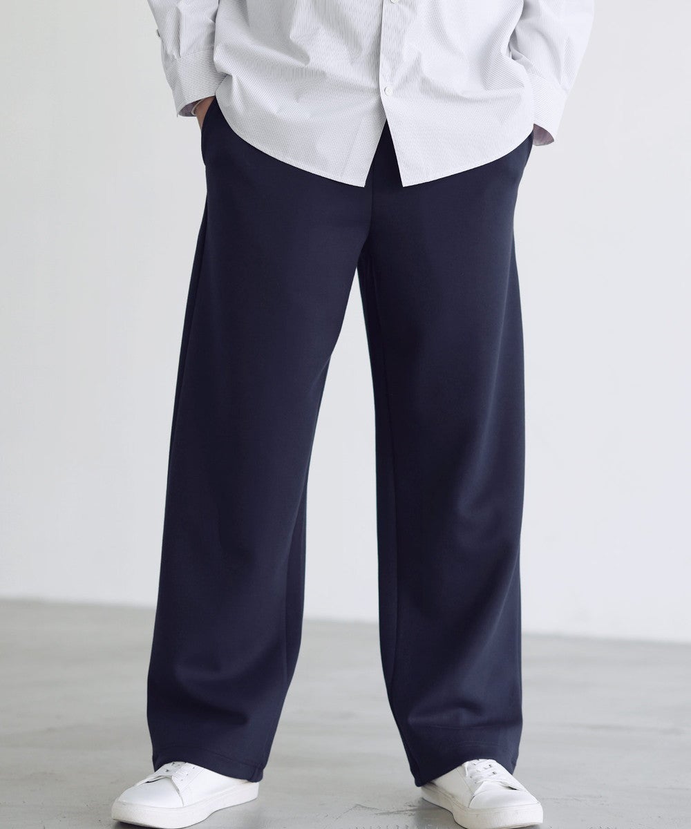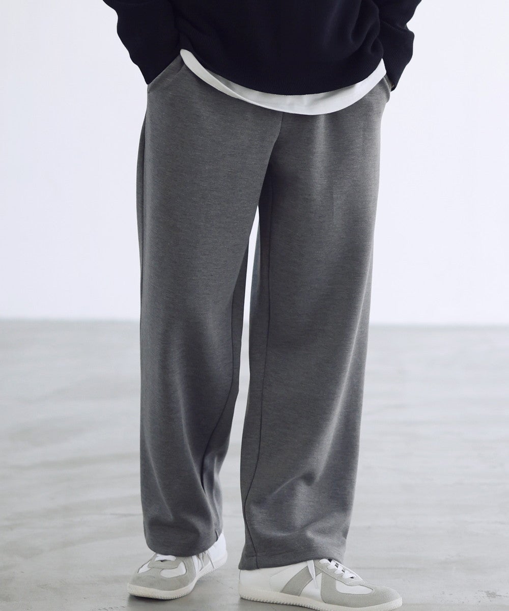 脚のラインを拾わないセミワイドストレートシルエットを採用。ルーズになりすぎてしまわないように計算し、スタイルアップ効果を発揮する絶妙なワイド感に仕上げております。ワイドでありながらも美脚見えが叶うシルエットです。ウエストは全周ゴムを通したイージー仕様に。窮屈感なく、脱ぎ穿き楽々なデザインに設計しました。部屋着感覚の穿き心地なのにちゃんとお洒落にコーデできる、見た目以上に頼れる一本です。